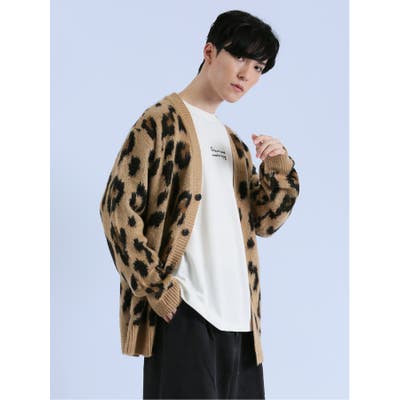 モヘアタッチ レオパード Vネック ニットカーディガン