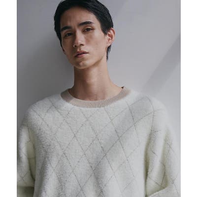 表情のあるシャギー素材とさりげないダイヤ柄を編み込んだ配色デザインの組み合わせで、シンプルながらも存在感のあるニットです。