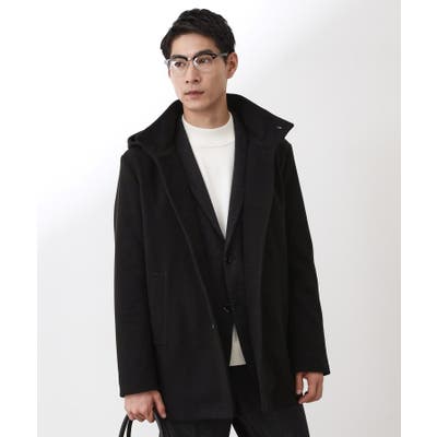 洗えるメルトン素材を使用した、オンオフ兼用のスタンドカラーフードジャケット。