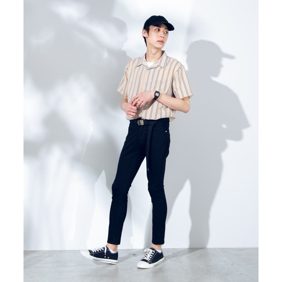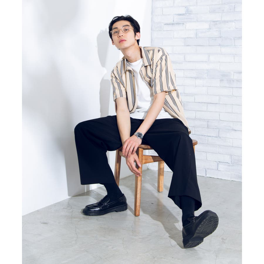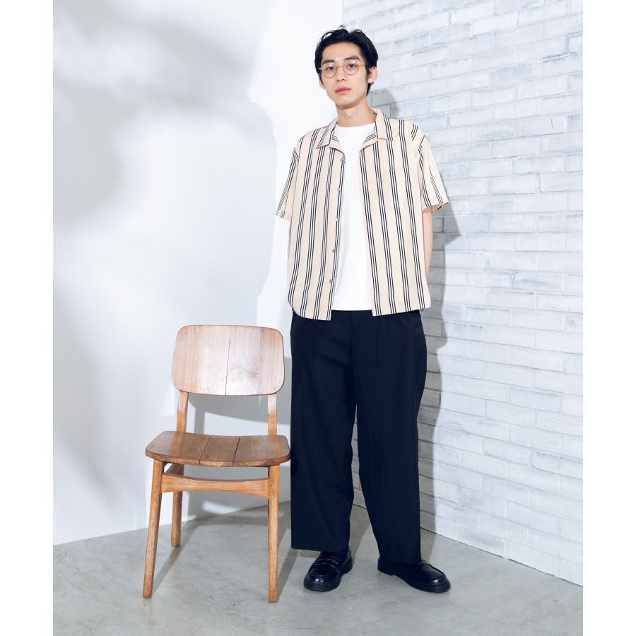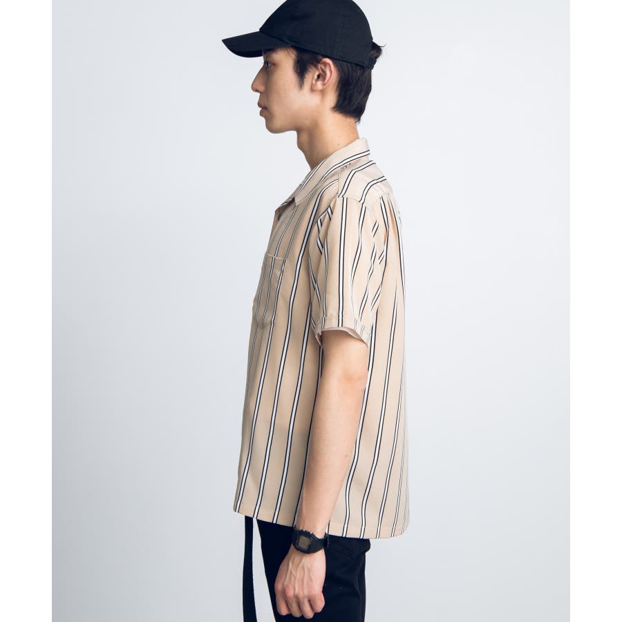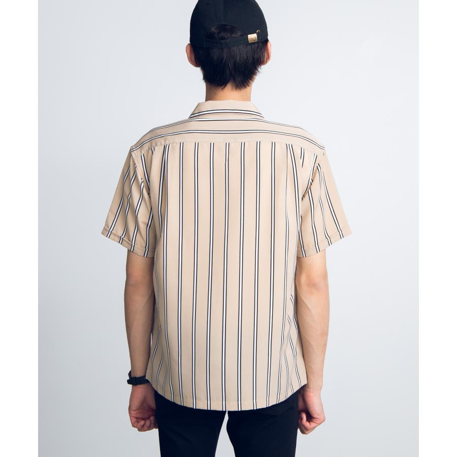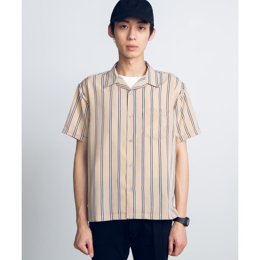 ベージュストライプ半袖開襟シャツ BR19SM04-M033