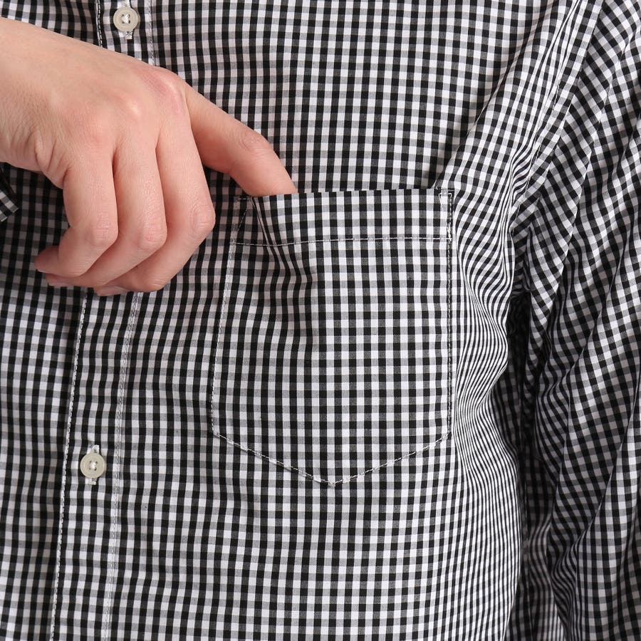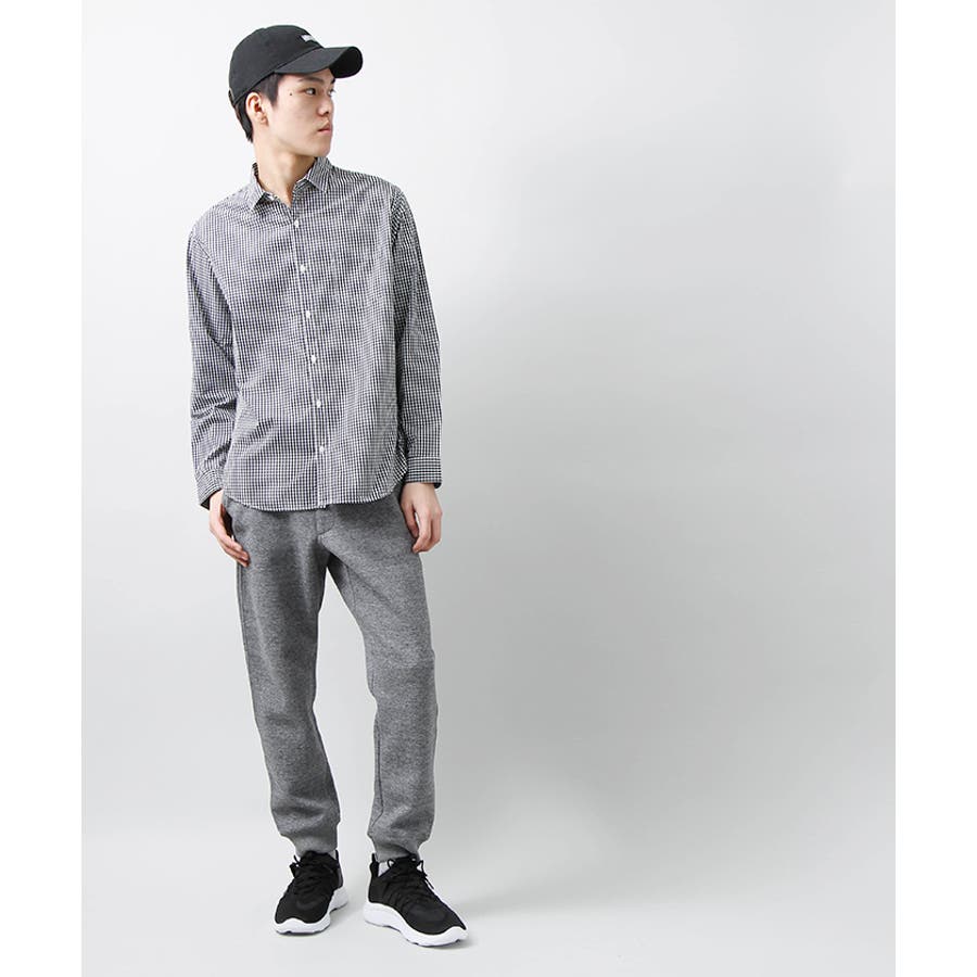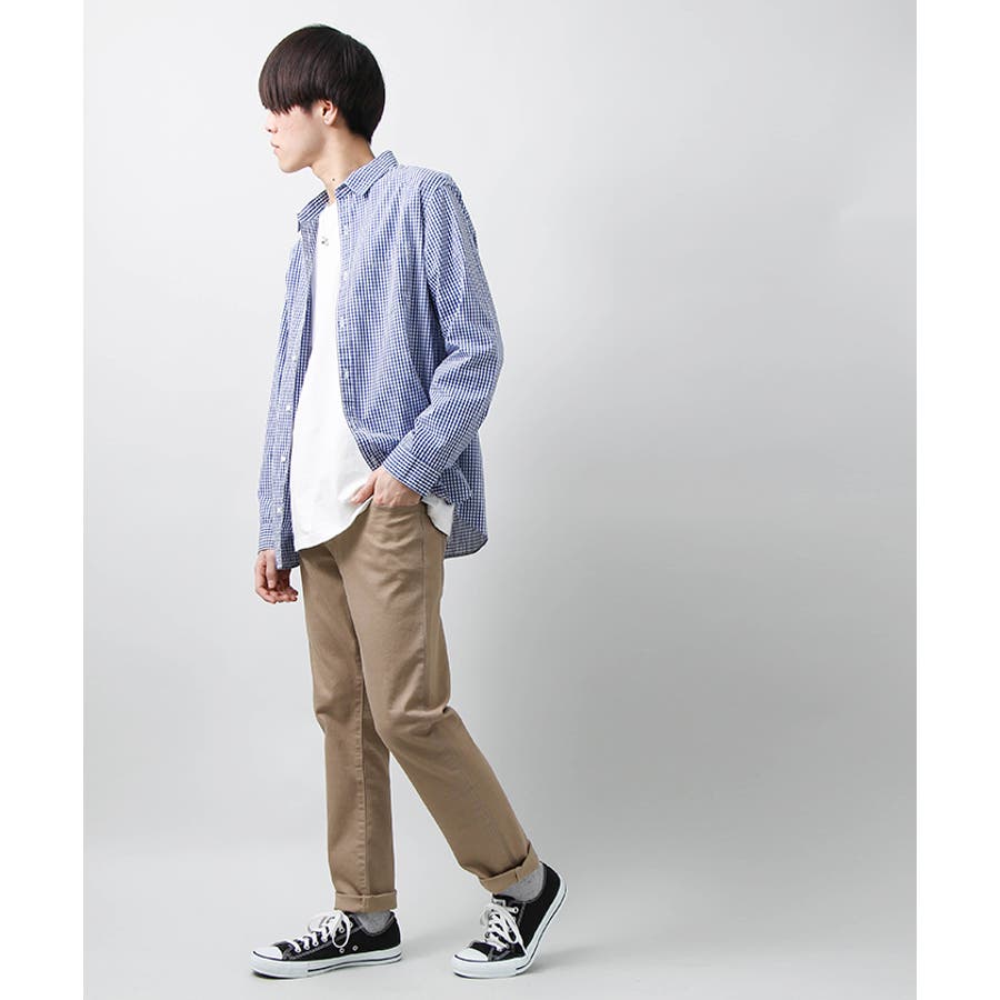 柔らかで優しい生地感がこなれた雰囲気を演出。また、イージーケア加工をほどこす事により、シワが付きにくくお手入れも簡単。