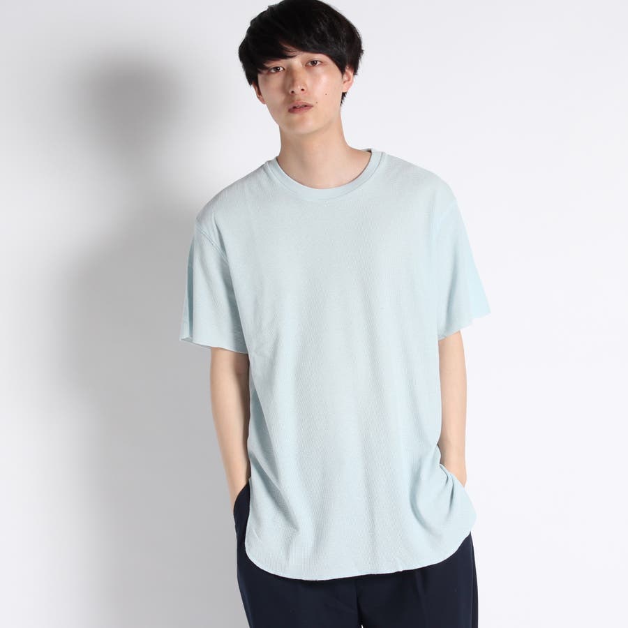 ワッフル素材で仕上げたカットソー。裾がラウンドしているデザインをすることで、レイヤードにも活躍してくれる。
