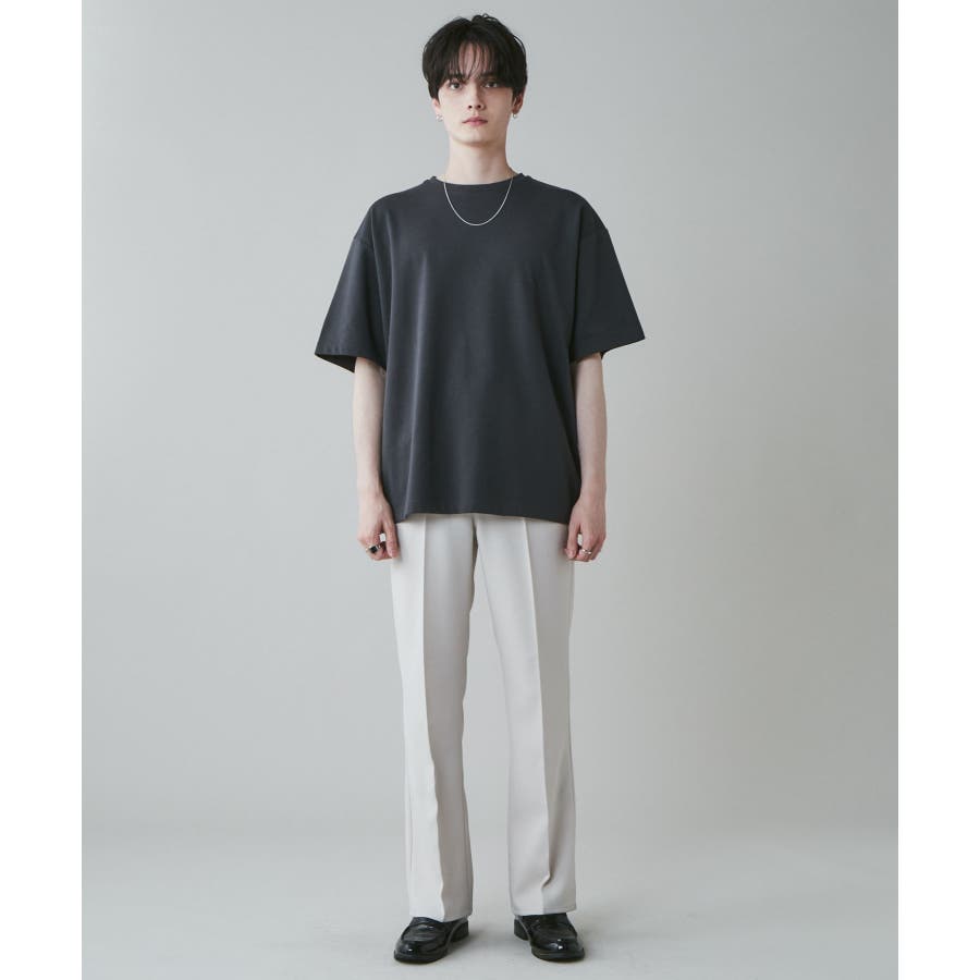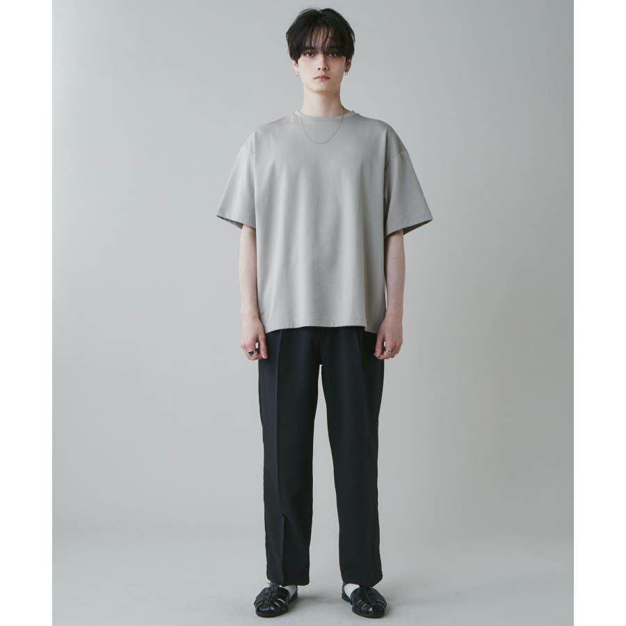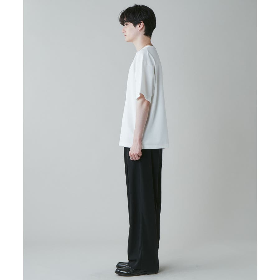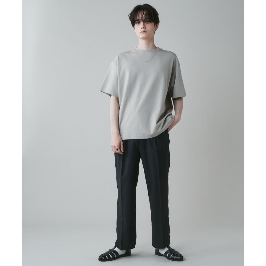 スラックスやワイドパンツと合わせたリラックス感のスタイルも相性◎