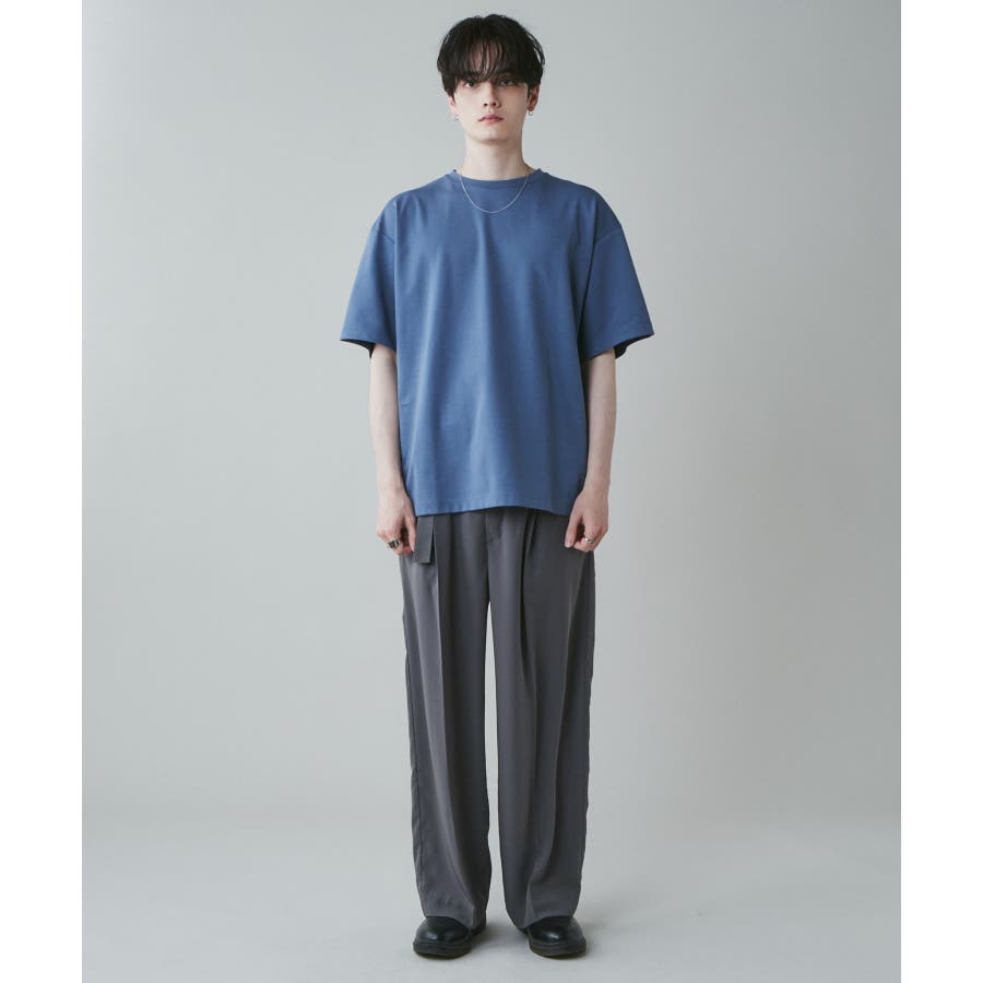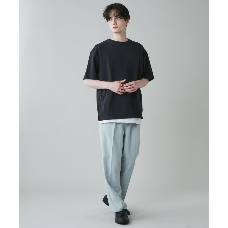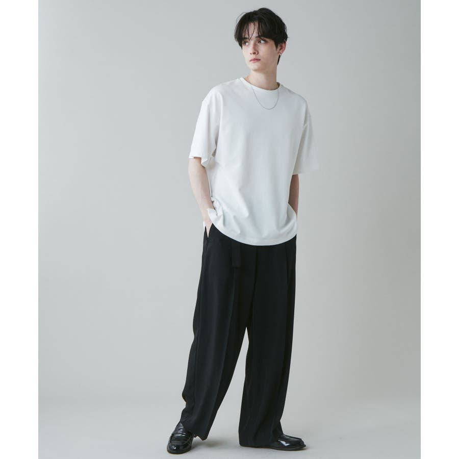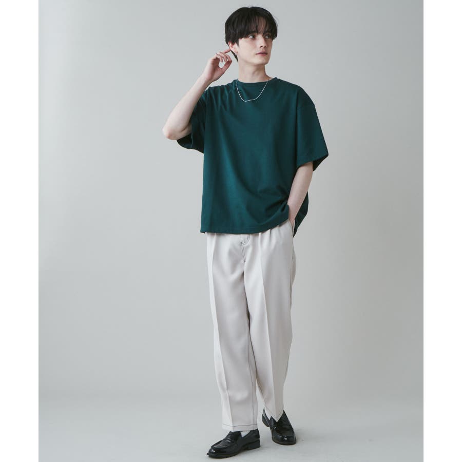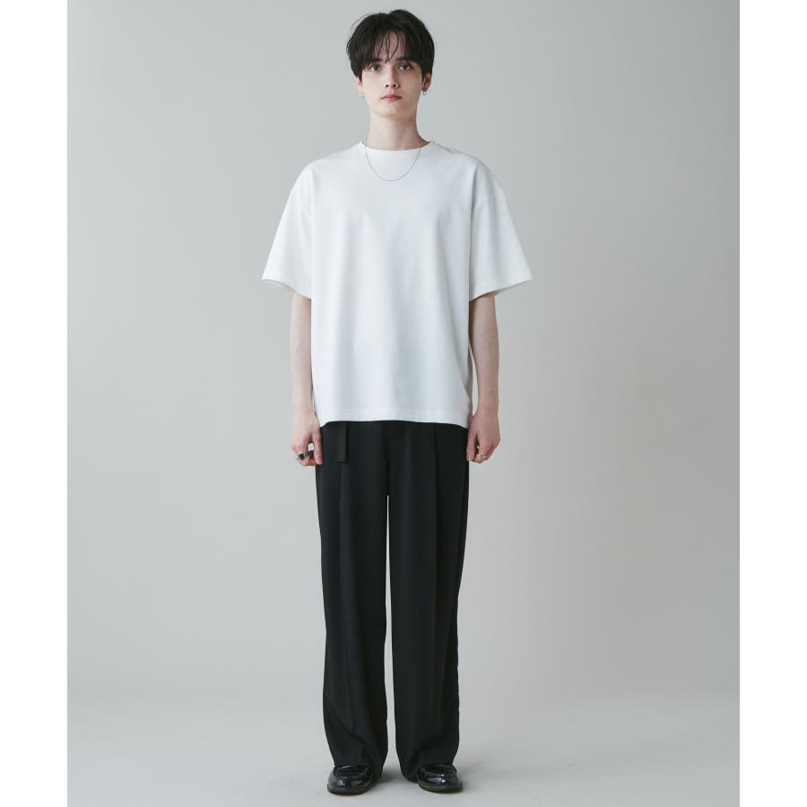 スラックスやワイドパンツと合わせたリラックス感のスタイルも相性◎