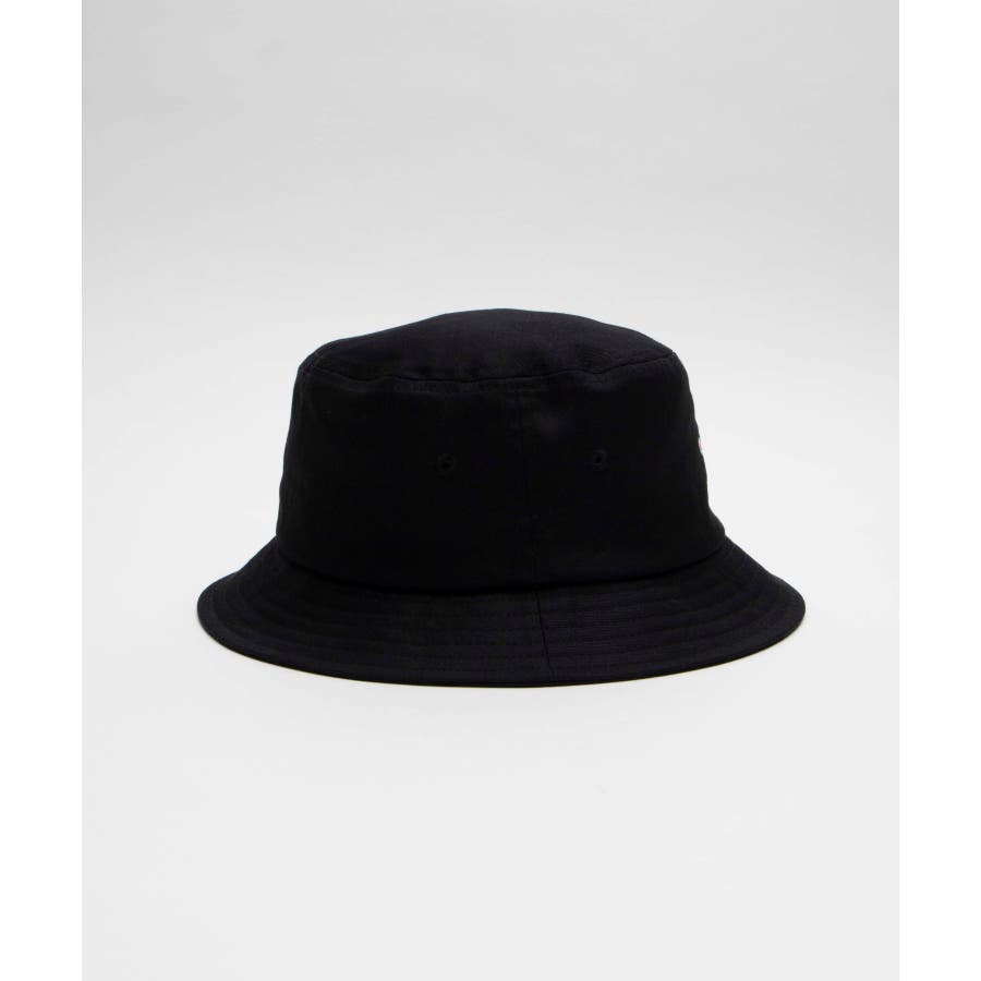 フロントにあしらったブランドロゴ刺繍、左サイドのワンポイントワッペンがアクセントのバケットハット。