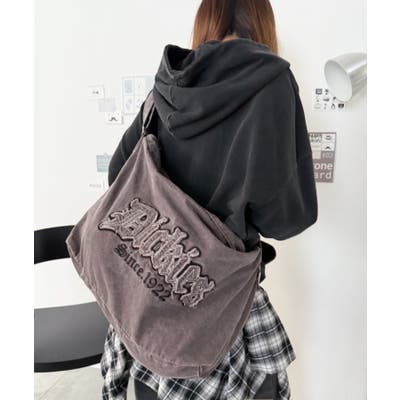 しっかりとしたコットン素材と、存在感のあるワッペンロゴが魅力の BIGショルダーバッグ。