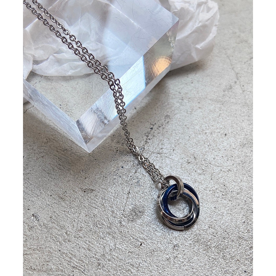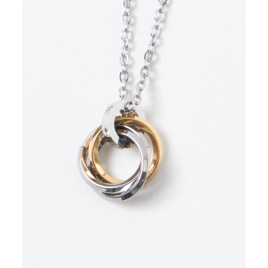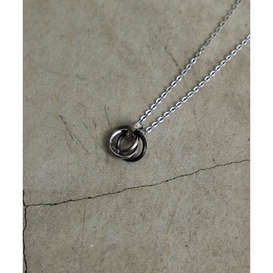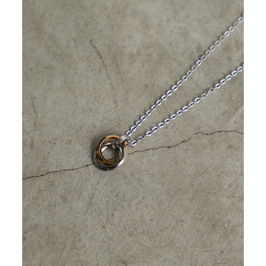 3種類のリングモチーフを組み合わせたチェーンネックレス。