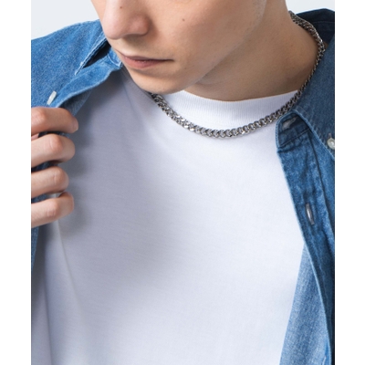 シンプルに仕上げたチェーンネックレス。