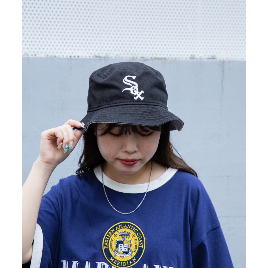 フロントにニューヨーク・ヤンキースの球団ロゴをレイアウトしたバケットハット。