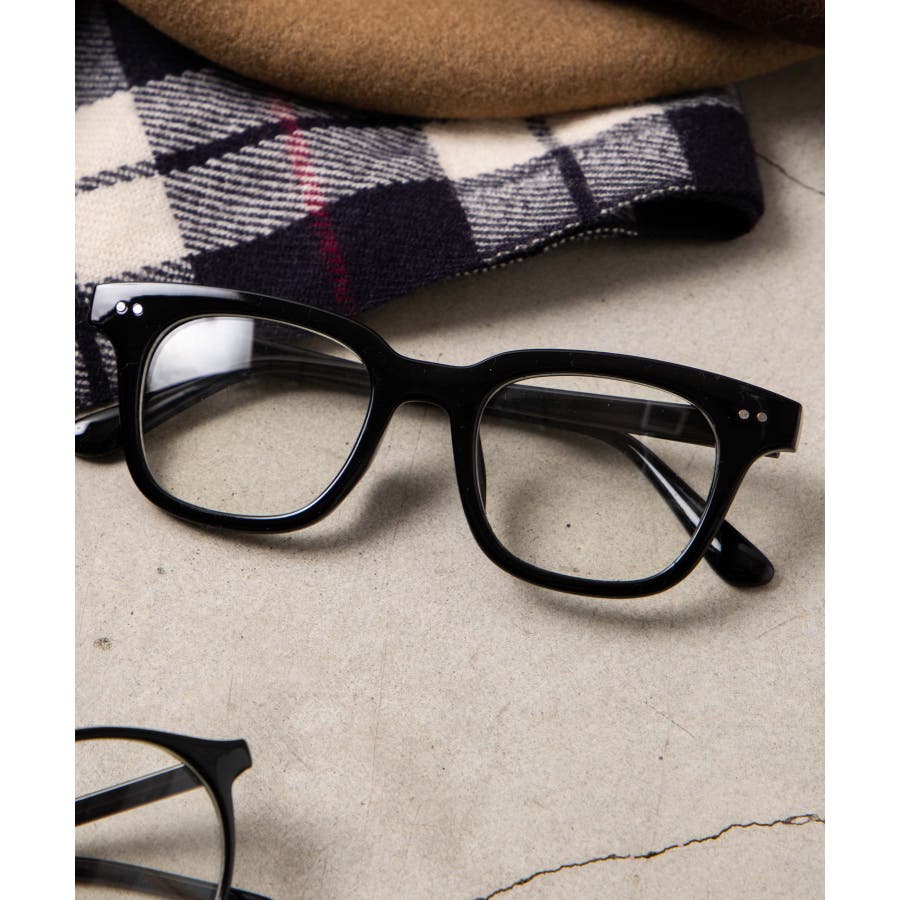 黒ブチはコーディネートのアクセントになりやすく小顔効果も。