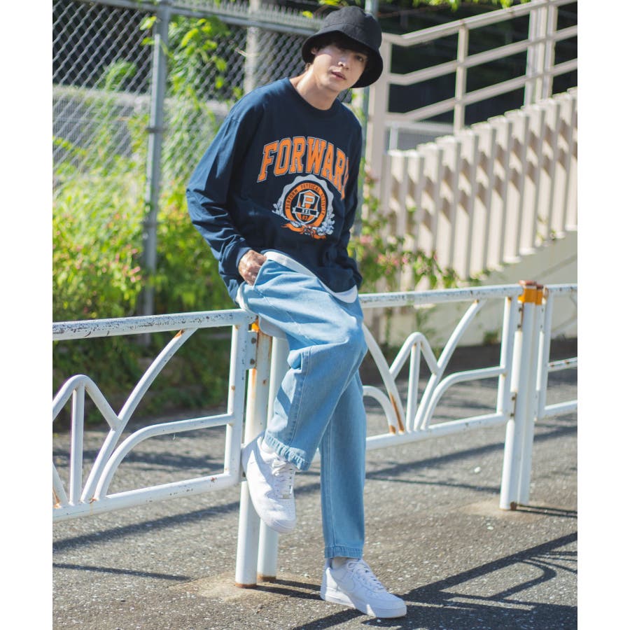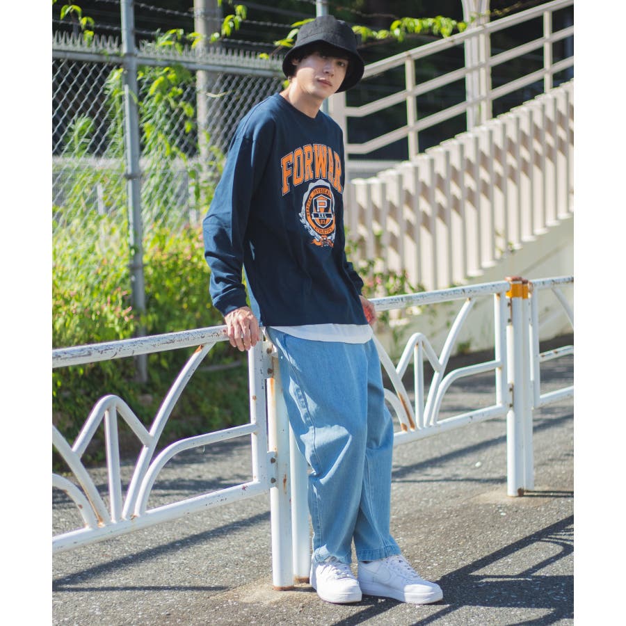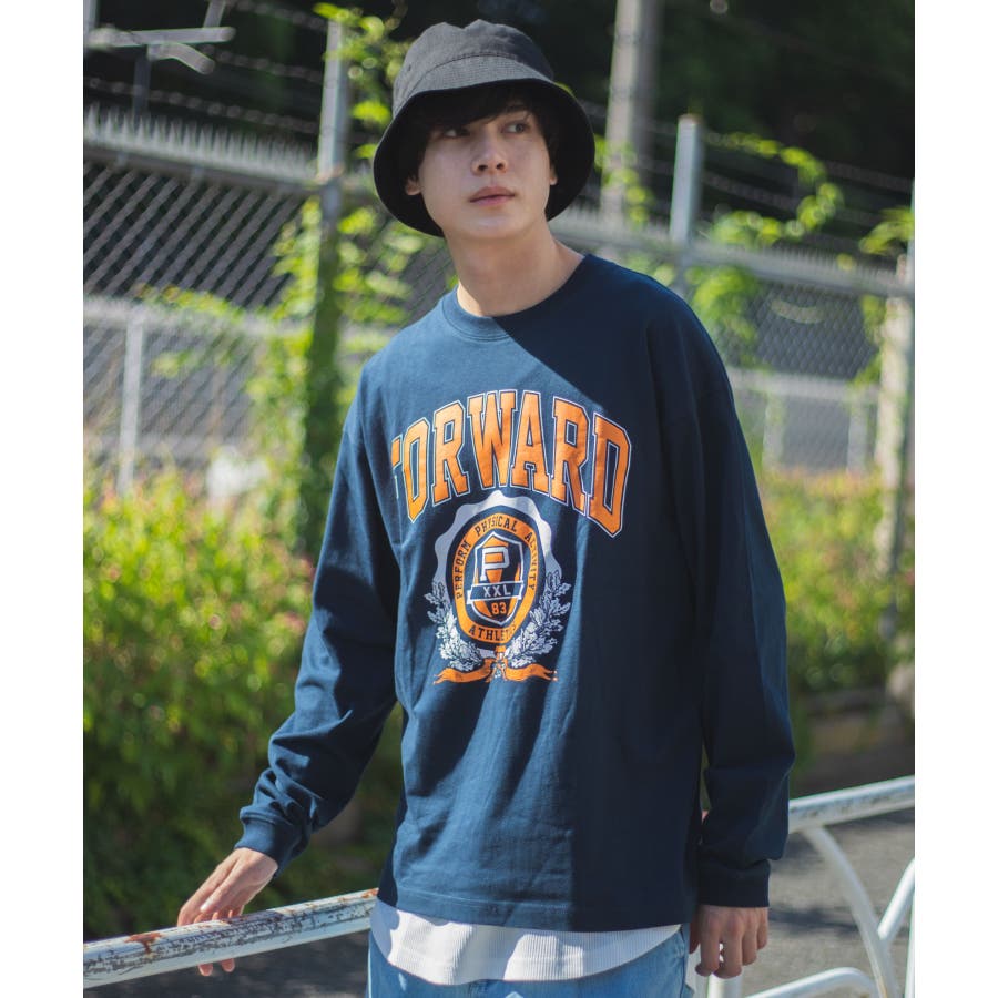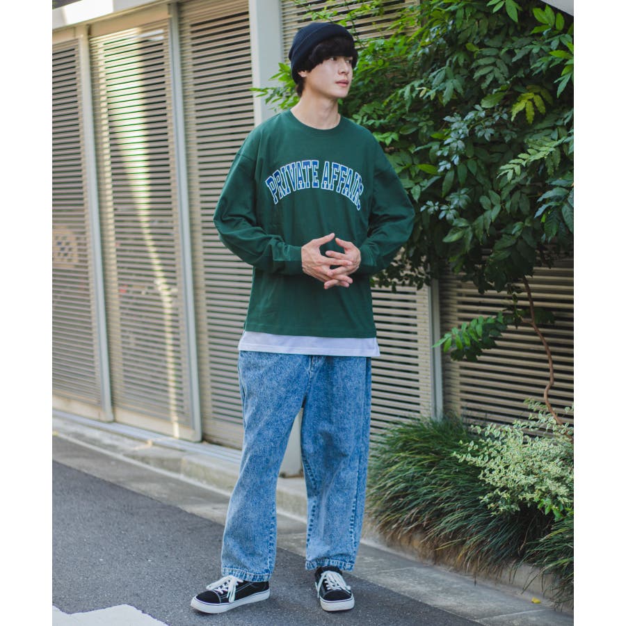古着っぽいカラーリングと大き目のカレッジロゴは今季のトレンドらしいアイテム。