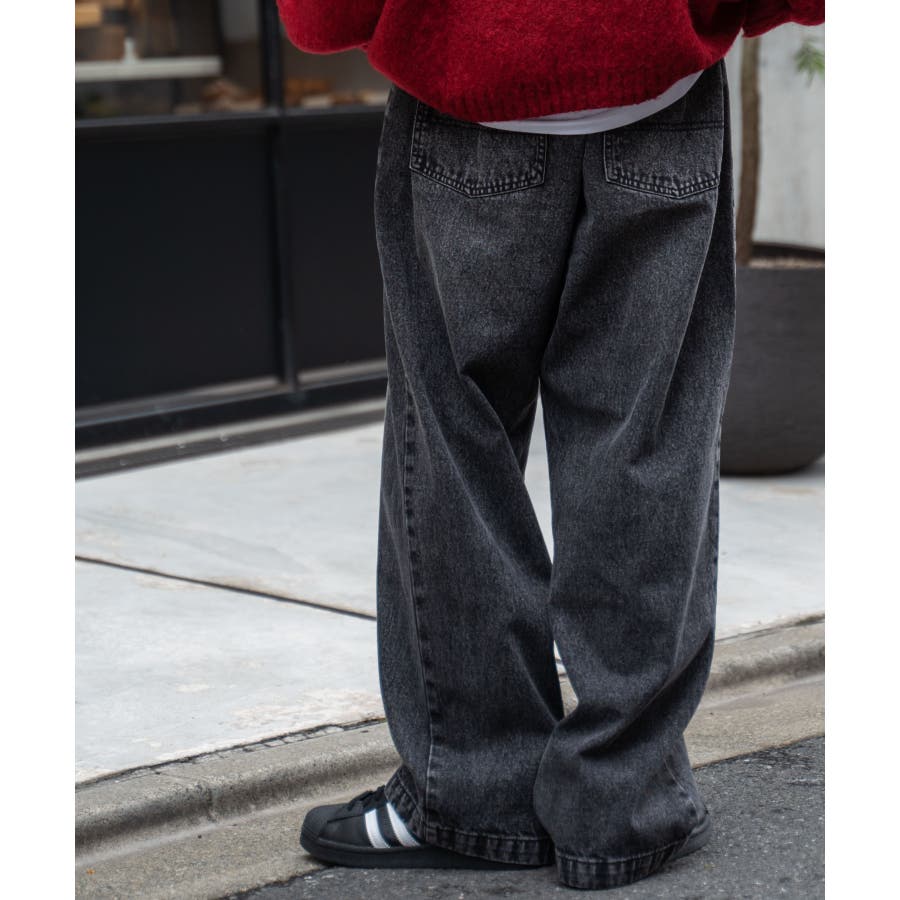 スケーターズ タックワイドデニムパンツ メンズ レディース 春 夏 韓国 韓国ファッション ユニセックス ストリート きれいめ デニム ワイドパンツ