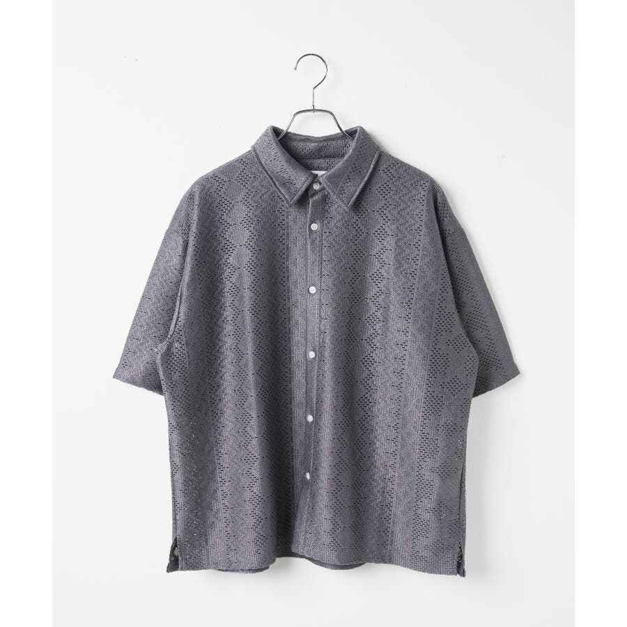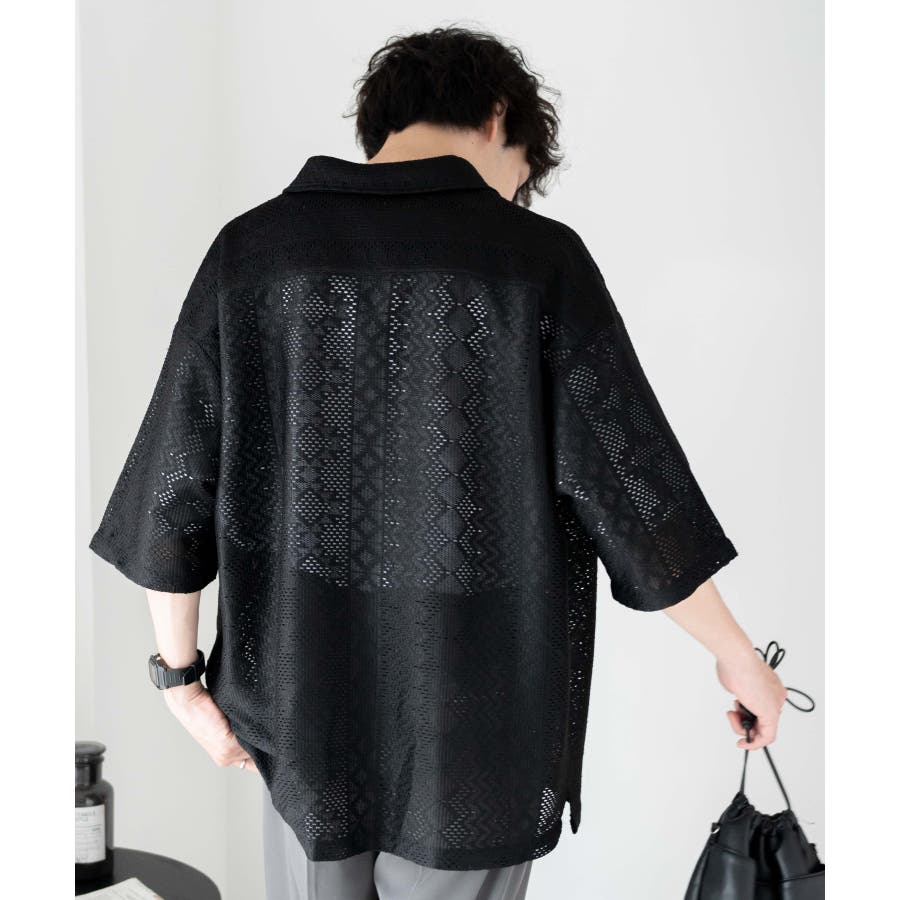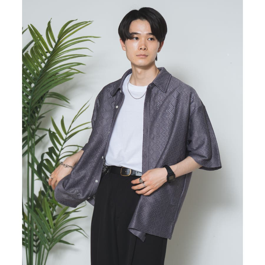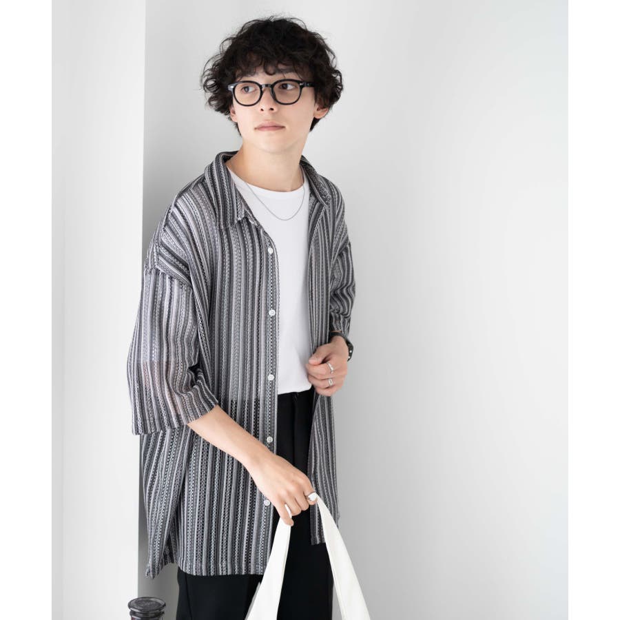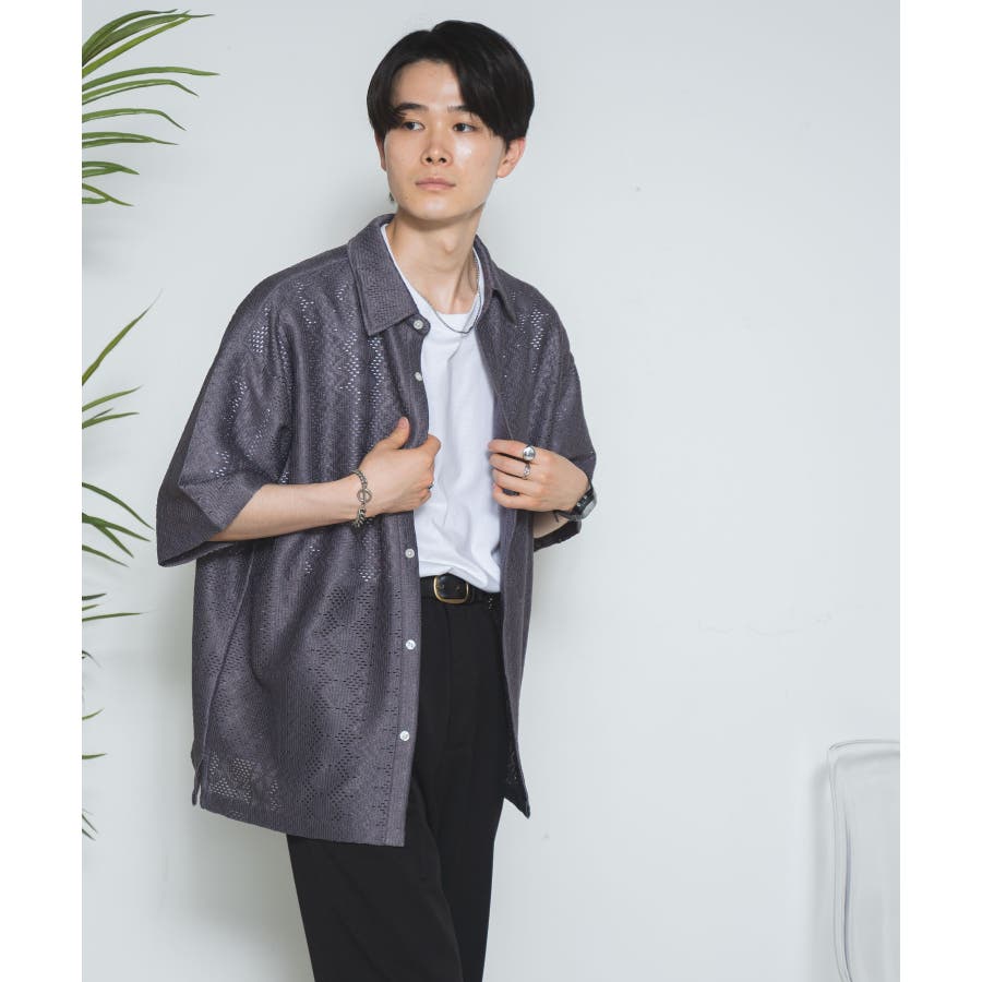 メッシュBIGシャツ(S) メンズ レディース 春 秋 冬 韓国 韓国ファッション ユニセックス ストリート きれいめ シャツ 半袖 羽織り
