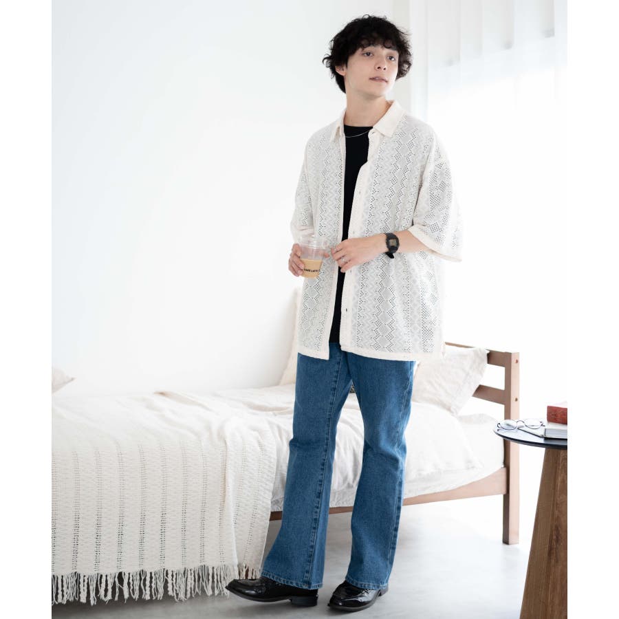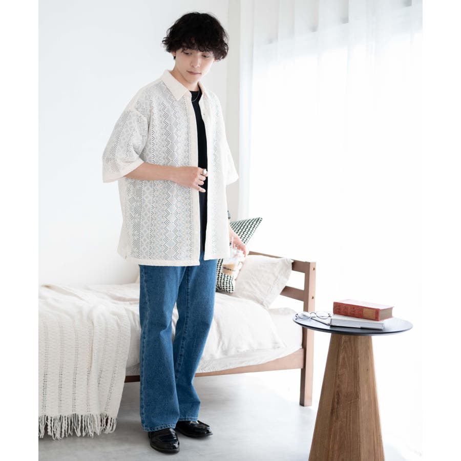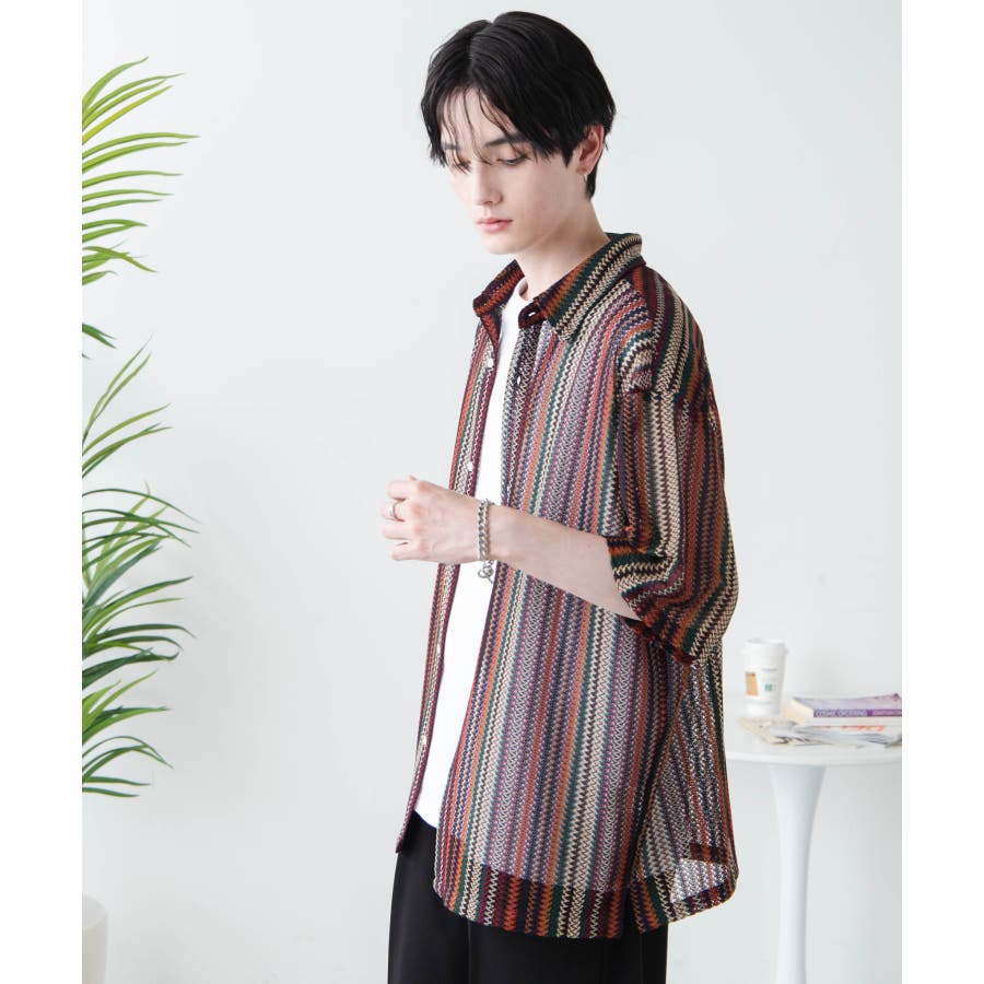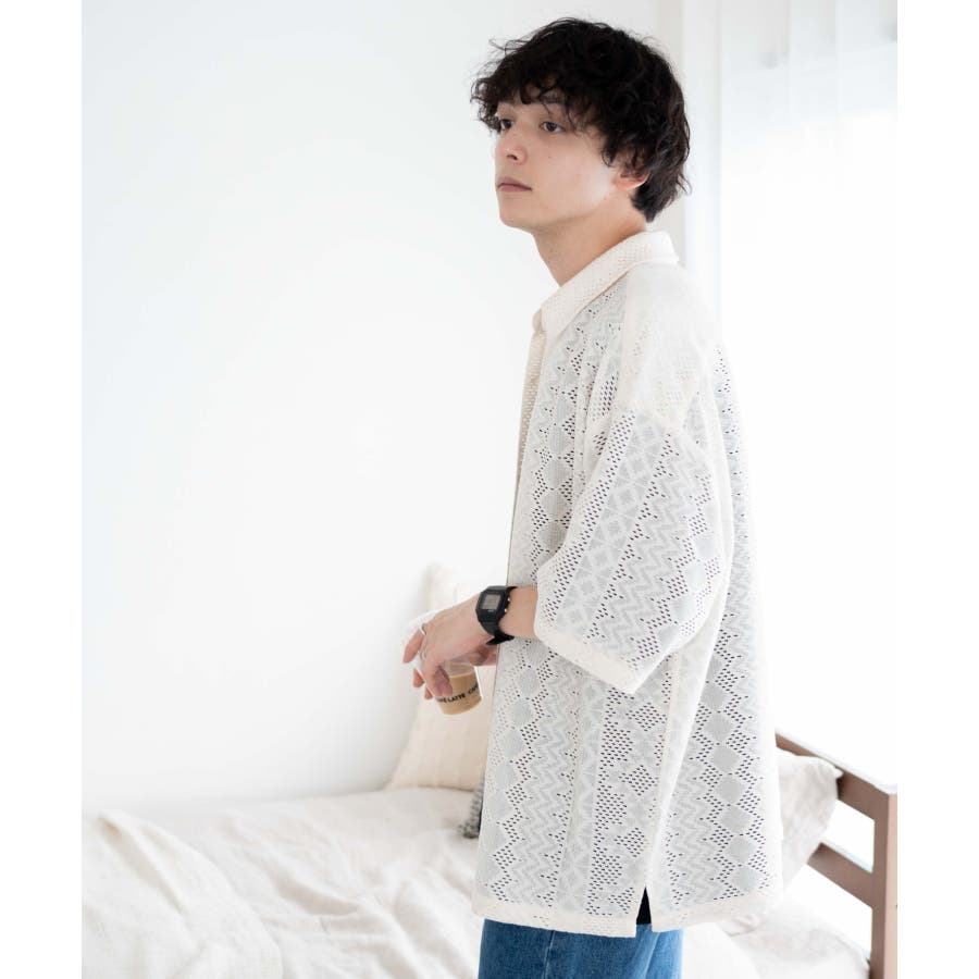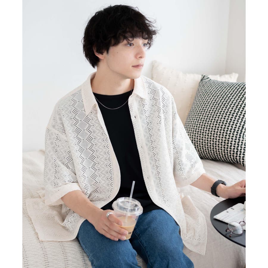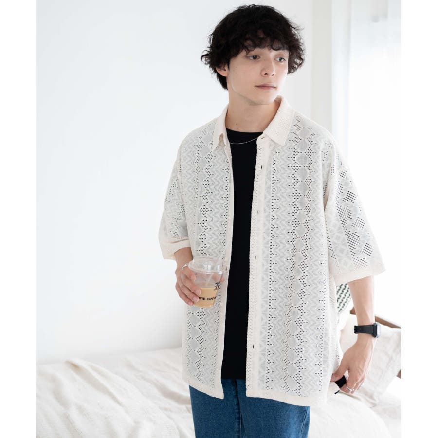 メッシュBIGシャツ(S) メンズ レディース 春 秋 冬 韓国 韓国ファッション ユニセックス ストリート きれいめ シャツ 半袖 羽織り