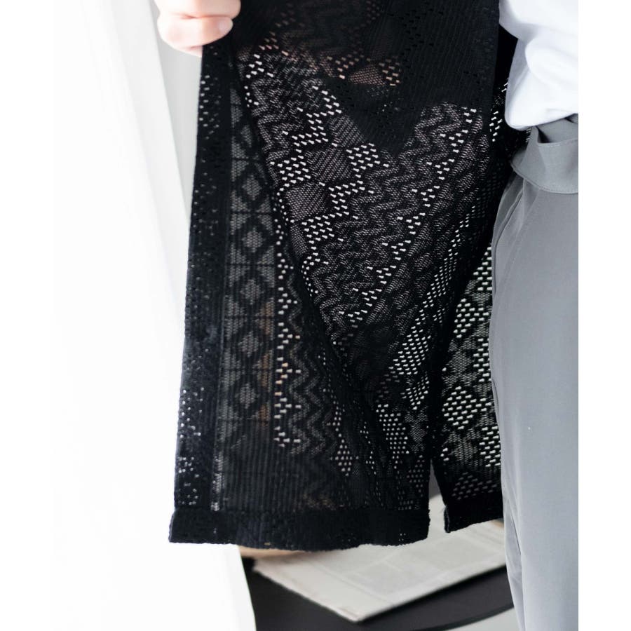 透かし編みと身幅にもゆとりを持たせ、全体的に涼しげにルーズ感のある一枚に。