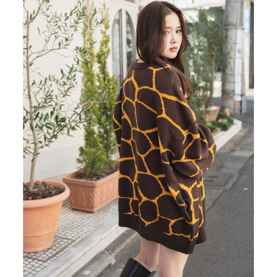 ルーズ総柄カーデ 韓国 韓国ファッション
