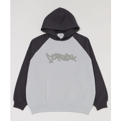 刺繍ロゴデザインがポイントになったラグランプルパーカー。