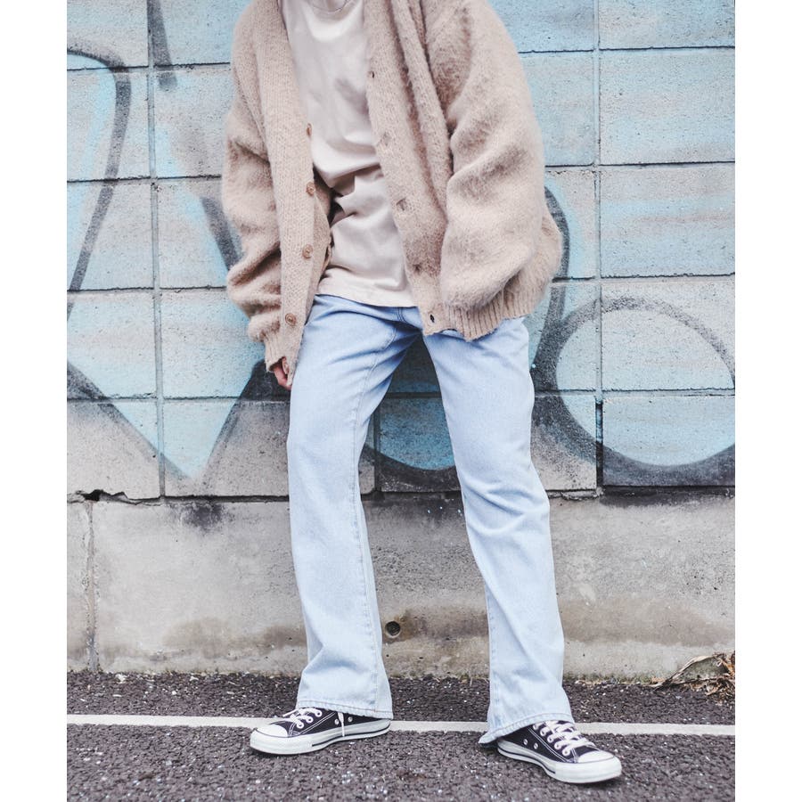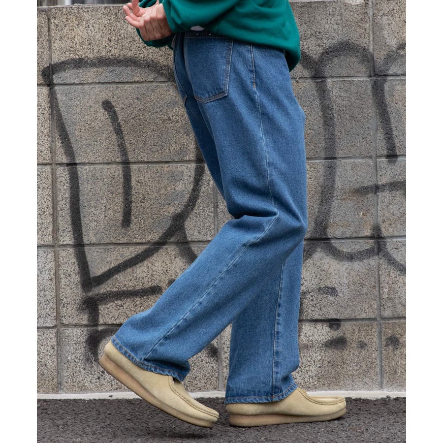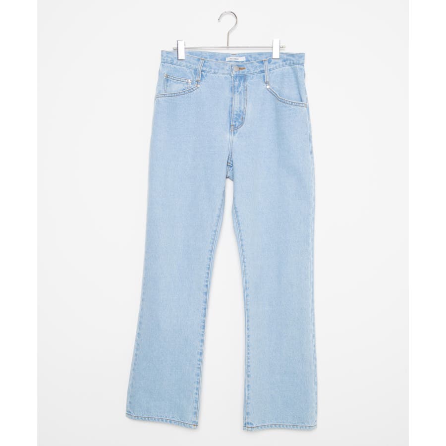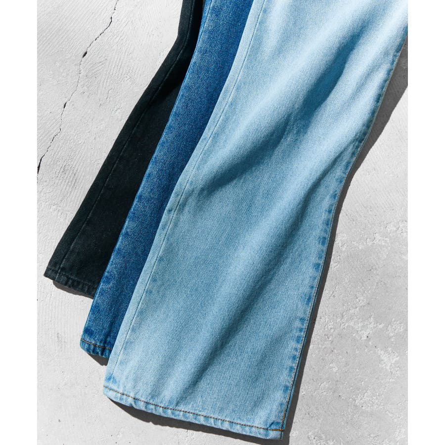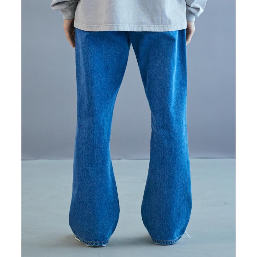 フレア型デニム膝周りをやや絞り、裾に向けて広がるフレア型ひざの絞り、裾の広がりが極端ではなく、穏やかに広がっていく事で、ラインが縦長でシャープな印象を残しながら、使い勝手の良い現代にあったフレア型に。型別に角度が変えるているWEGO STANDARDオリジナルのL字の鋭角なフロントポケットデザインを採用、またアクセントのリベットにプレーンな物を使用、ステッチでディテールに変化を加える事で、シャープな印象を与えつつも、幅広く使用できる馴染みの良いデザインに。12.5ozの程よい肉感のデニムを使用し、加工感にこだわった淡色・中濃・ブラック、程よいヴィンテージ感を出しながらも、シーズンレスにデイリーに使用でき、幅広いスタイリングにマッチするアイテム。