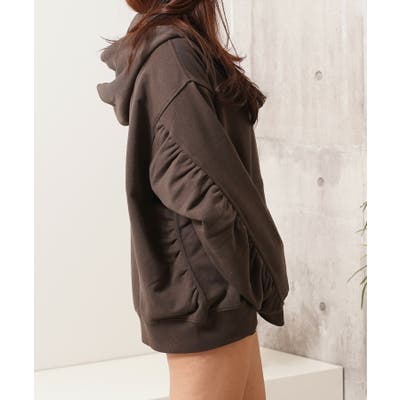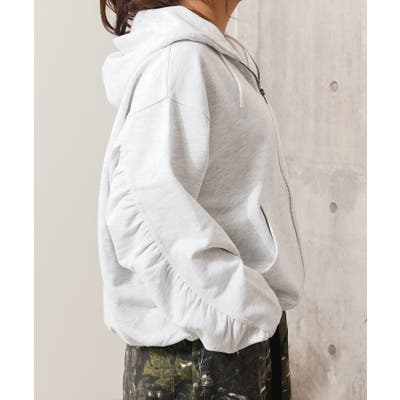 袖にボリューム感を出しリブはしっかりと締まったメリハリの利いたバルーンスリーブジップパーカー。