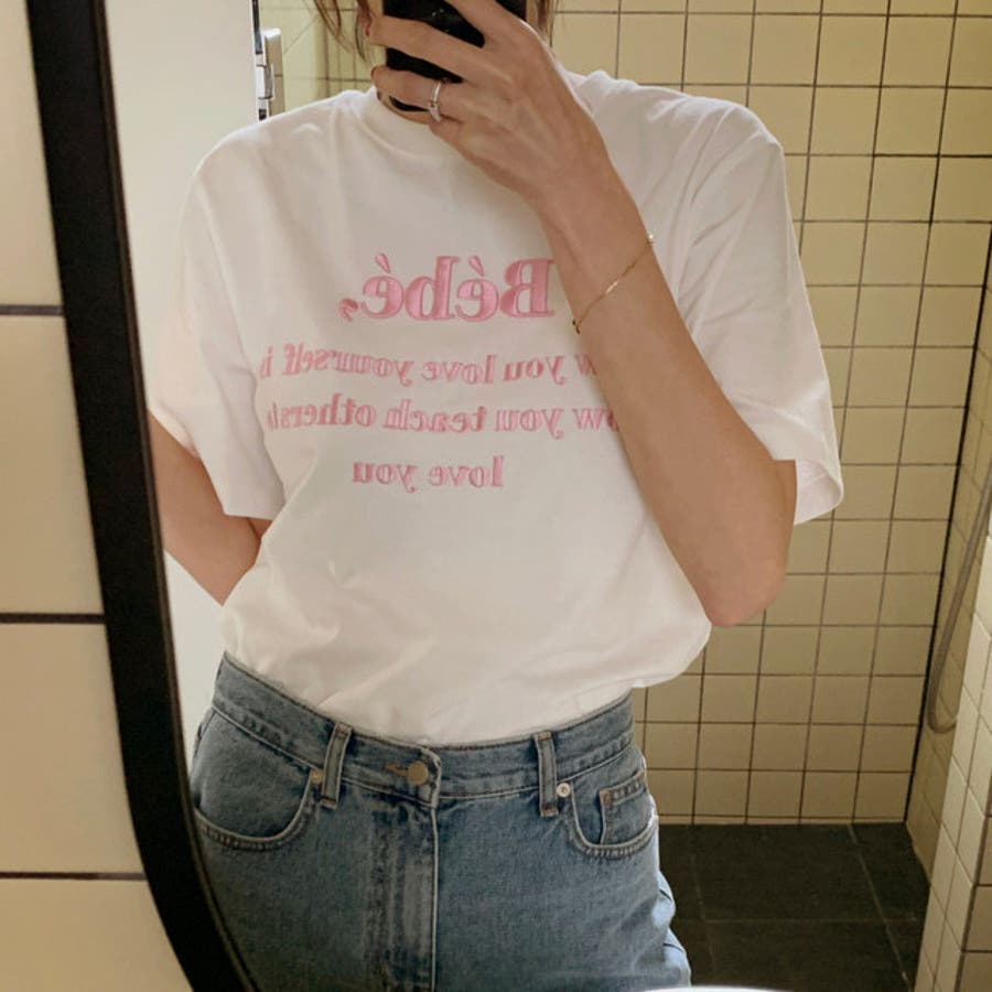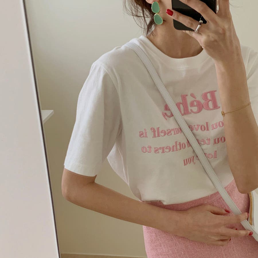 【SHOPLIST限定】トップスTシャツ半袖カジュアル刺繍ロゴオシャレ