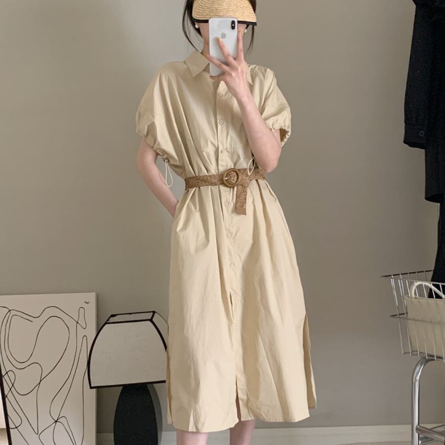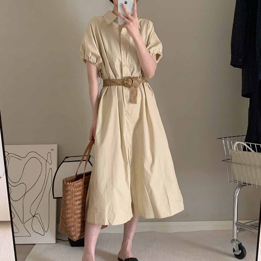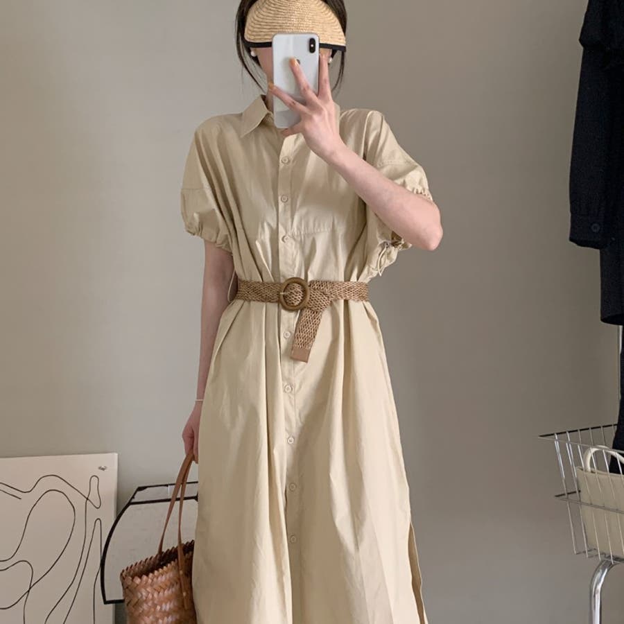 【赤字覚悟!処分セール】編みベルト付き短袖ワンピースAラインネック