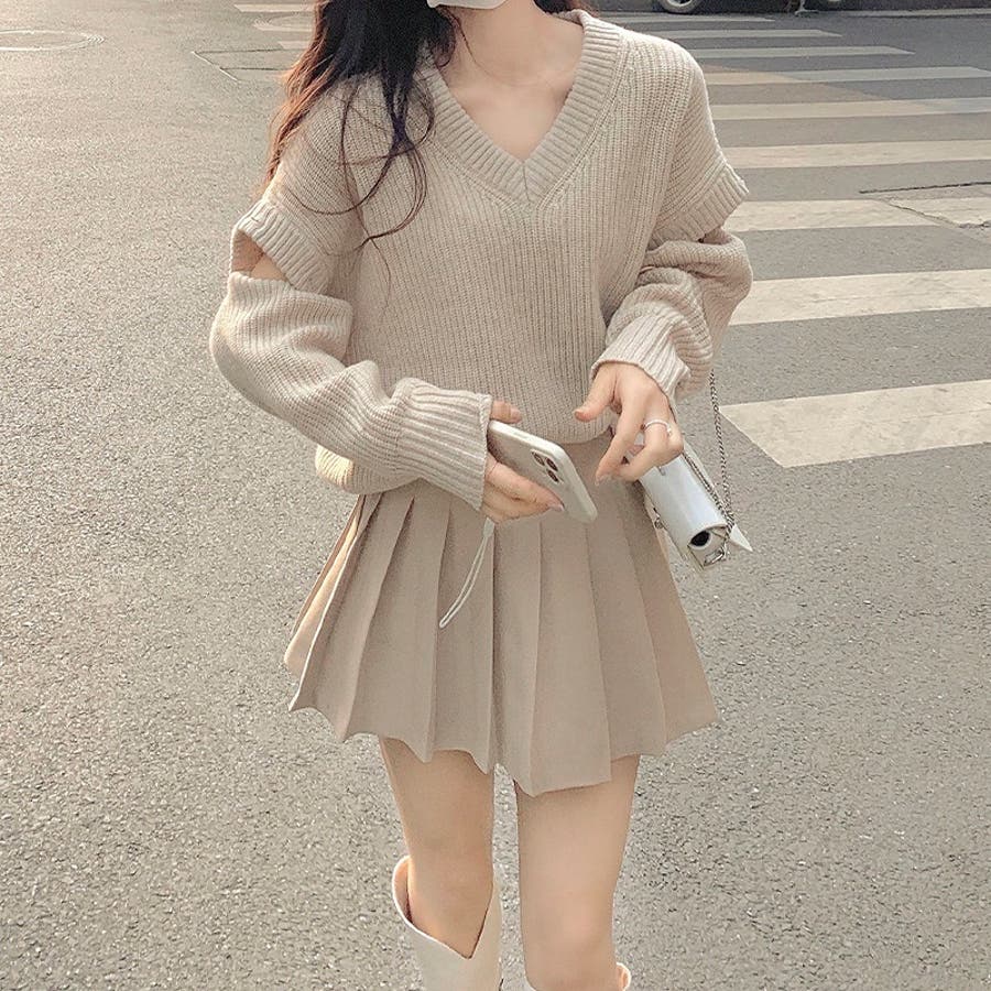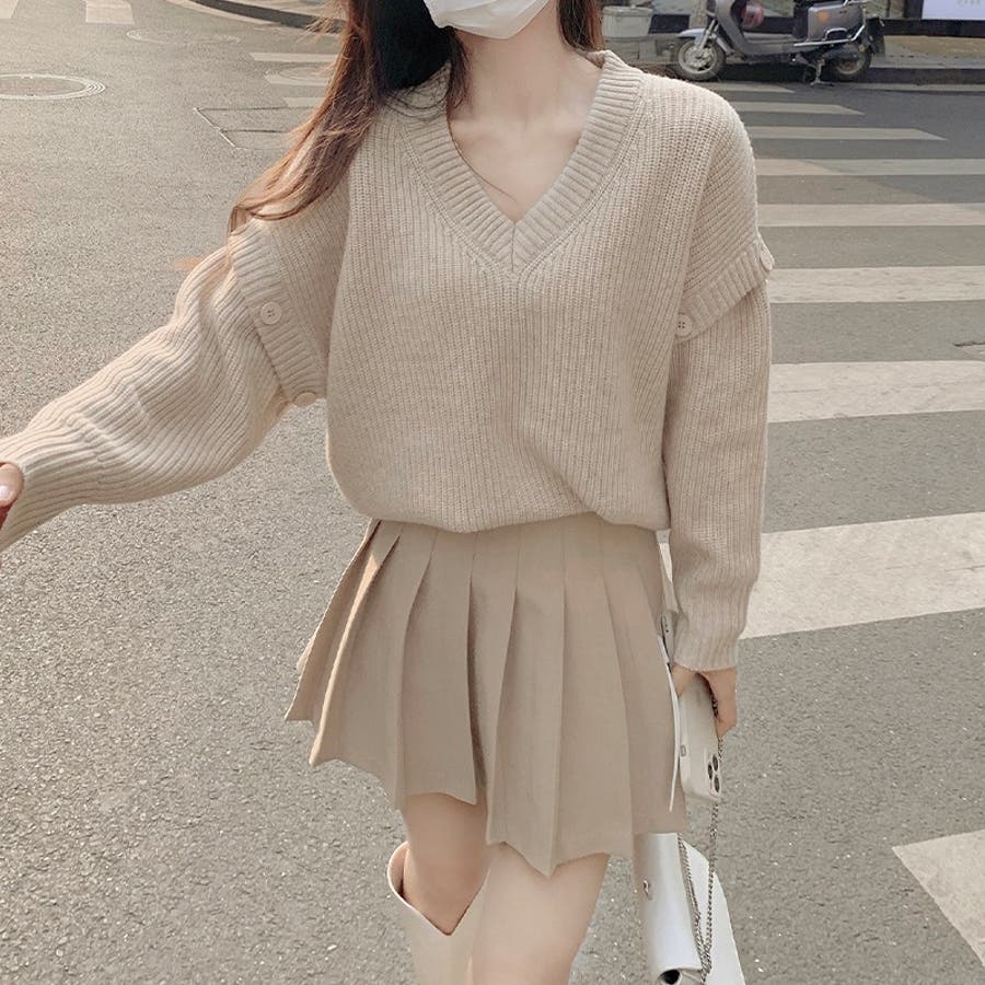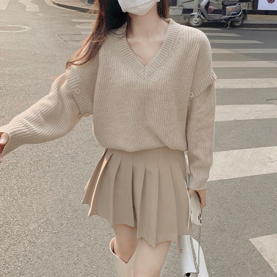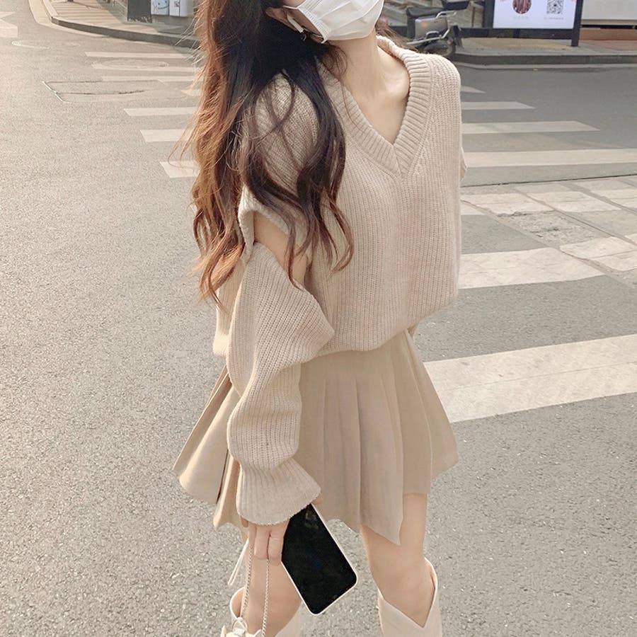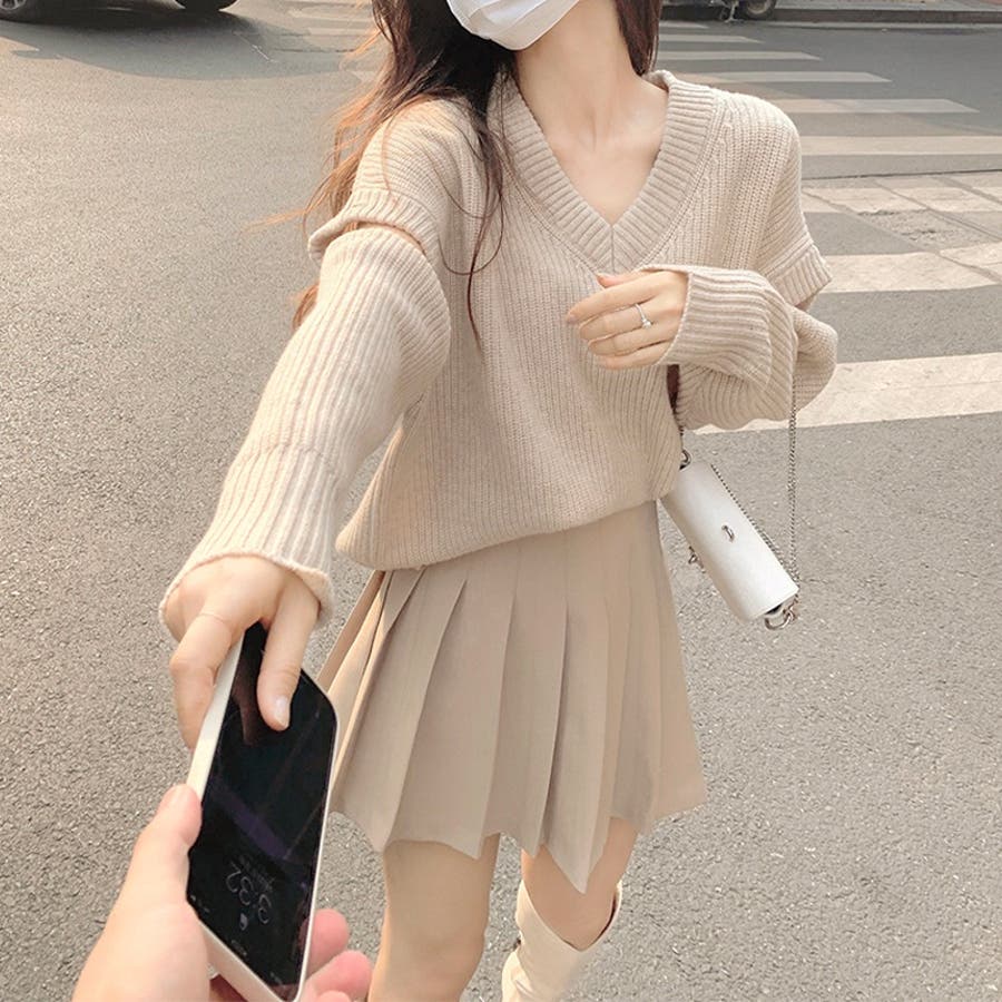 【赤字覚悟!処分セール】Vネックカジュアルニットトップス秋セーター