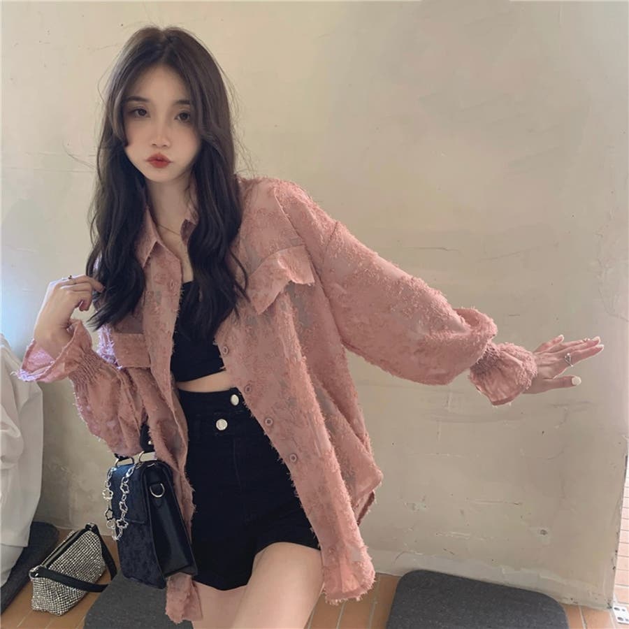 【SHOPLIST限定】シャツシースルートップス日焼け止め服カジュアルビッグシャ…