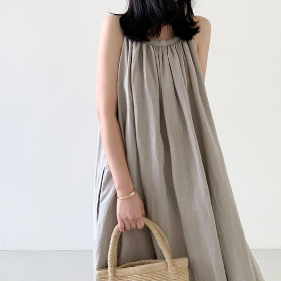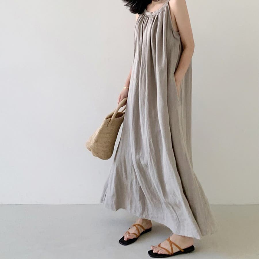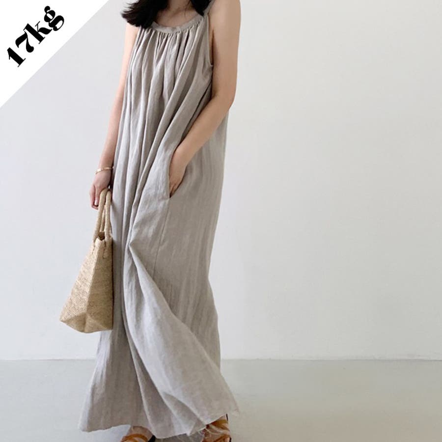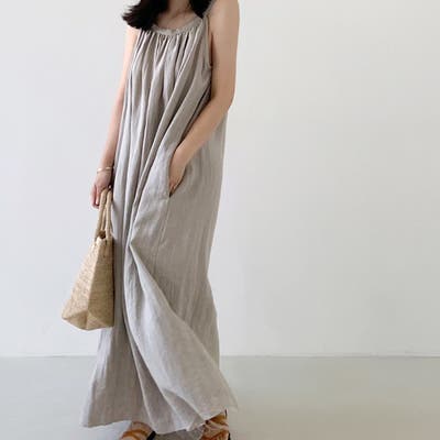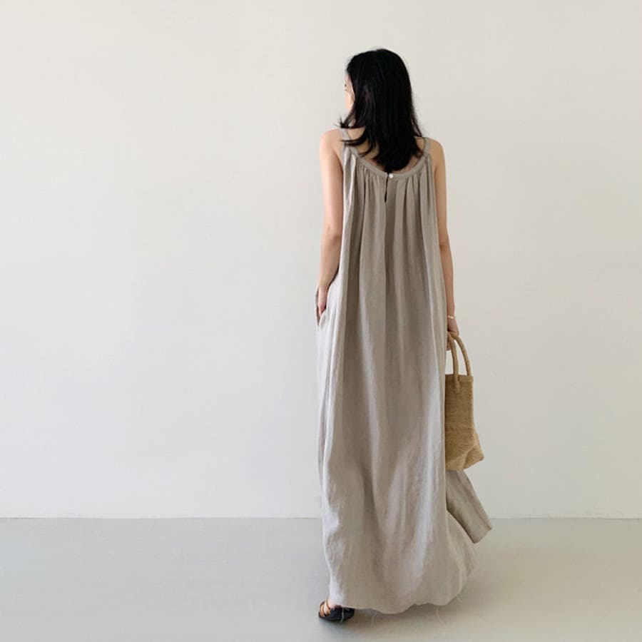 【SHOPLIST限定】ロングキャミワンピース綿麻ノースリーブ