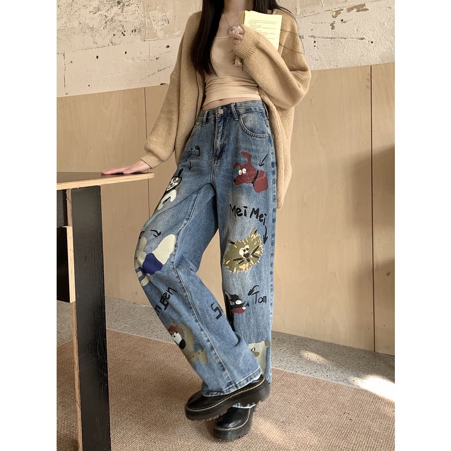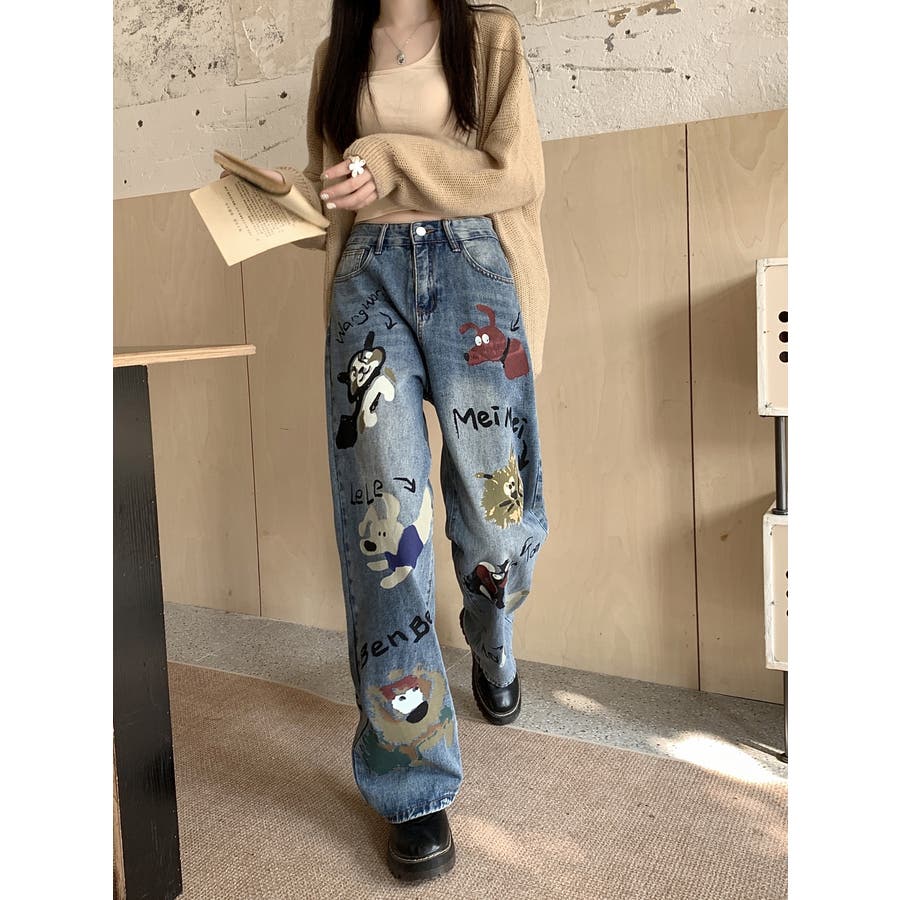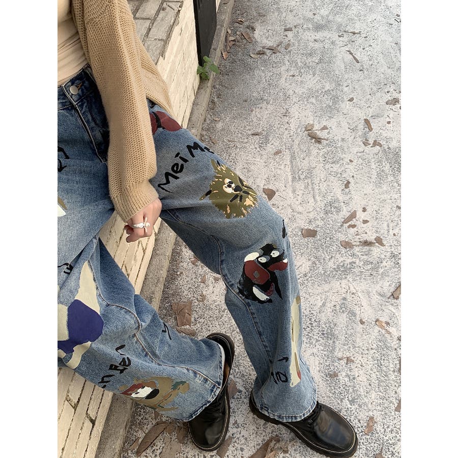 【SHOPLIST限定】おしゃれでリラックスした雰囲気!落書きデニムパンツ