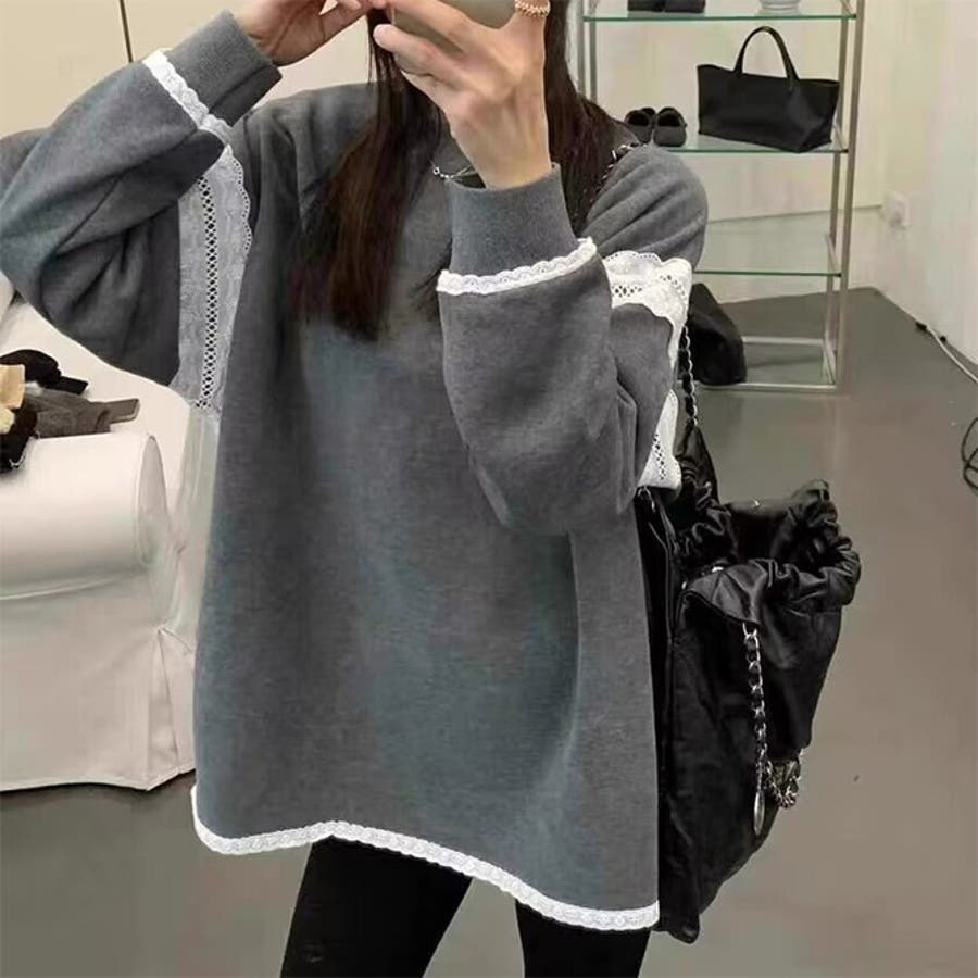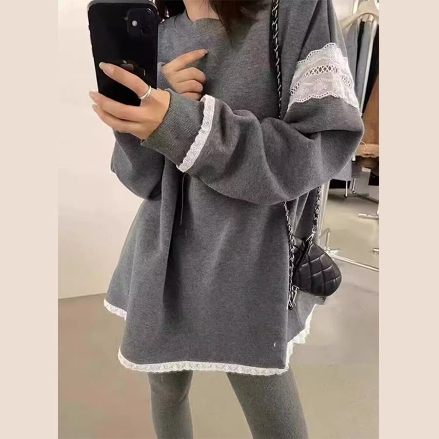 韓国ファッションカジュアルコーデの定番。レースかけロングパーカーフェミニズム