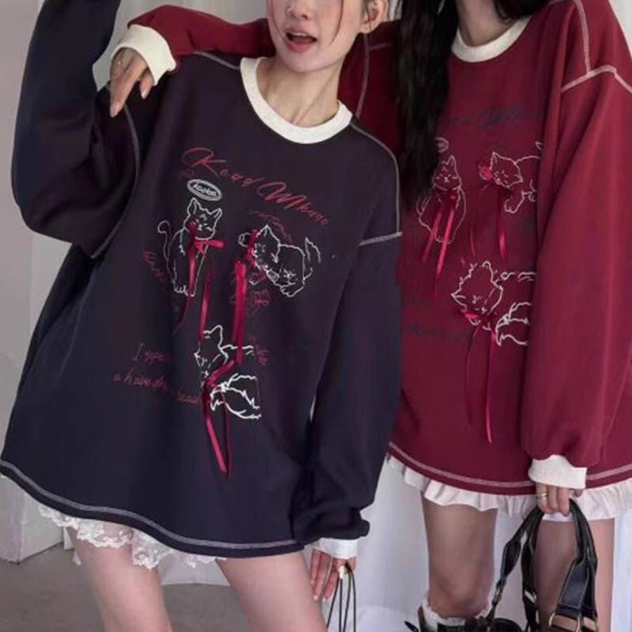 清潔感あふれる!立体リボンバイカラートレーナー