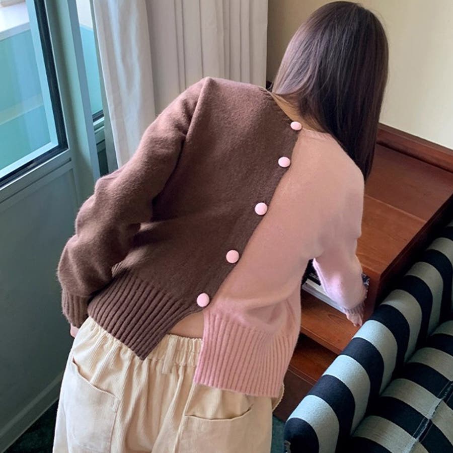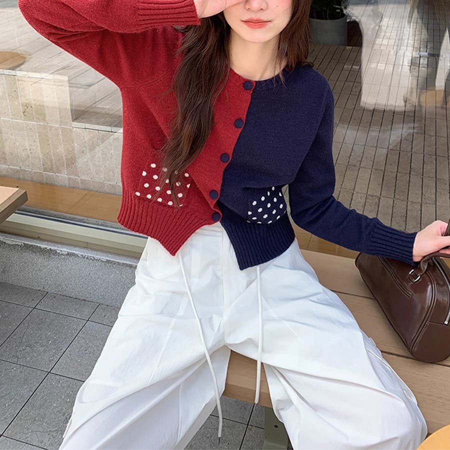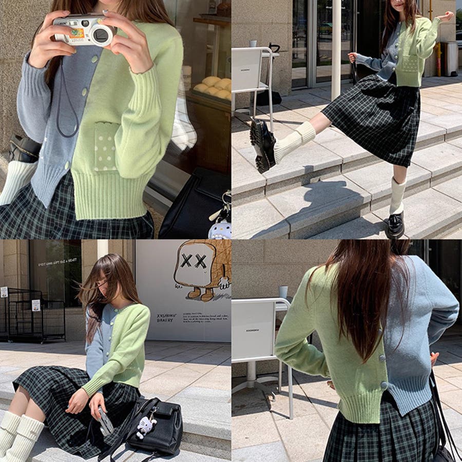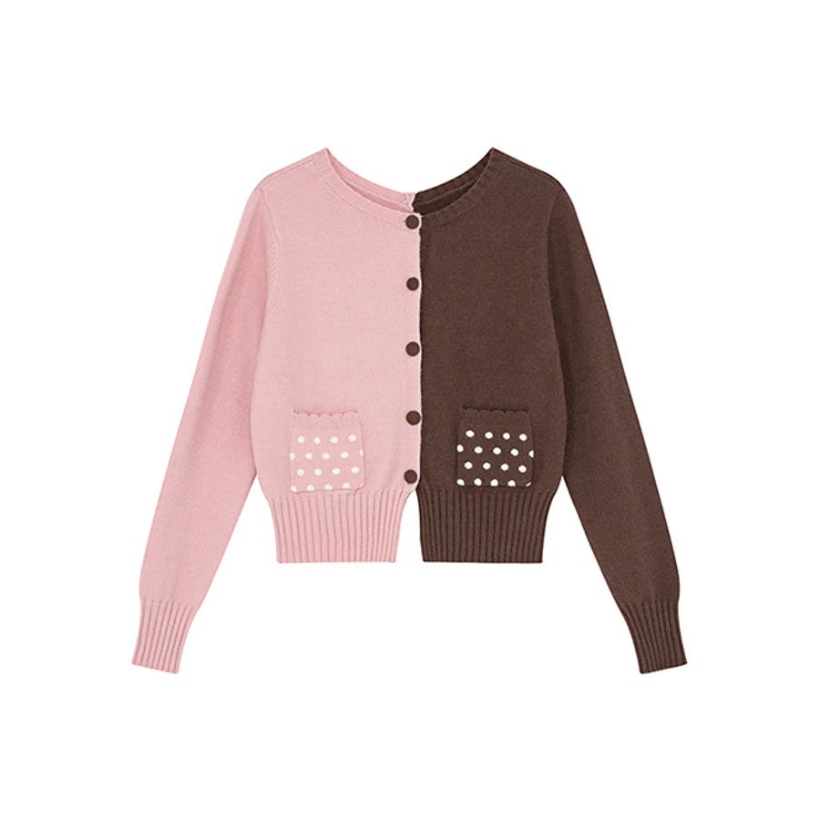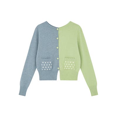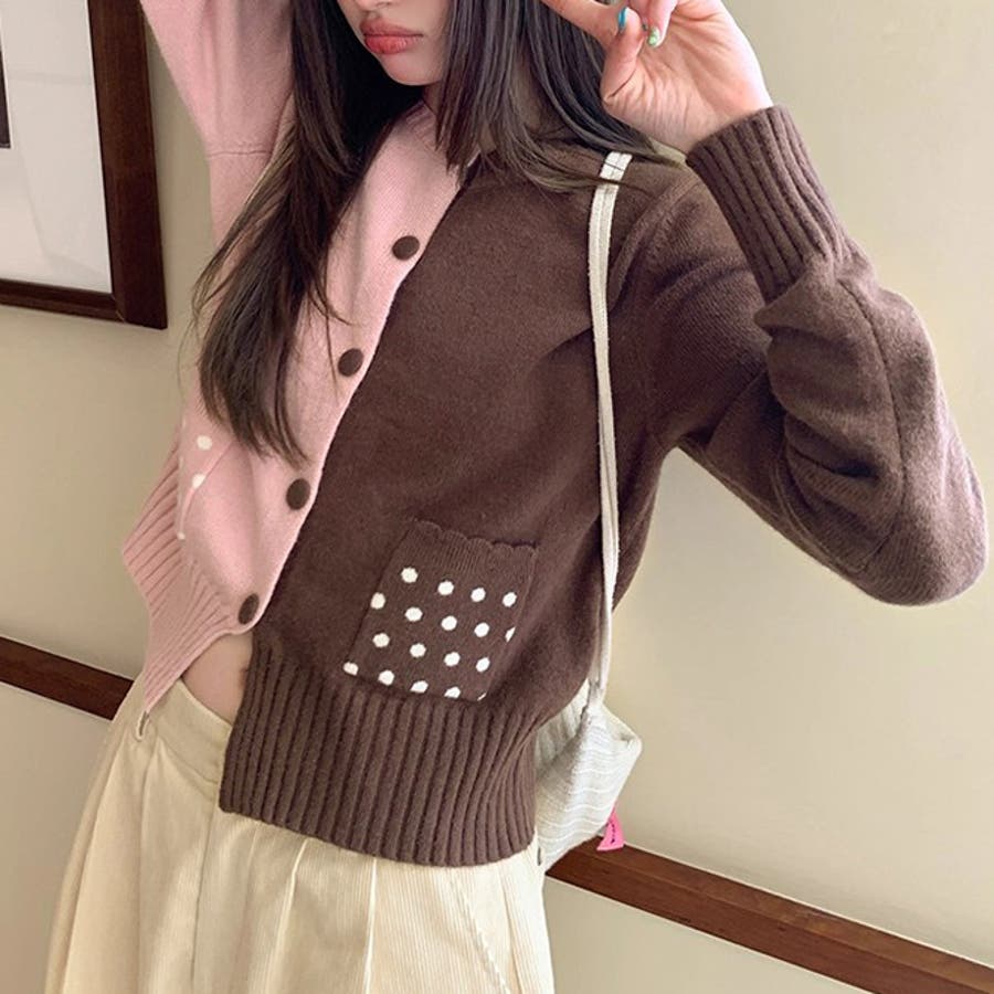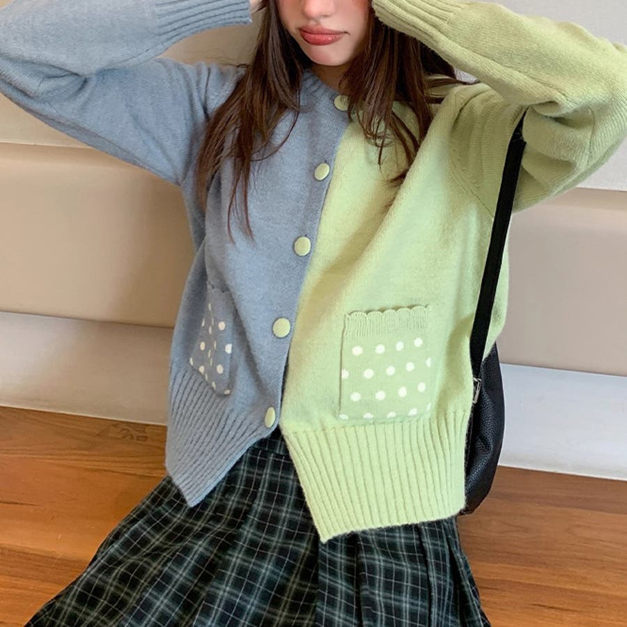 甘辛系ガールズ☆配色 ドット ポケット ニットカーディガン