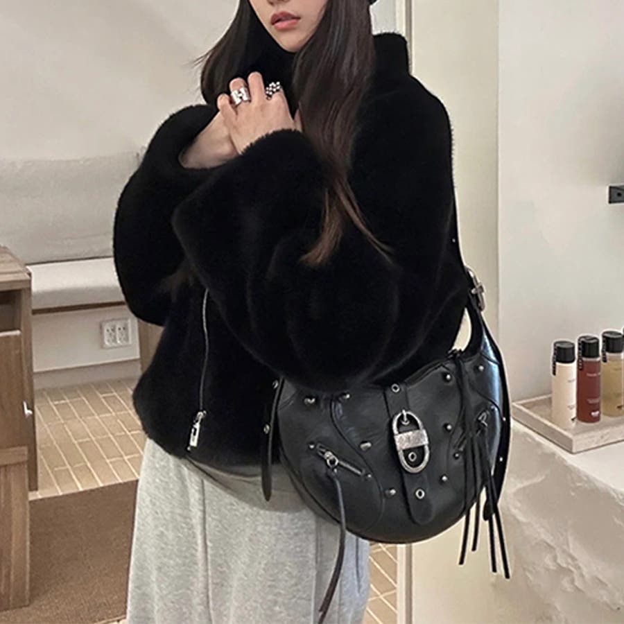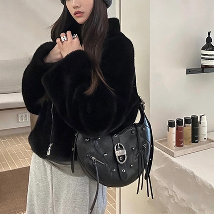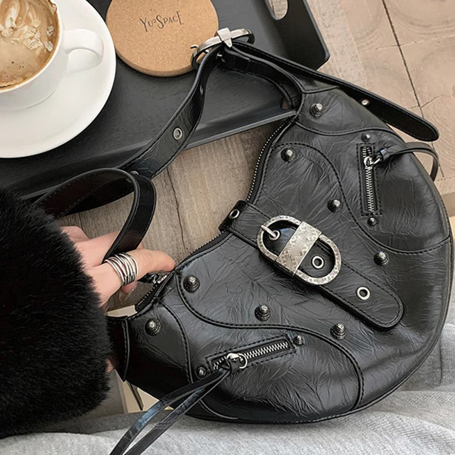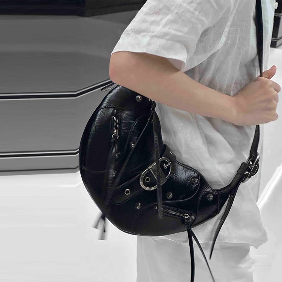 ユニセックス☆大容量 スタッズ ライダースバッグ ショルダー ワンショルダー