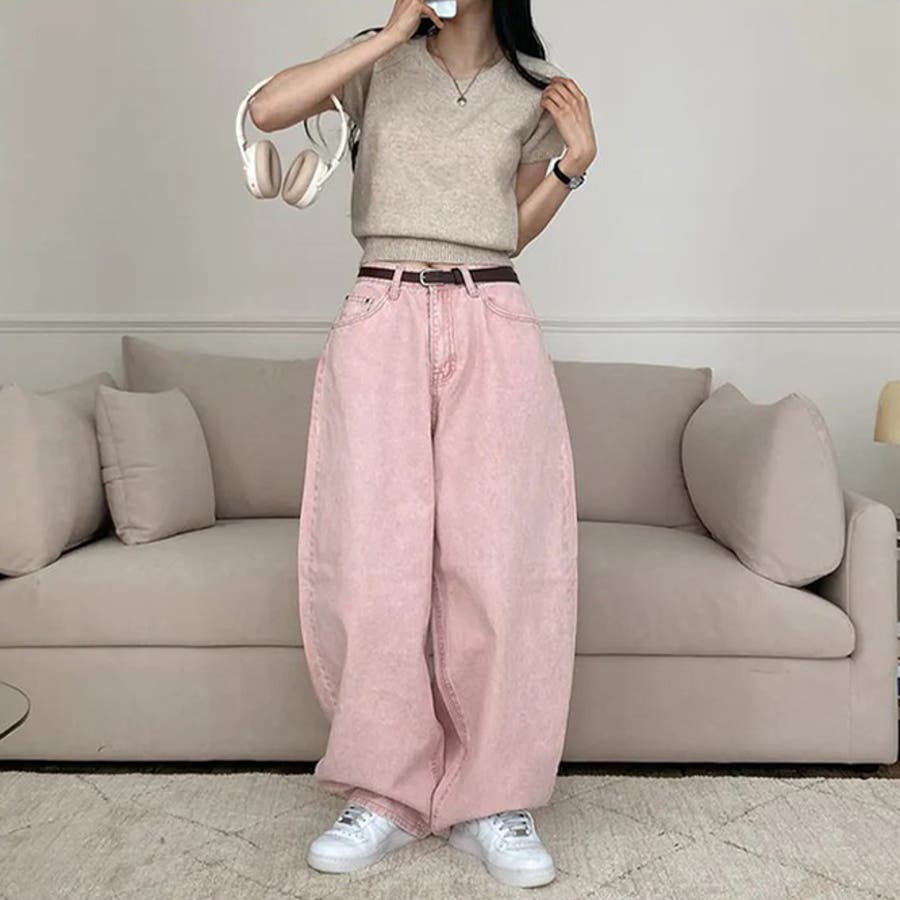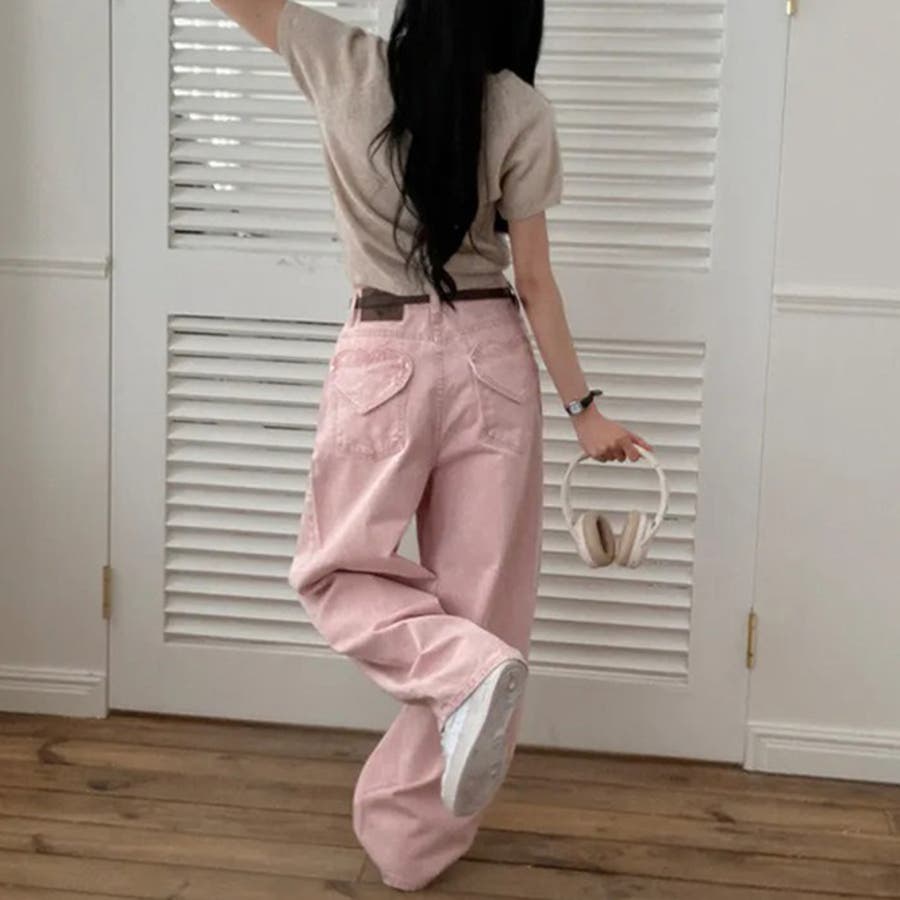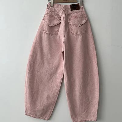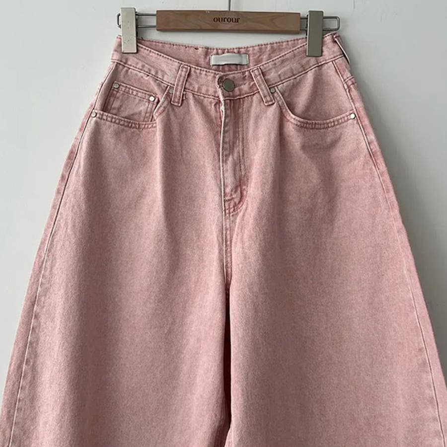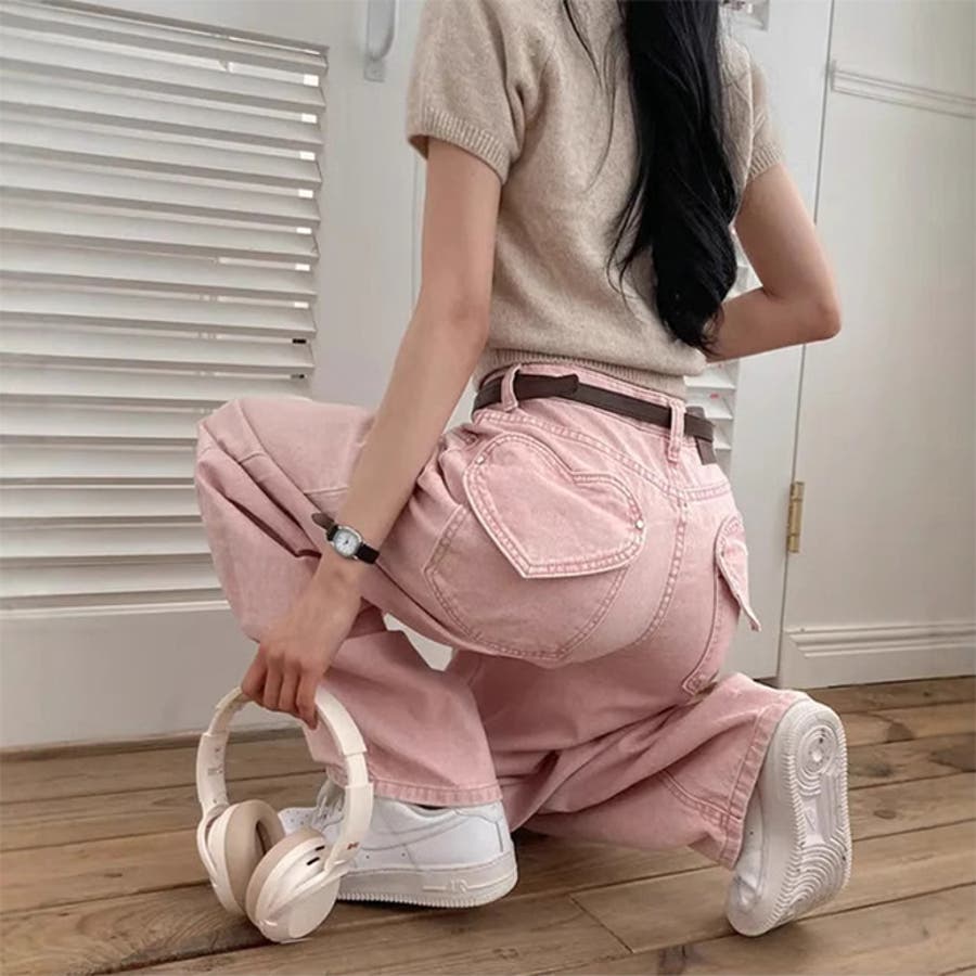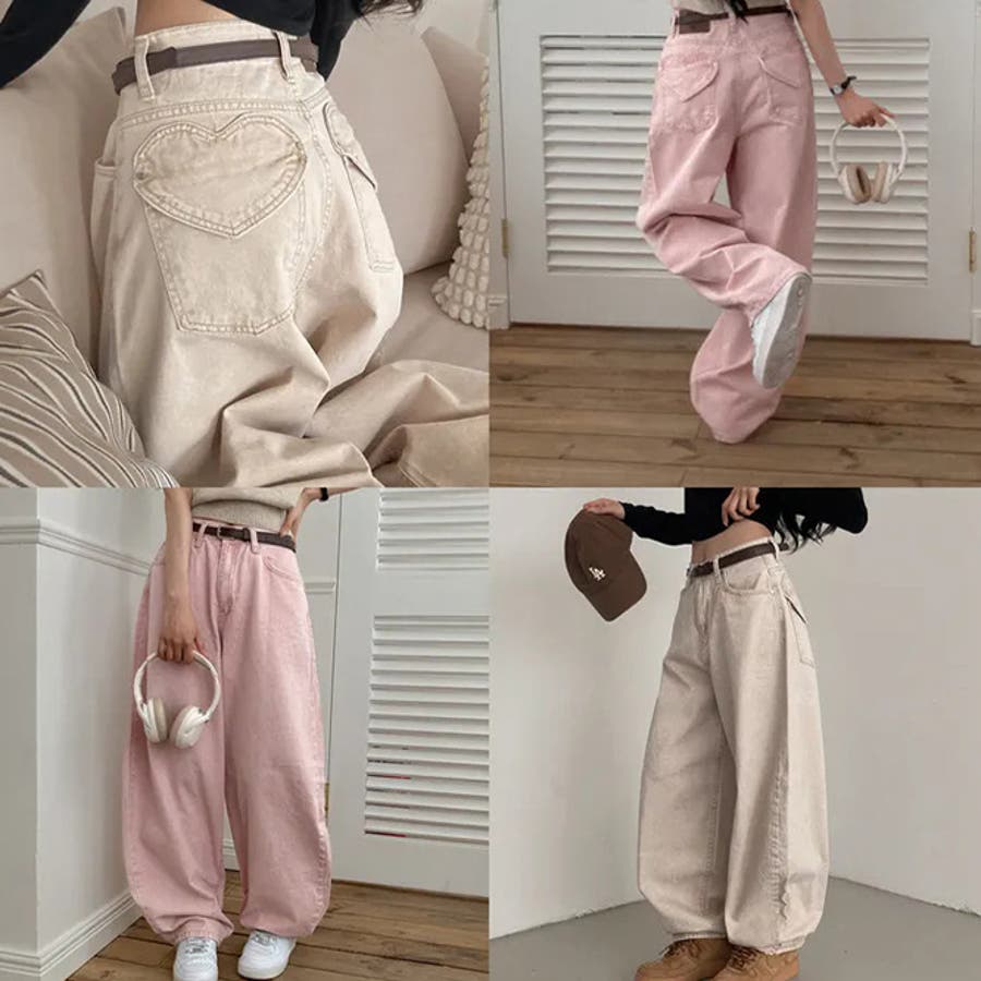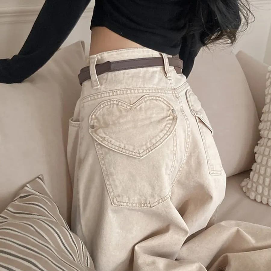甘辛系ガールズ☆ハイウエスト ハート ポケット ワイドデニムパンツ