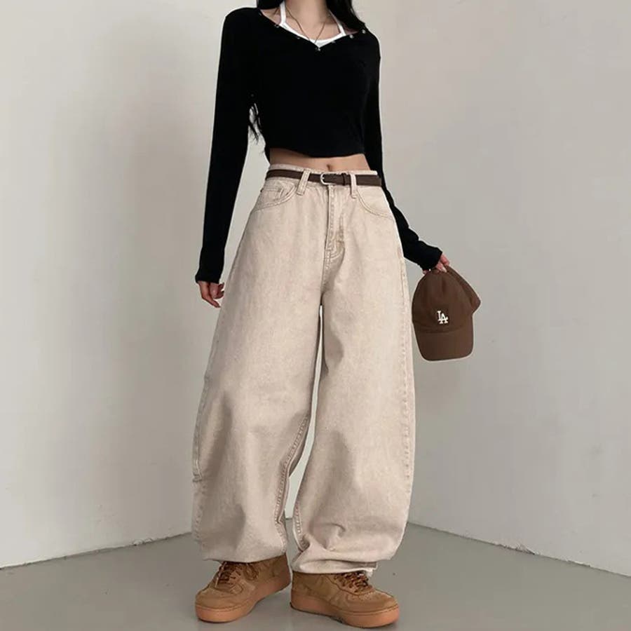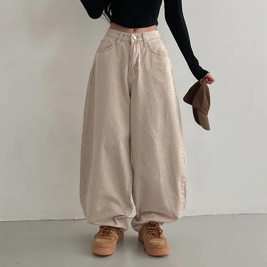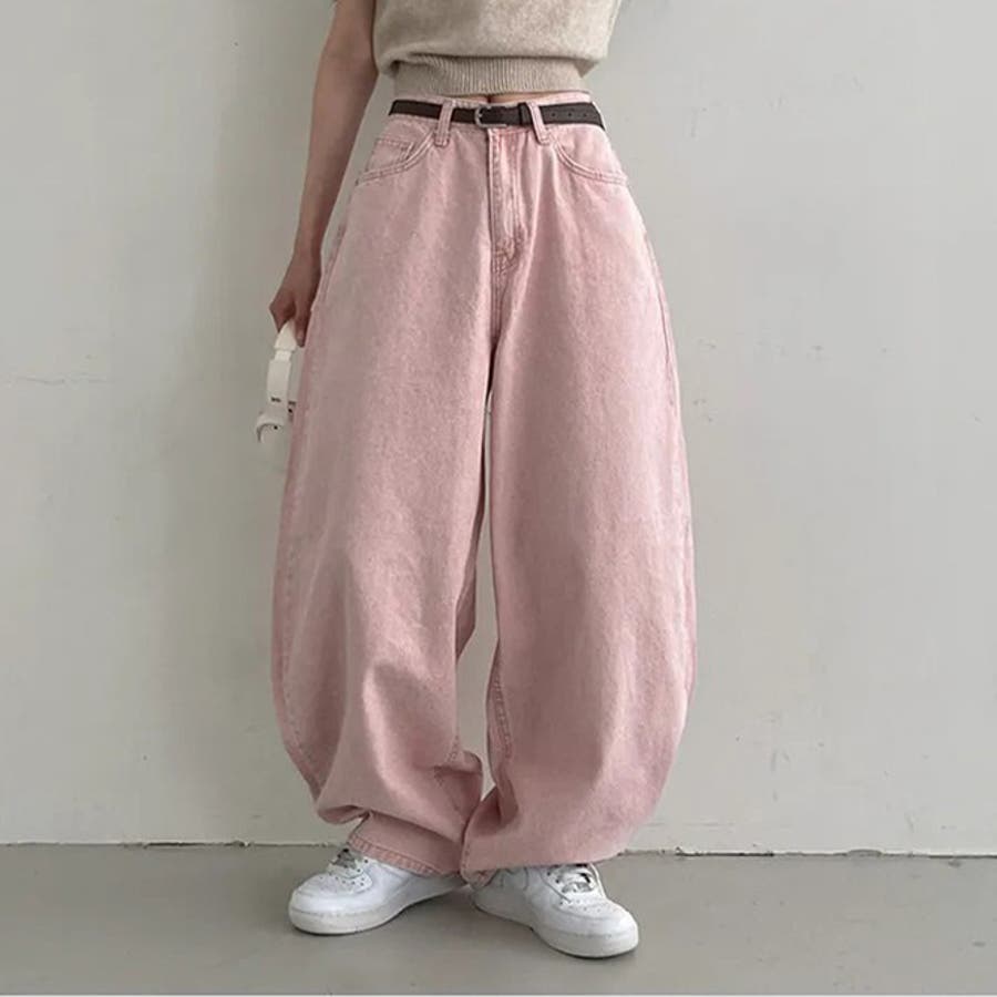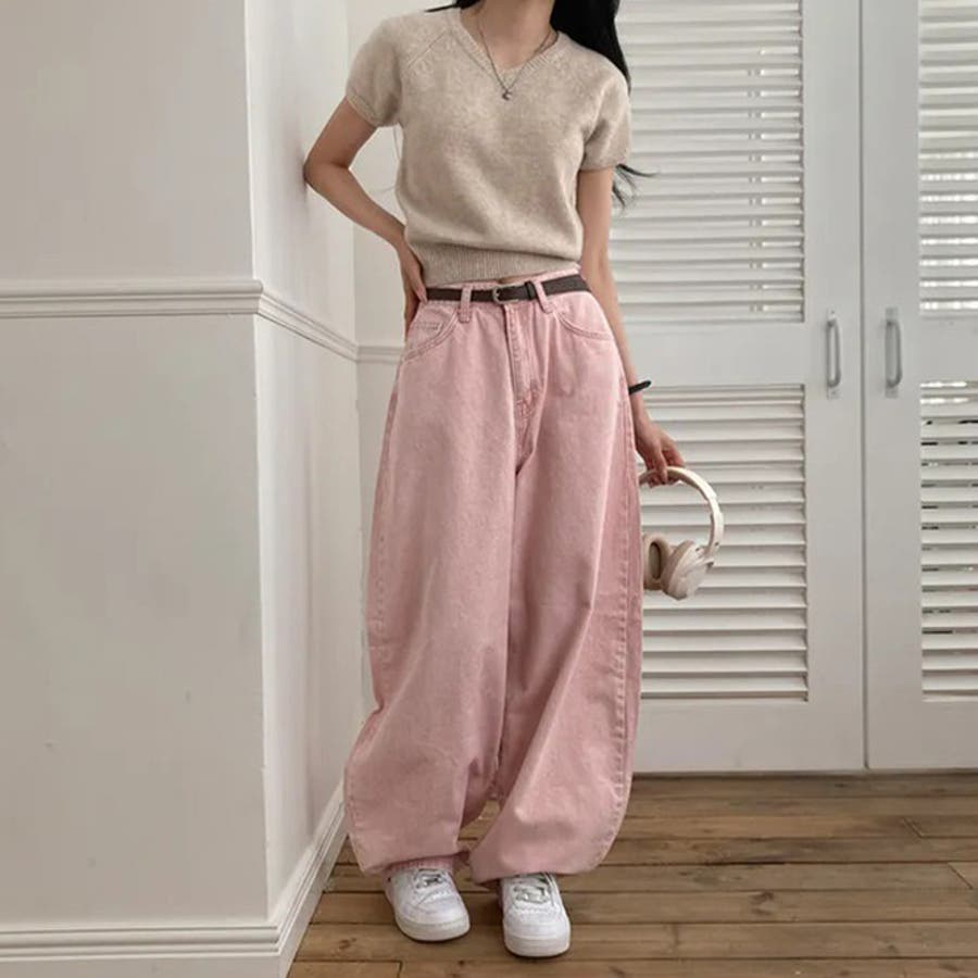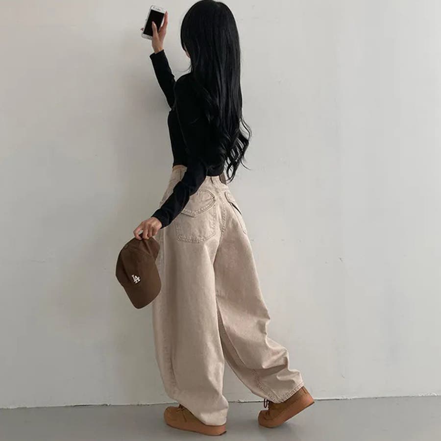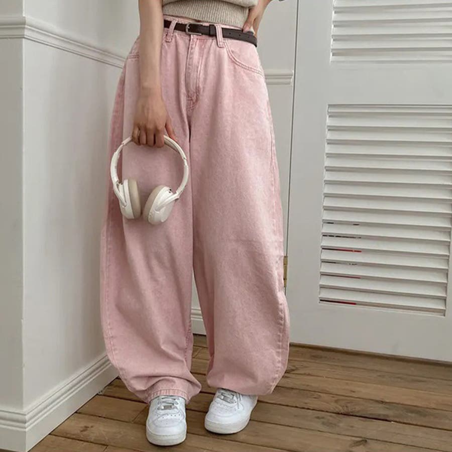 甘辛系ガールズ☆ハイウエスト ハート ポケット ワイドデニムパンツ
