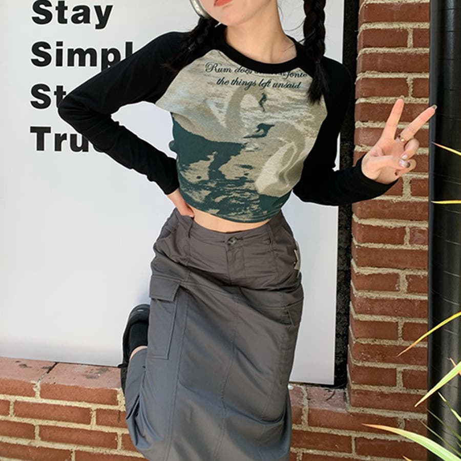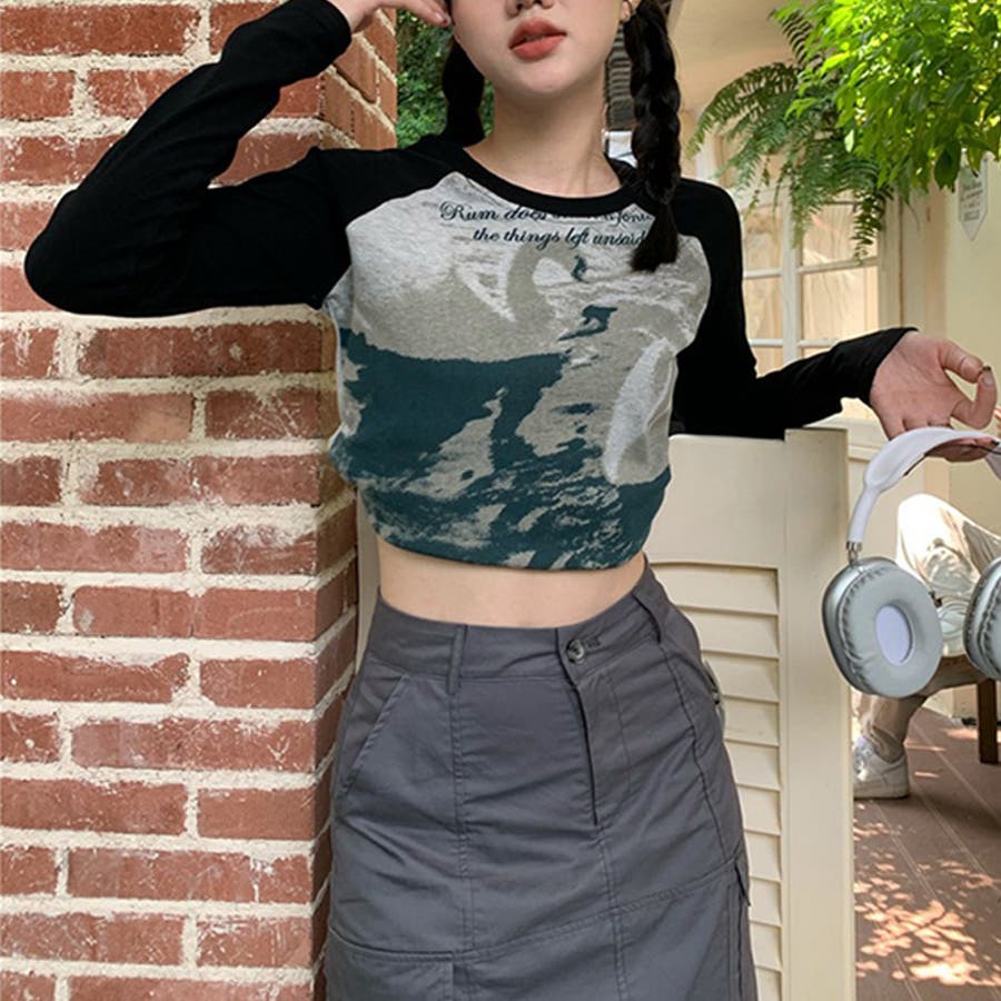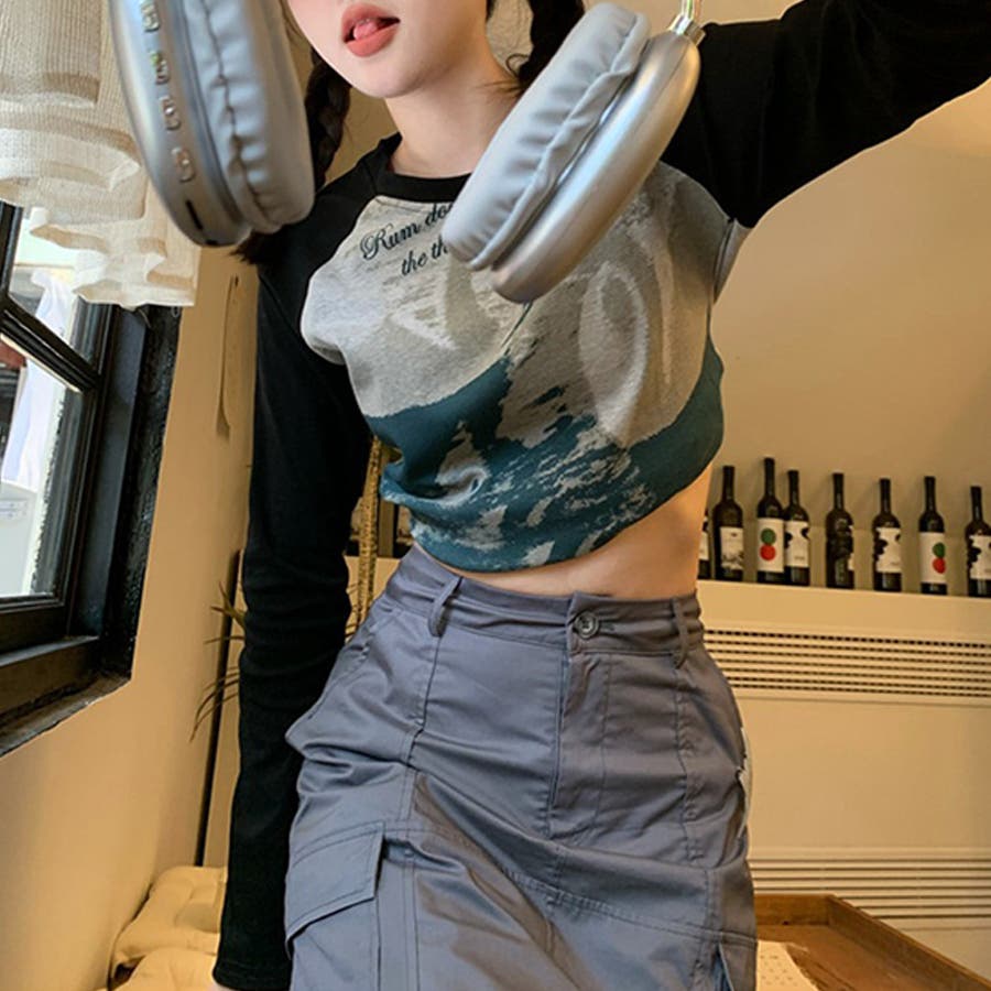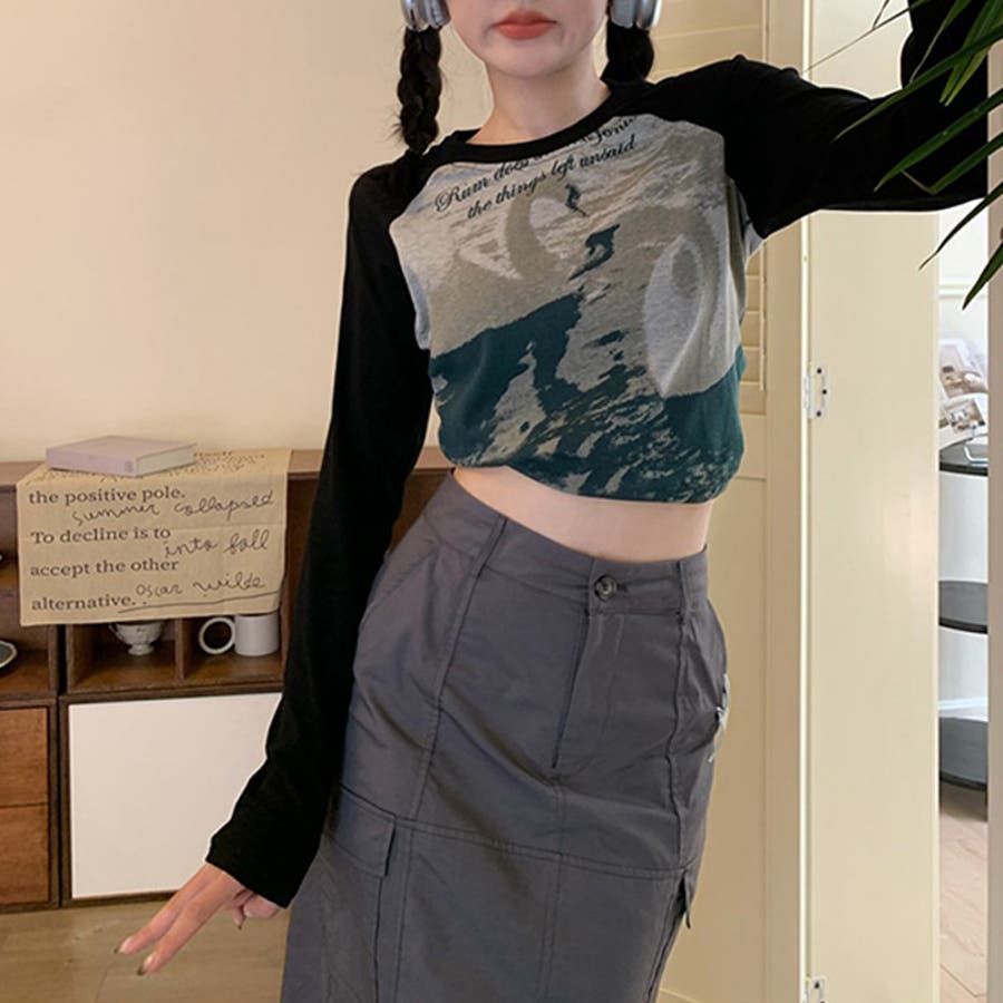 甘辛系ガールズ☆クルーネック 長袖Tシャツ クロップド丈