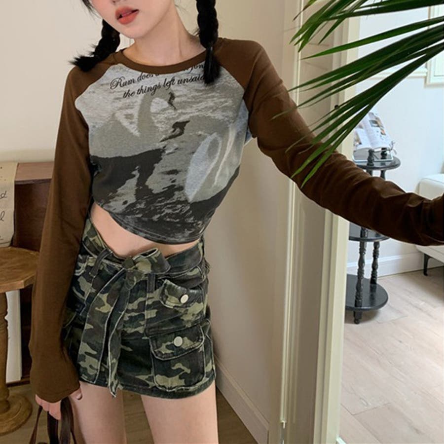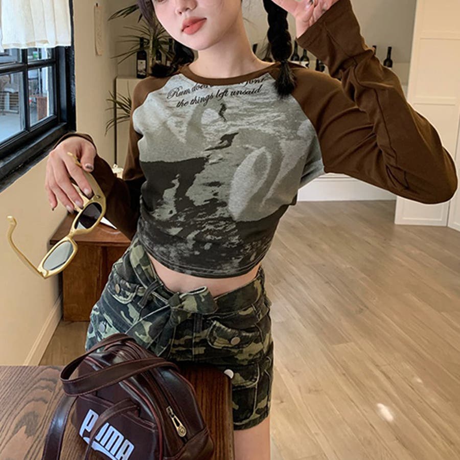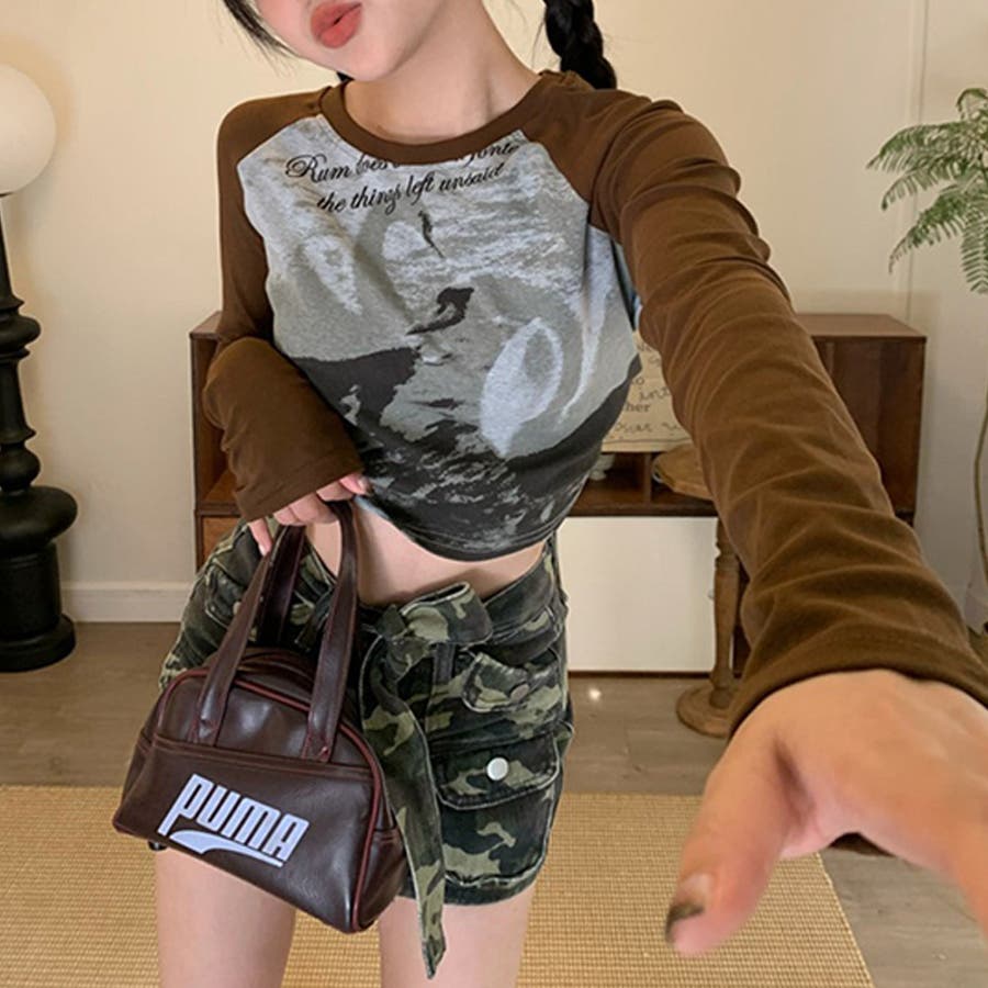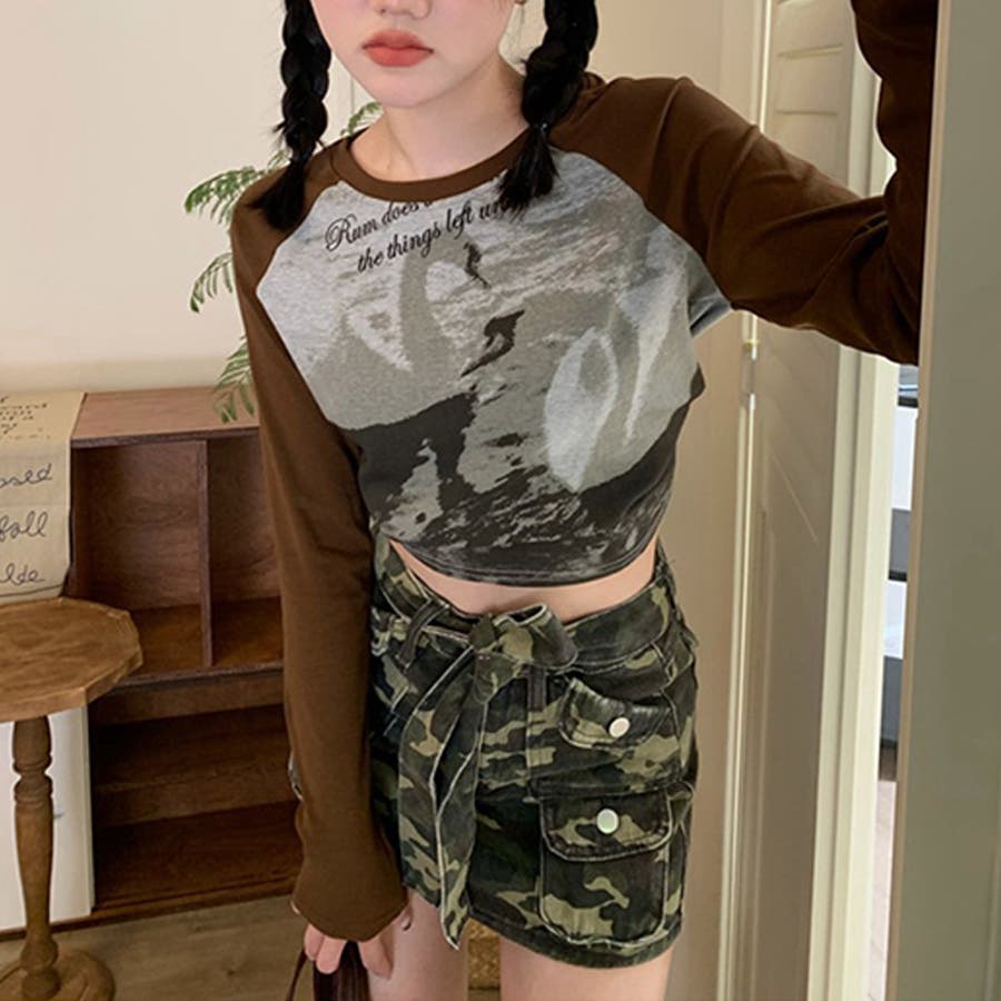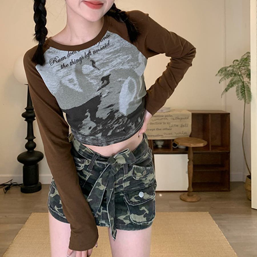 甘辛系ガールズ☆クルーネック 長袖Tシャツ クロップド丈