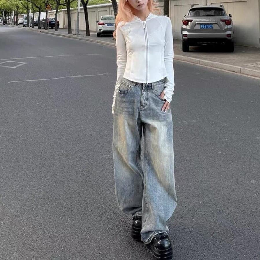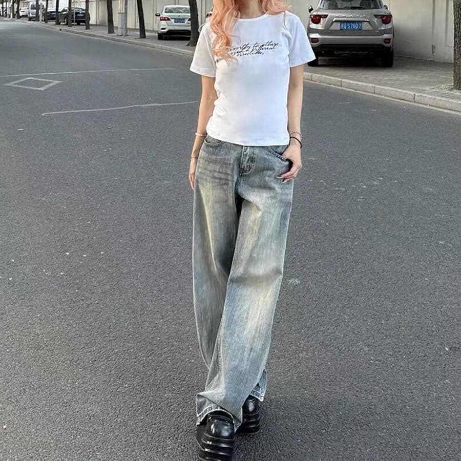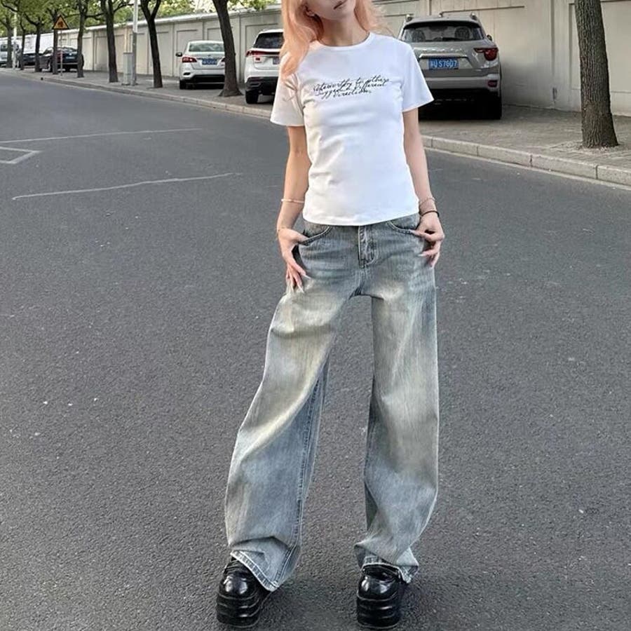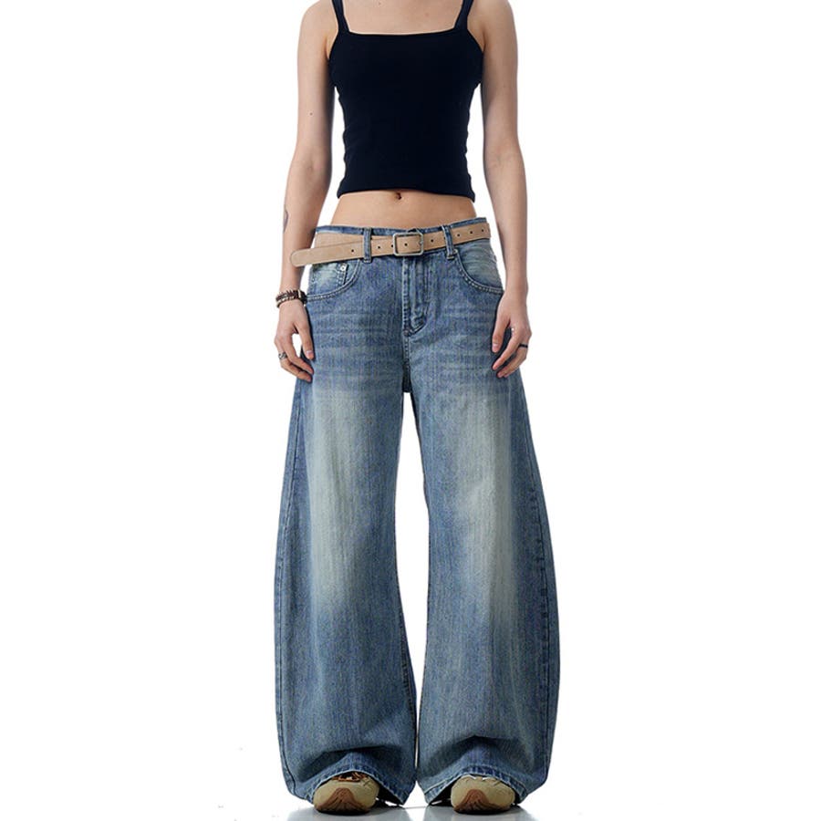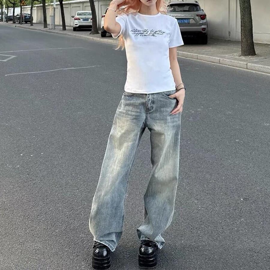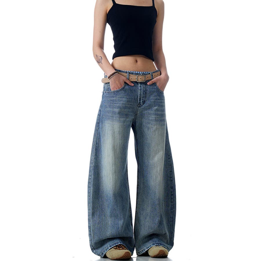2025秋☆甘辛系ガールズ☆ウォッシュ カーブ デニムパンツ