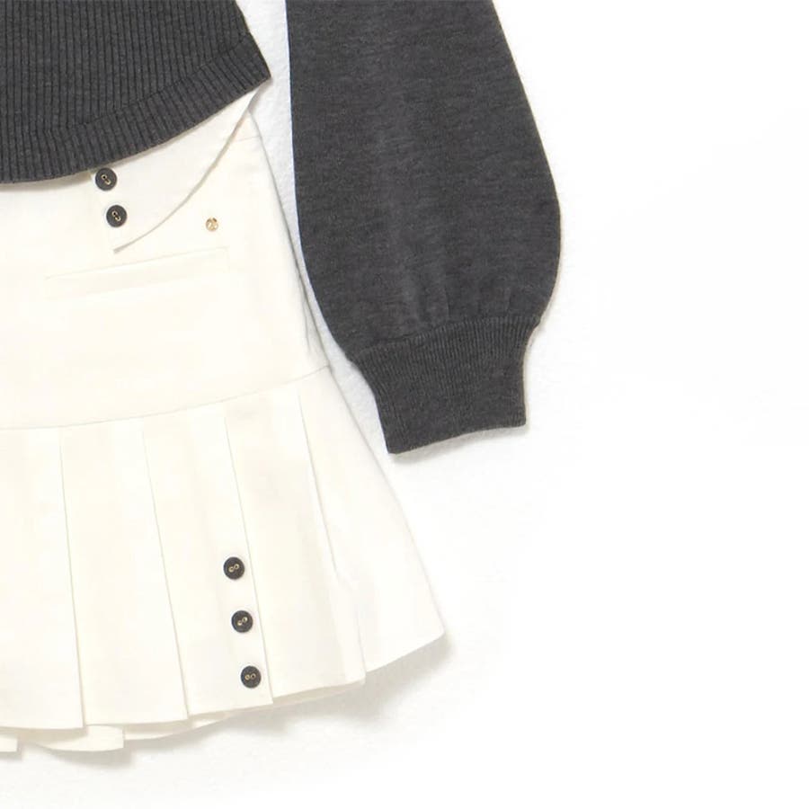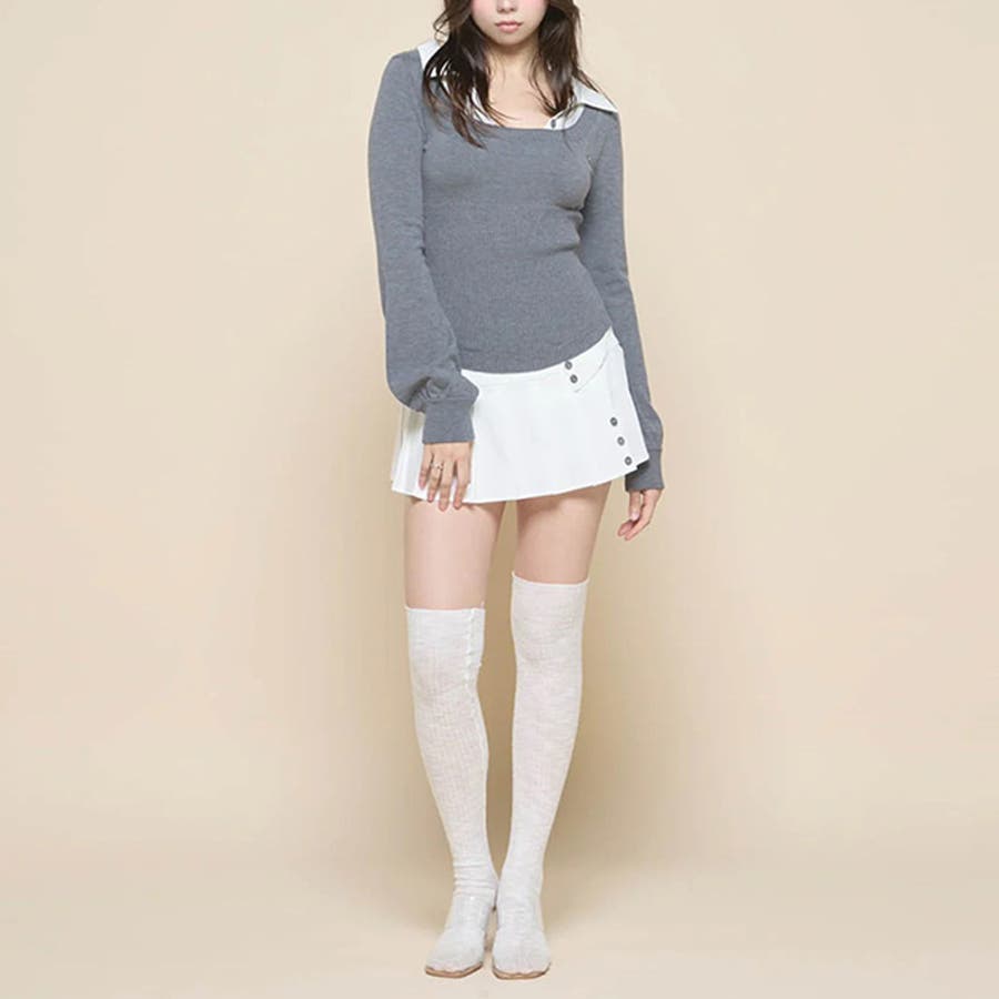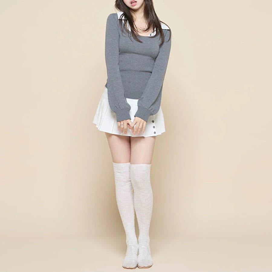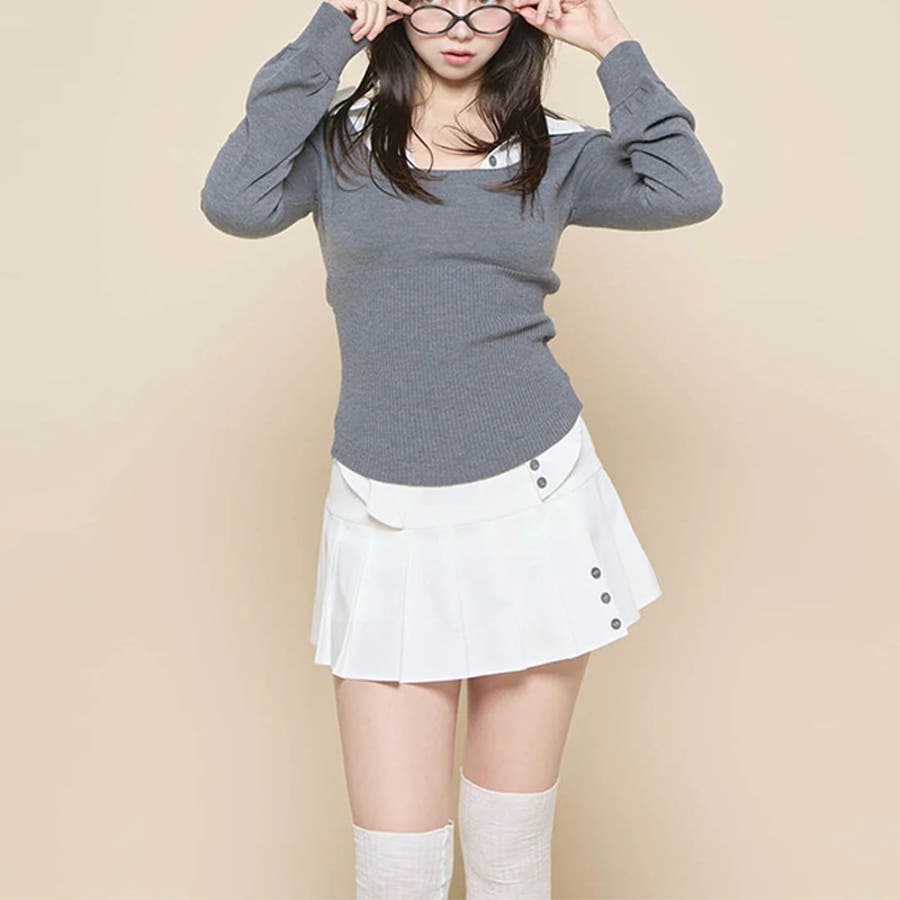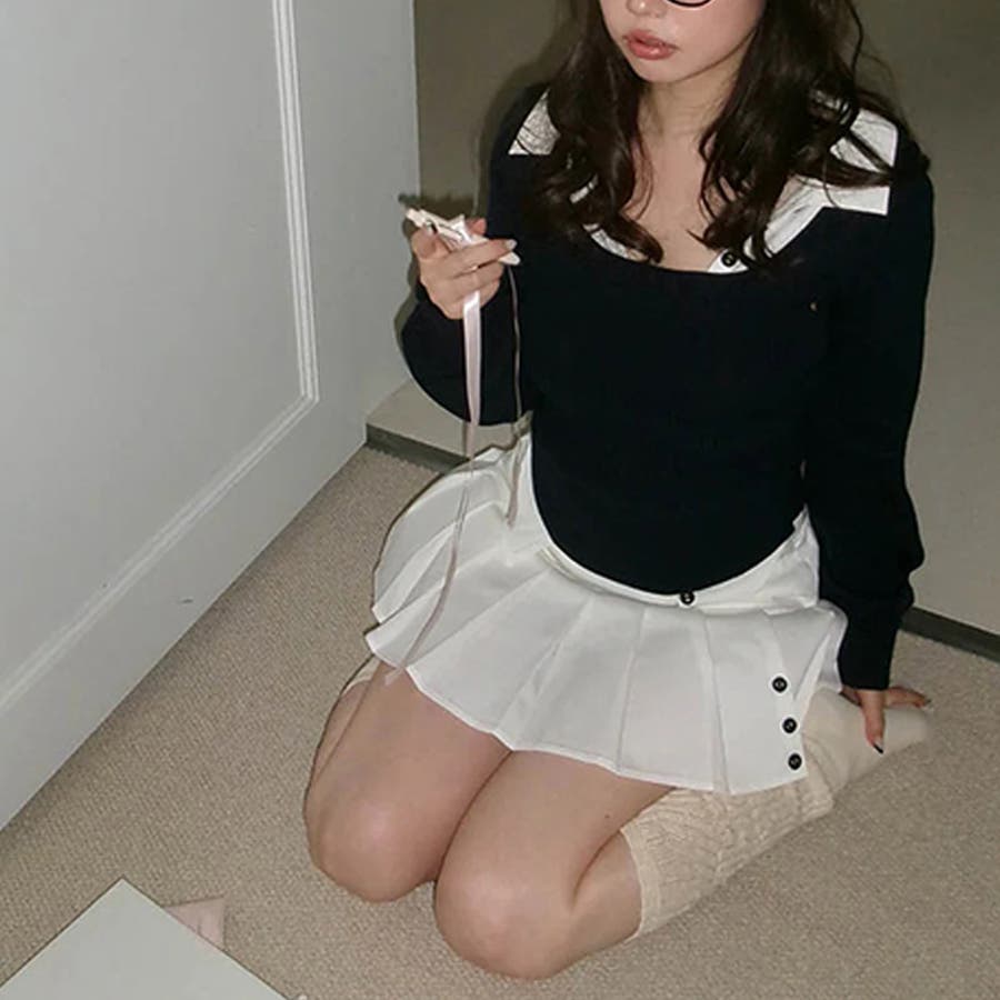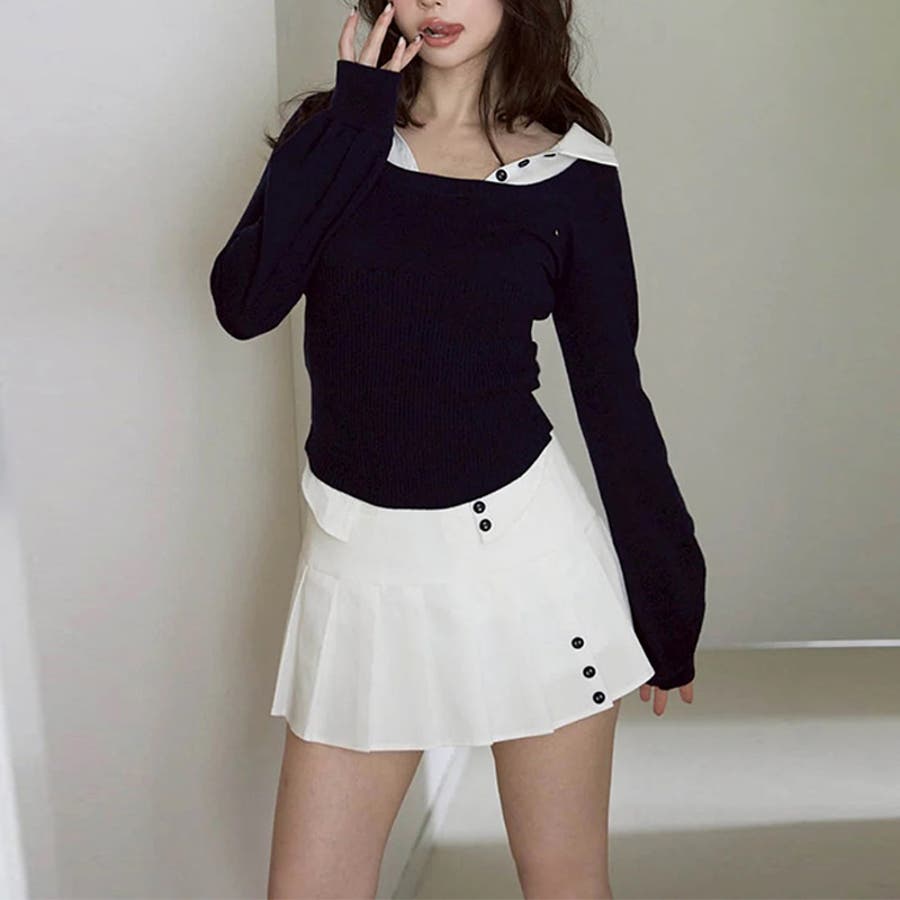 2025秋☆バイカラー襟付き トップス + プリーツスカート 2点セット
