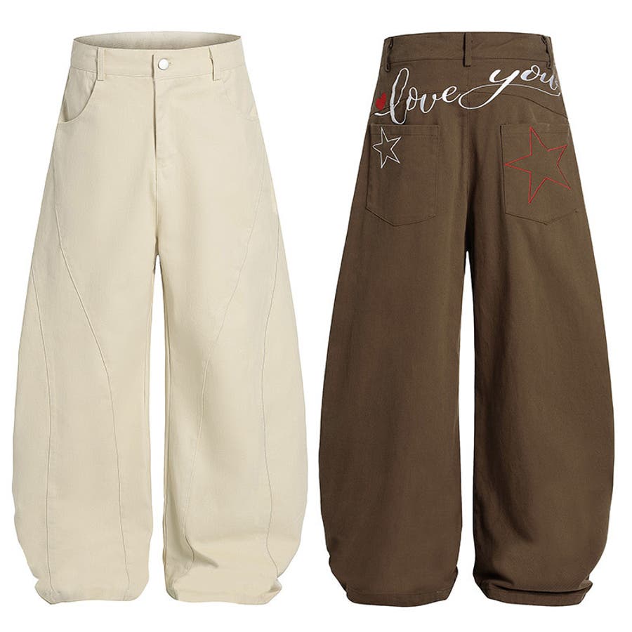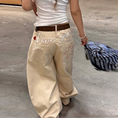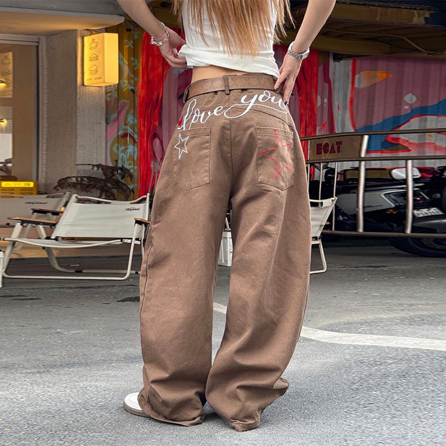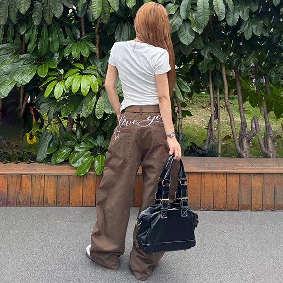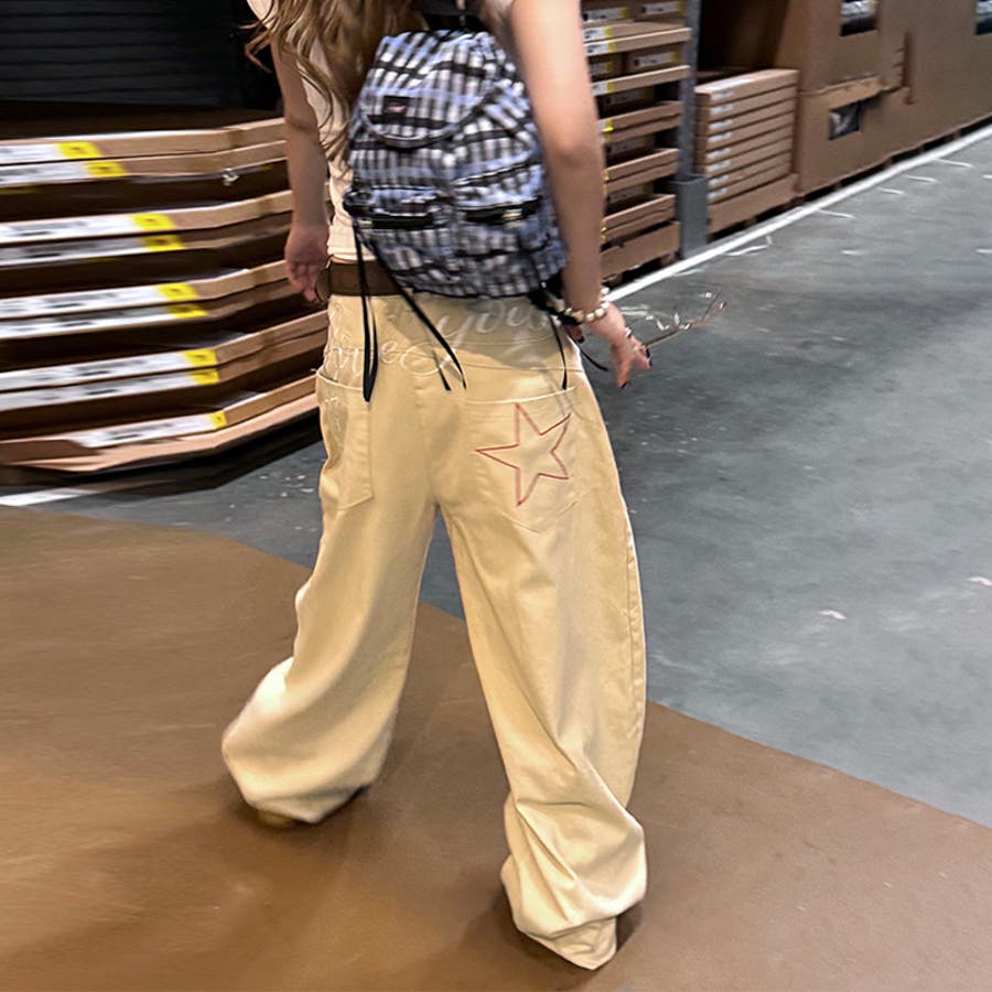 2025秋☆ユニセックス☆ストリートレトロスターロゴ刺繍デニムパンツ