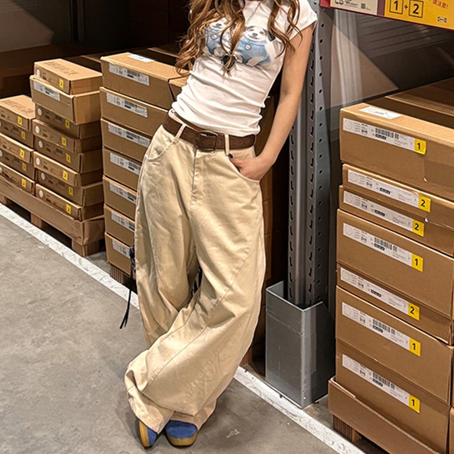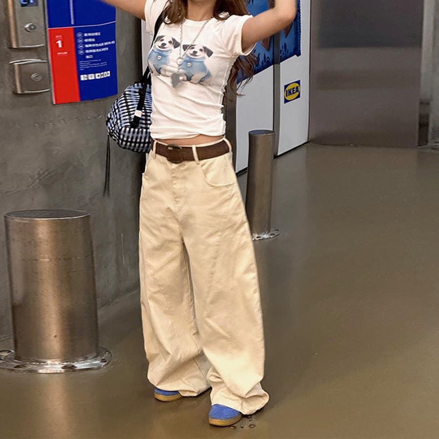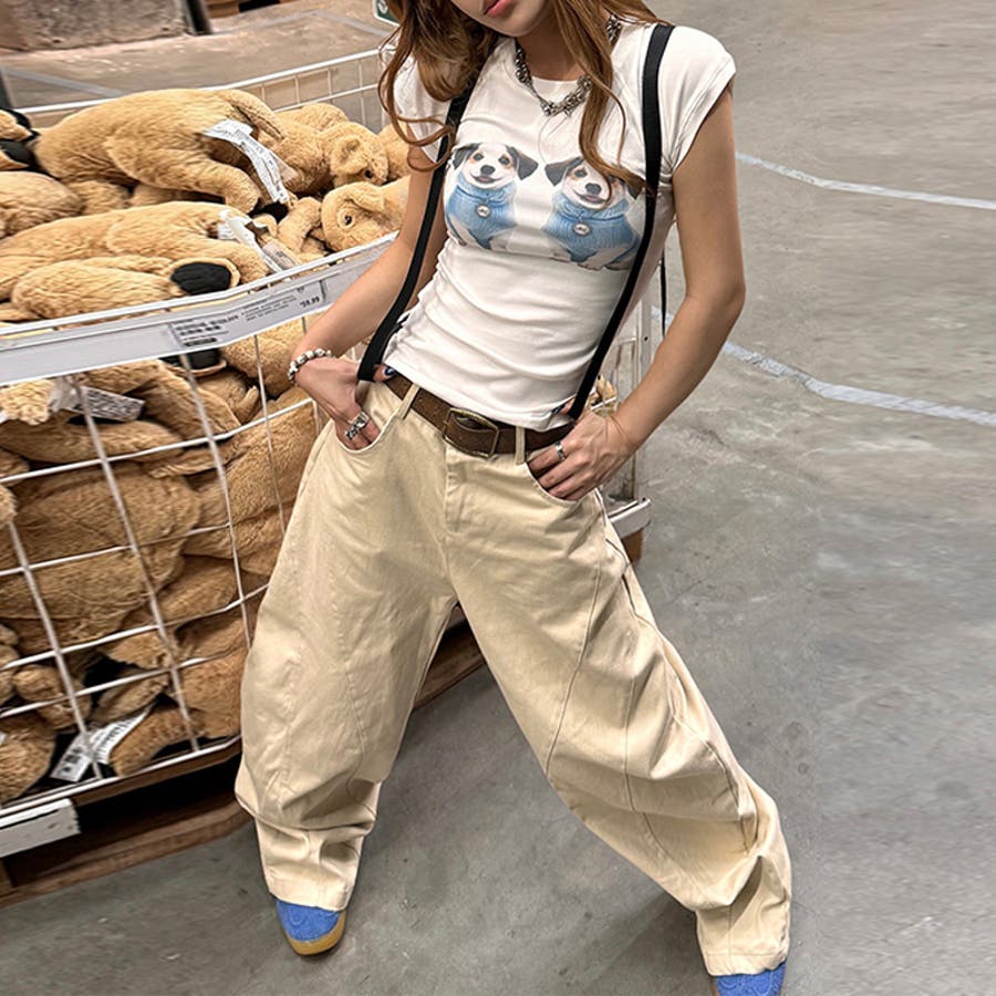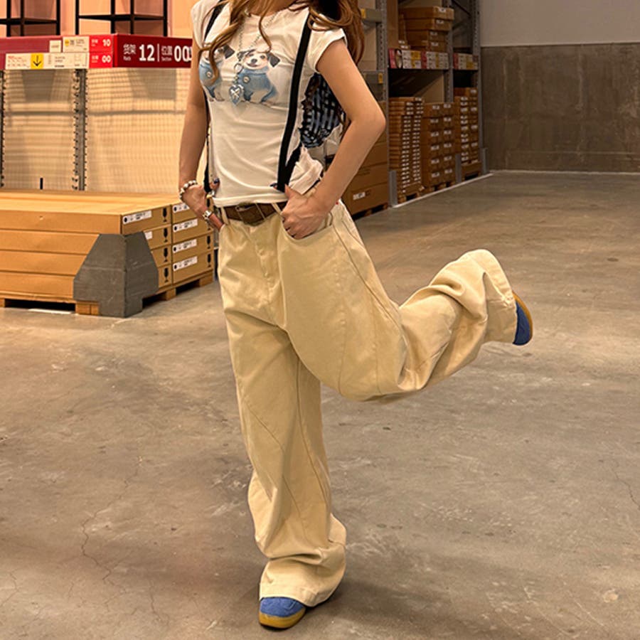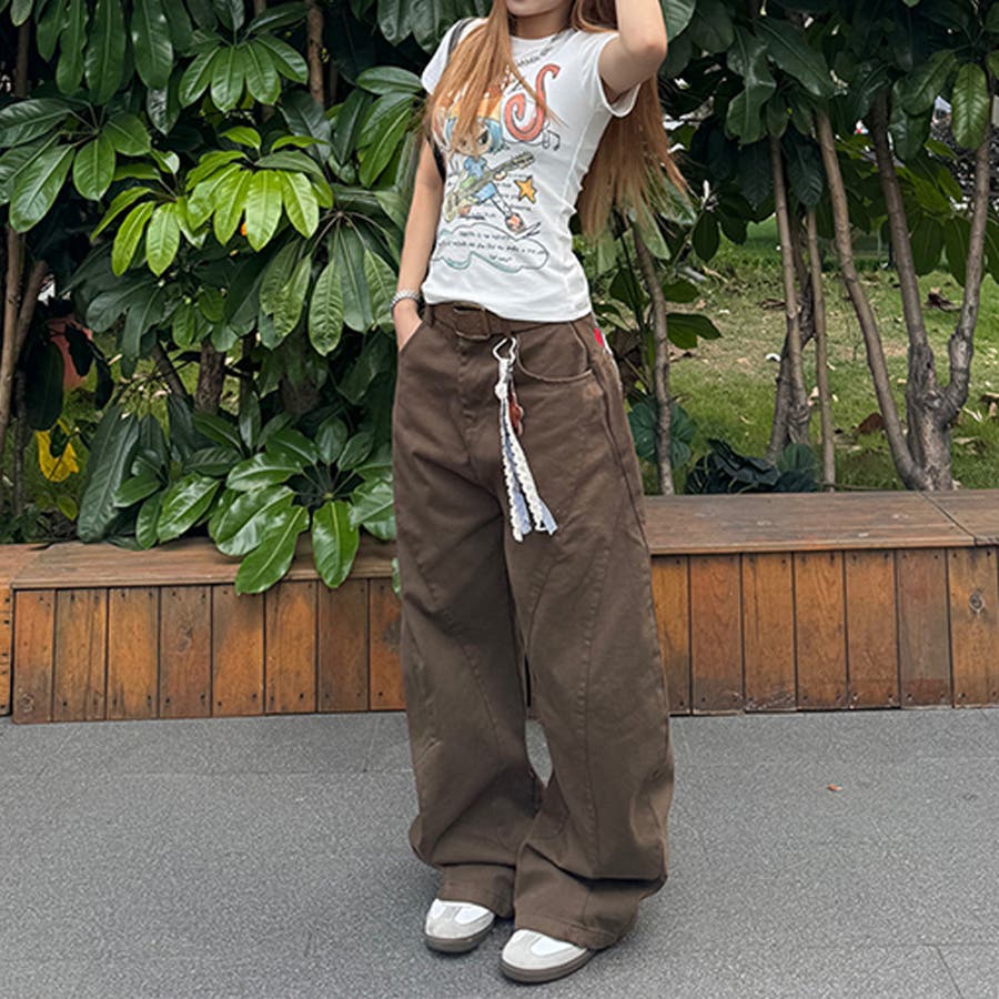 2025秋☆ユニセックス☆ストリートレトロスターロゴ刺繍デニムパンツ