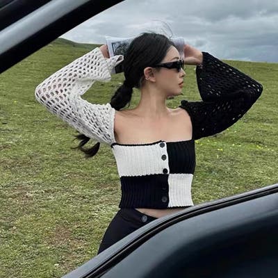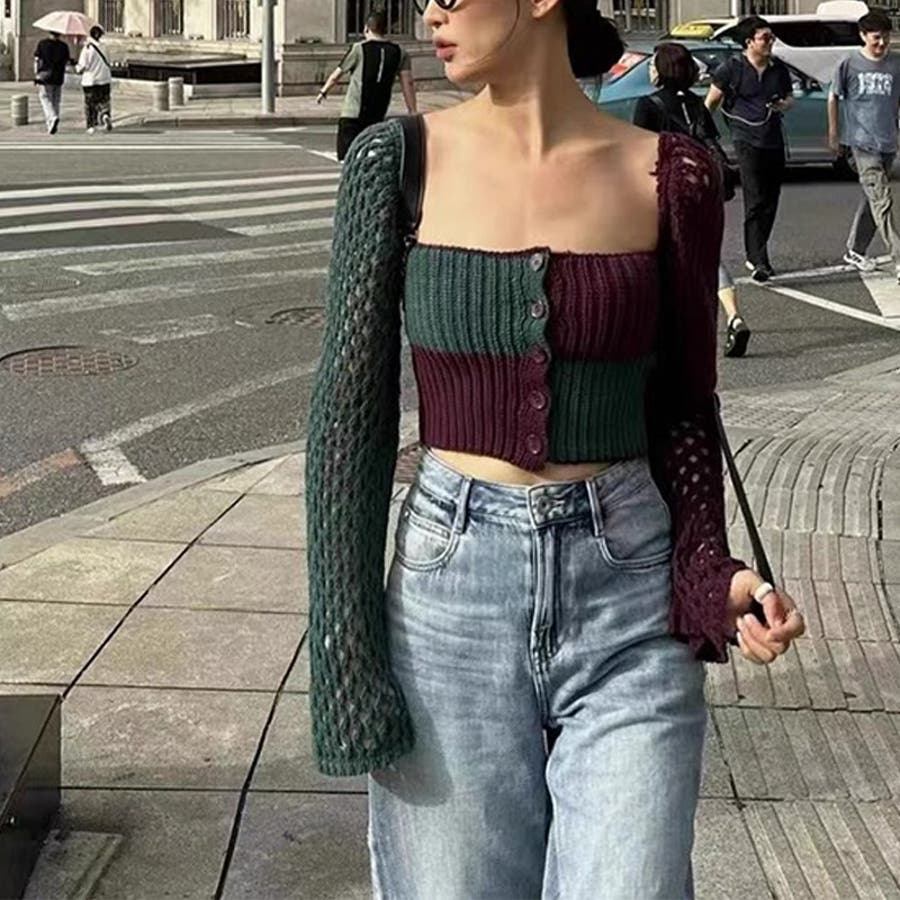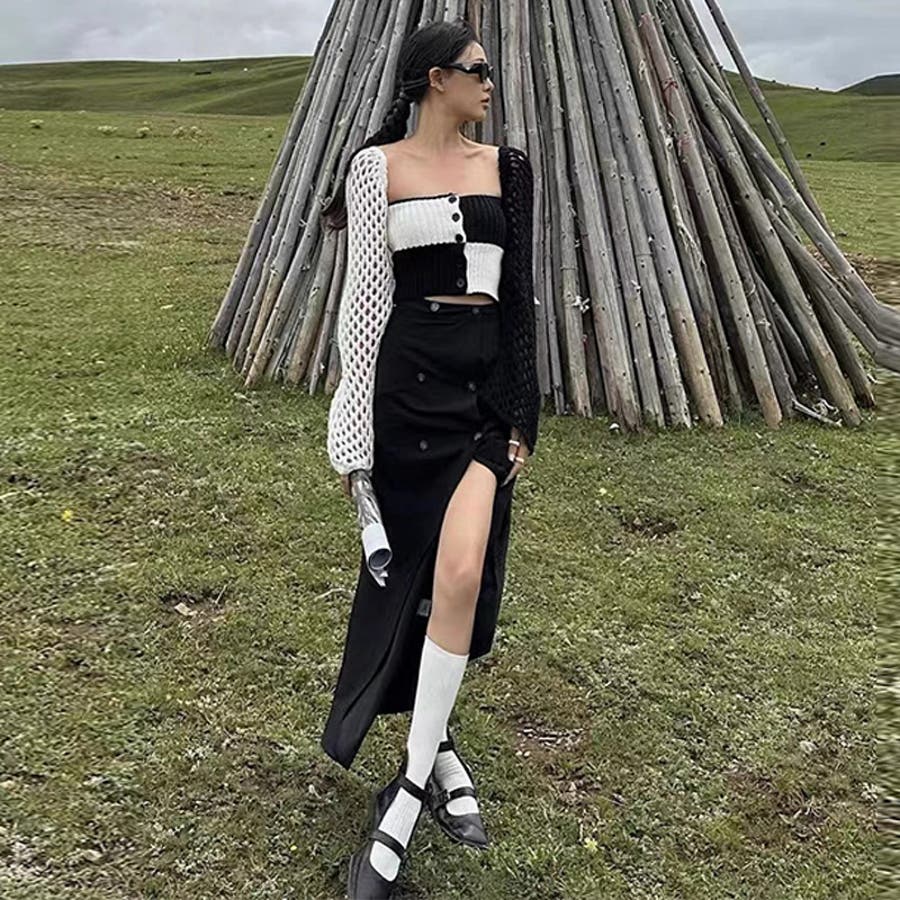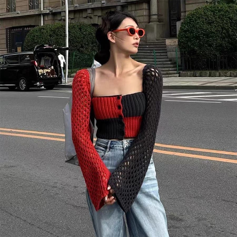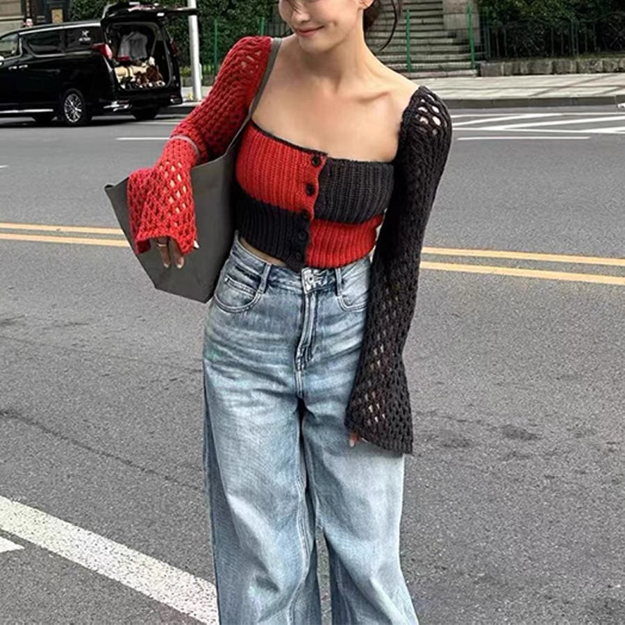 2025秋☆甘辛系ガールズ☆ノースリーブ薄手ニット メッシュ風カーディガン