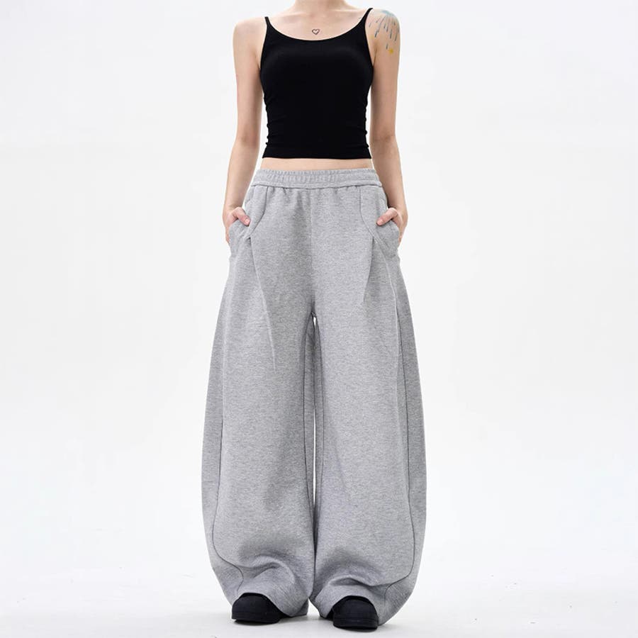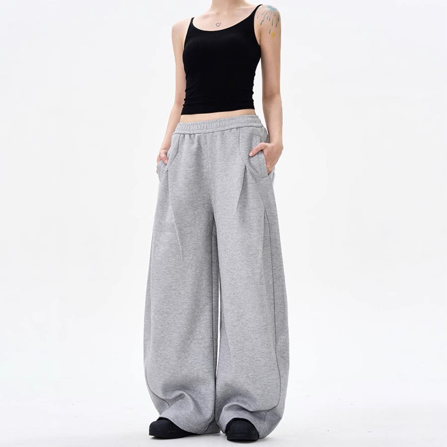 2025秋☆ユニセックス☆パンツ プリーツ入りワイドスウェットパンツ