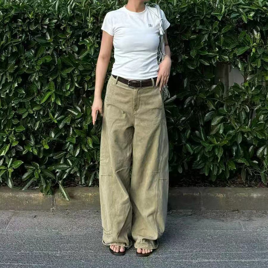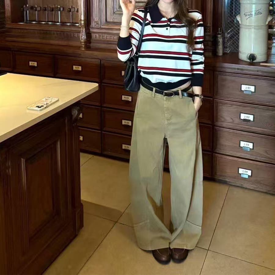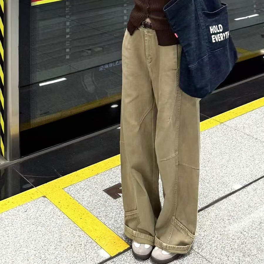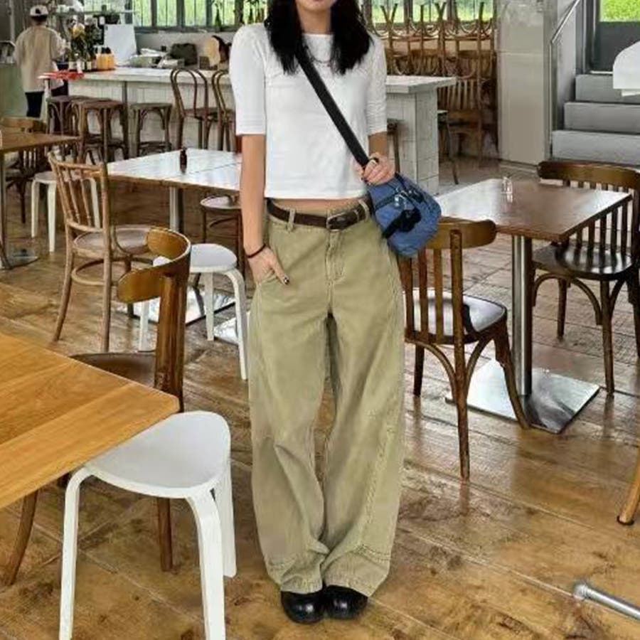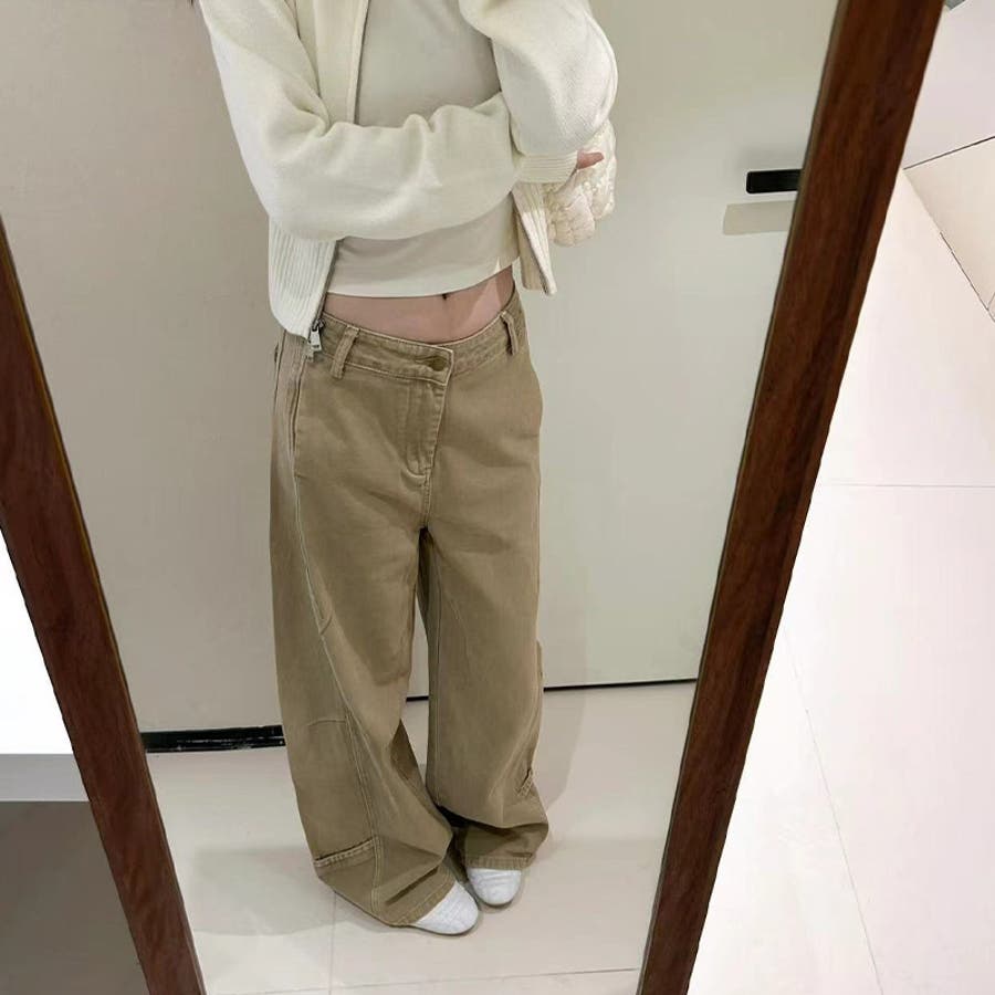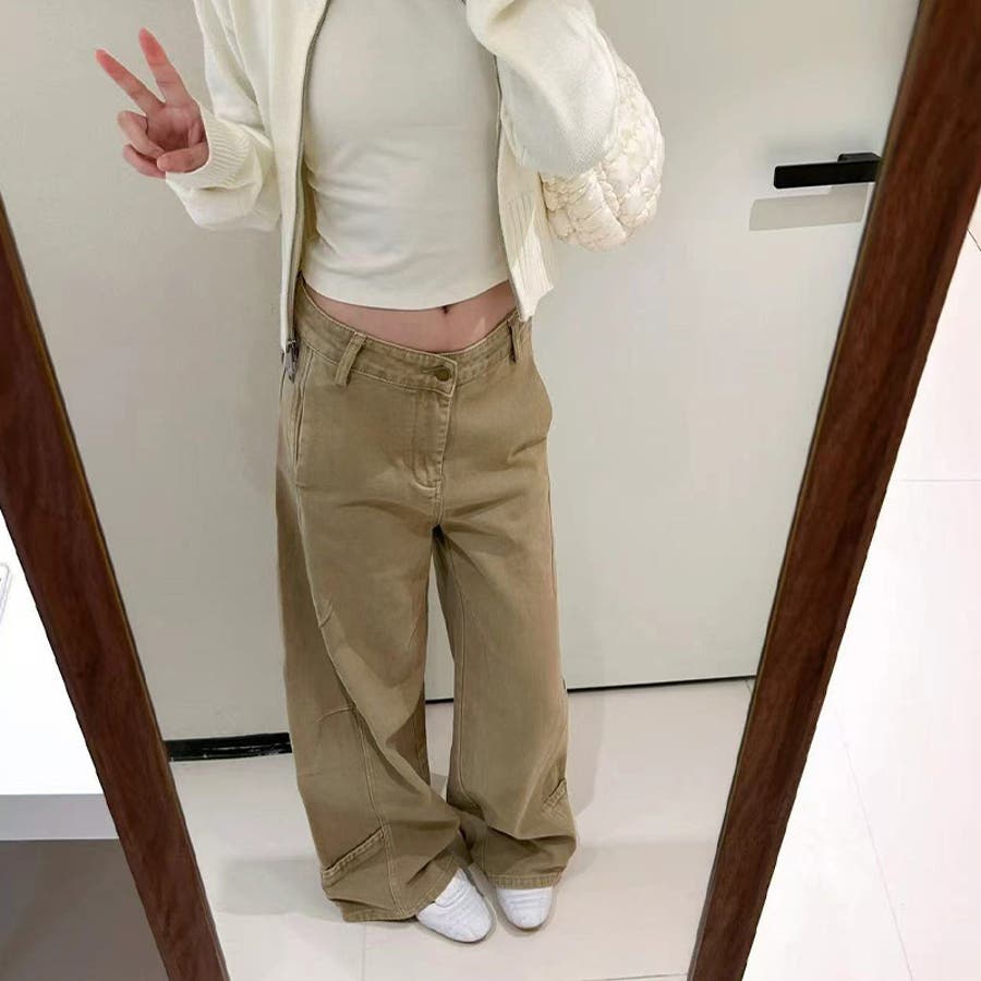 2025秋☆ゆるカワコーデ☆カーキカーブデニムパンツ