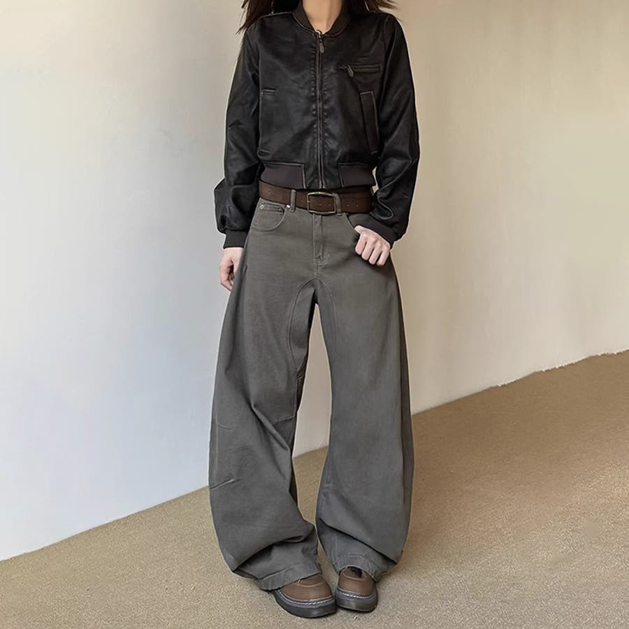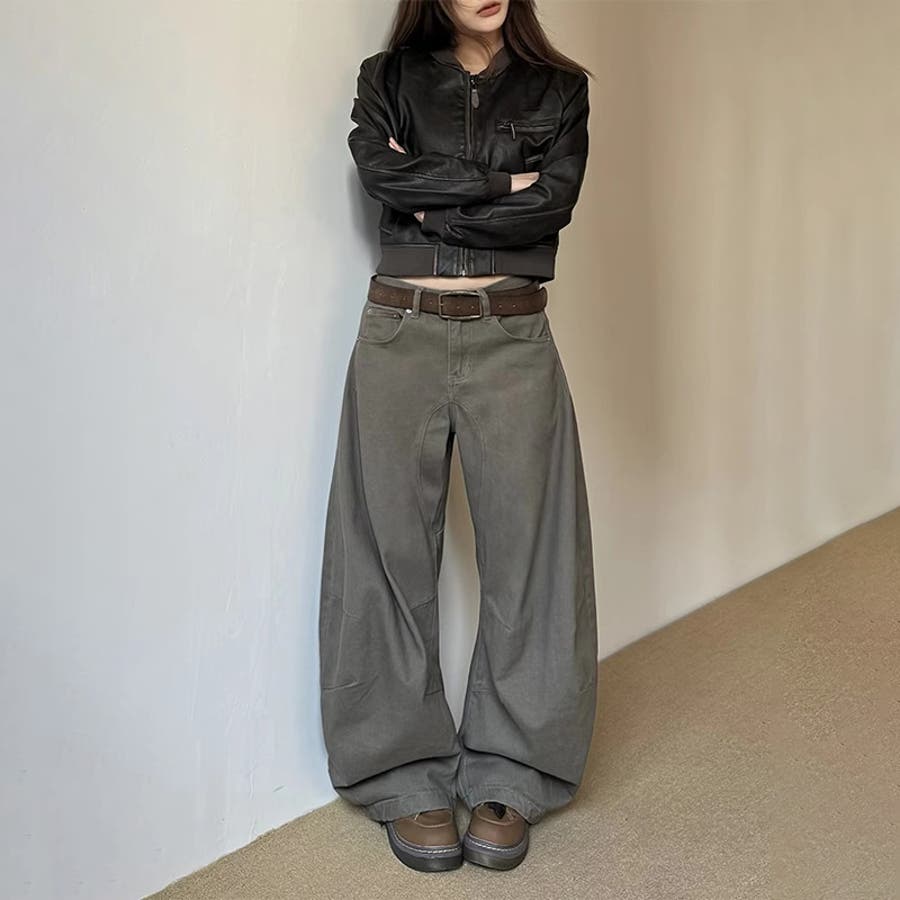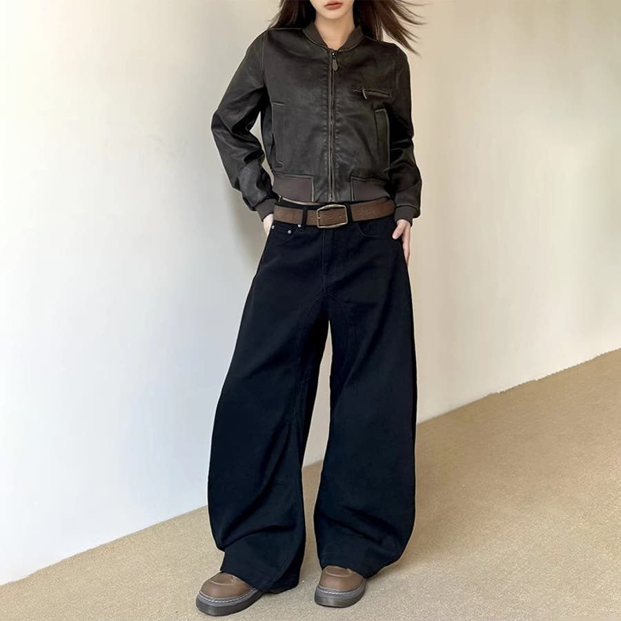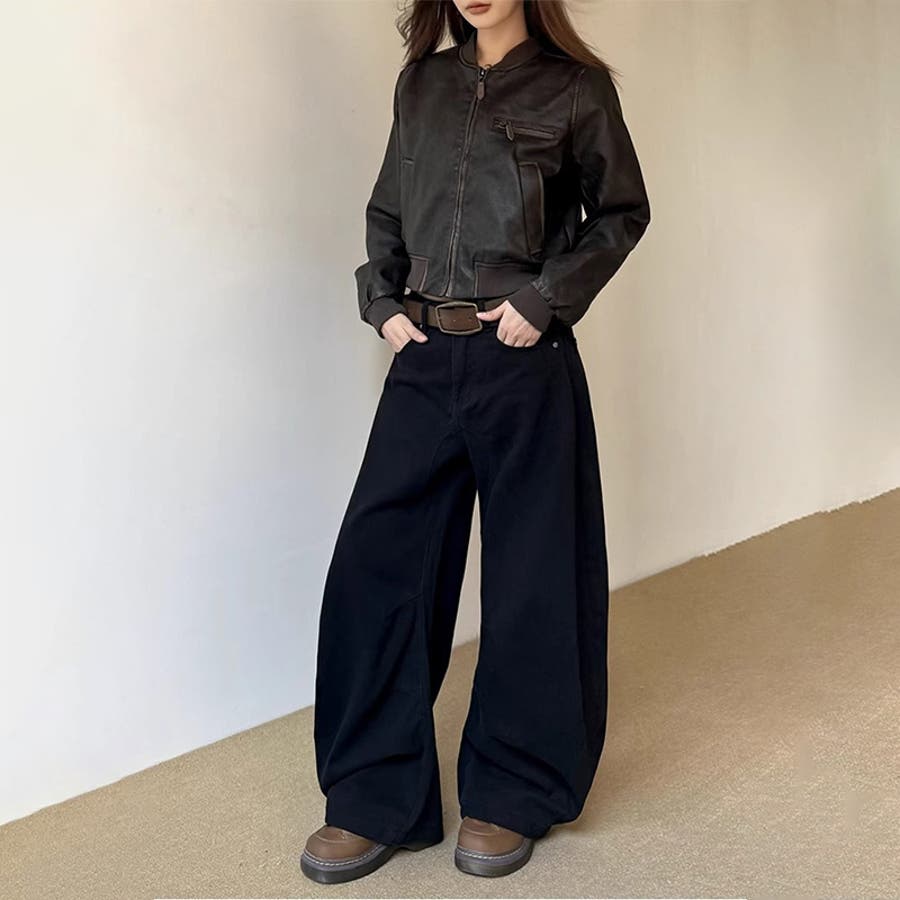 ユニセックス☆ワイドシルエットブーツカットデニムパンツ