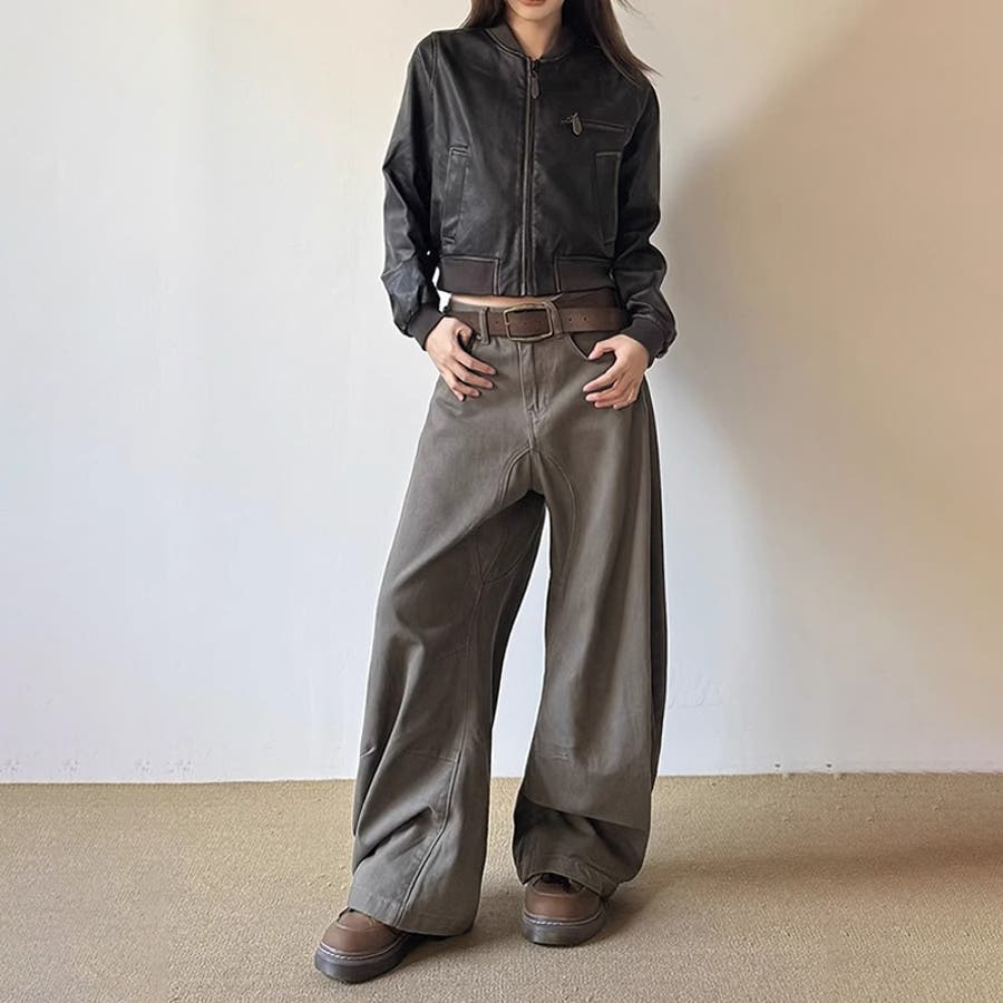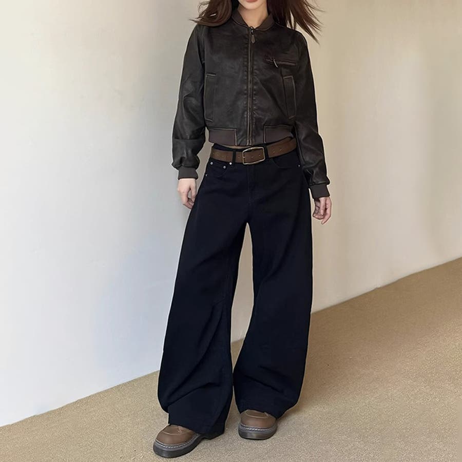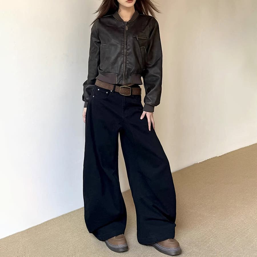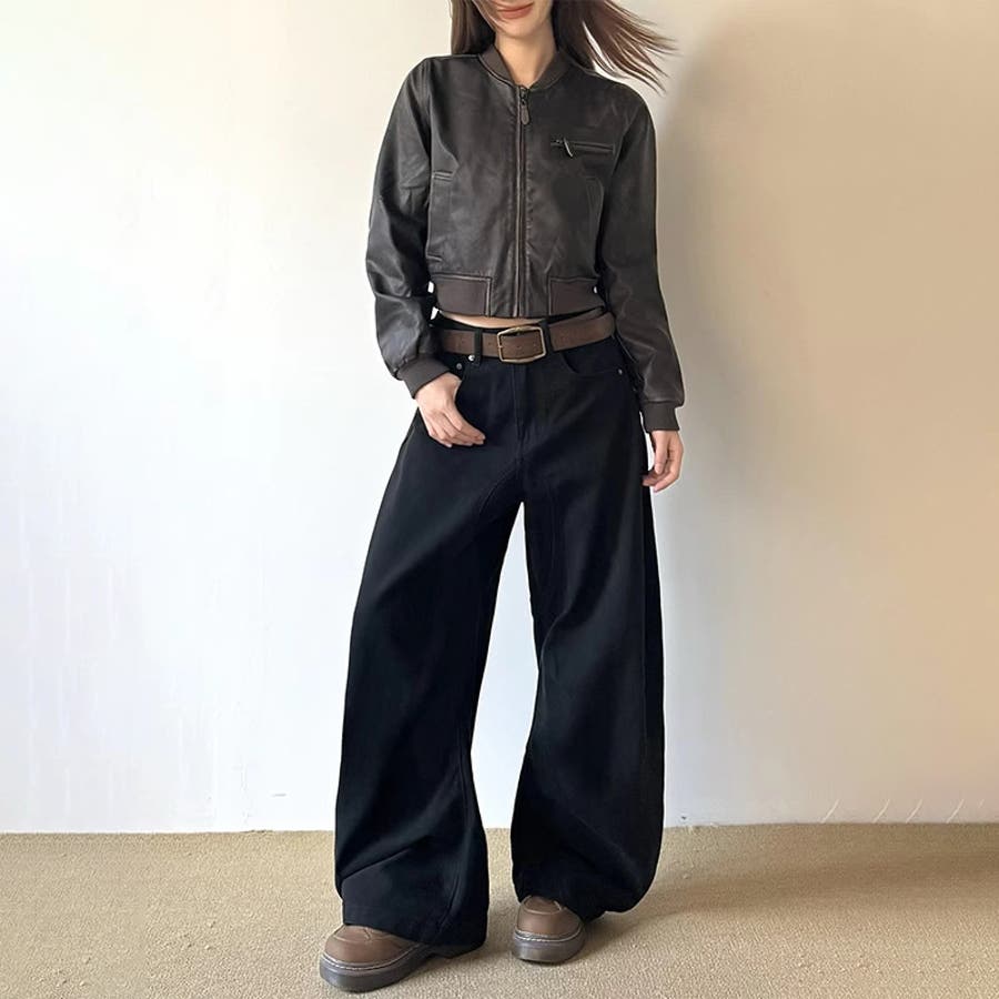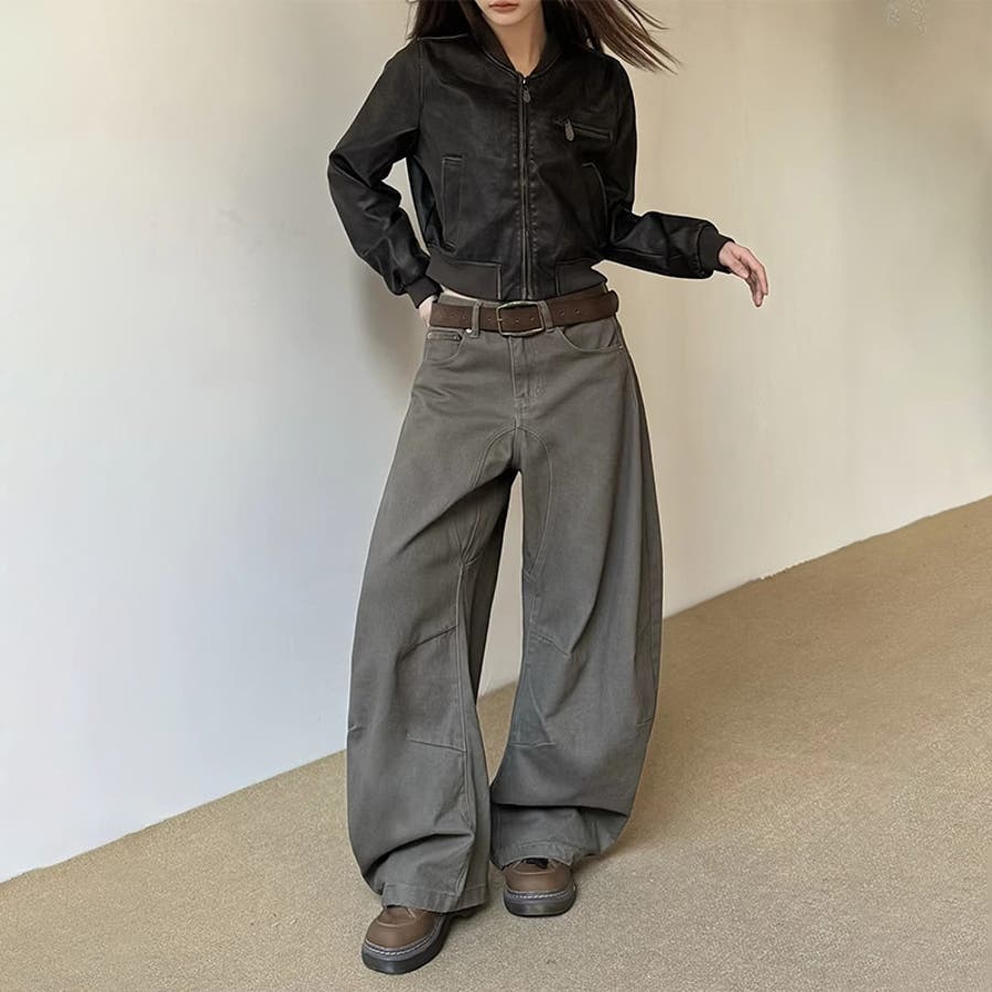ユニセックス☆ワイドシルエットブーツカットデニムパンツ