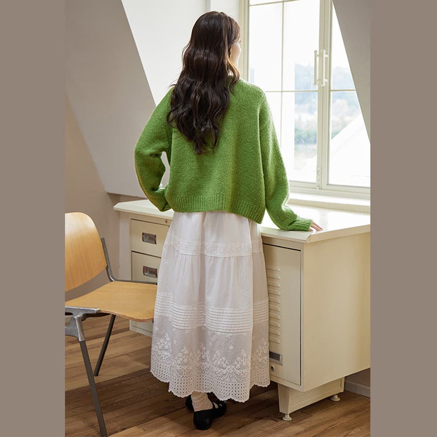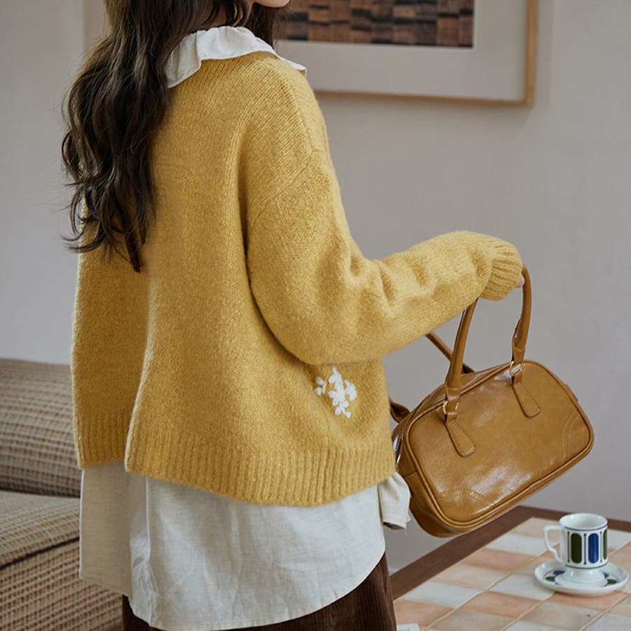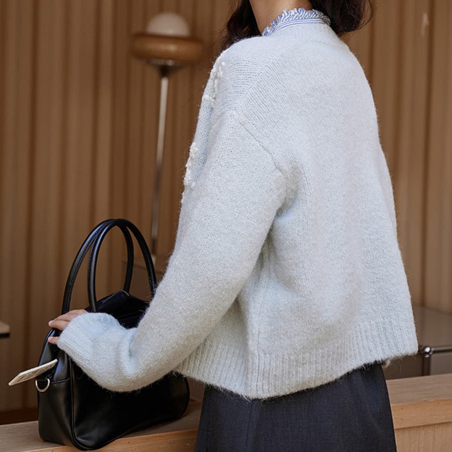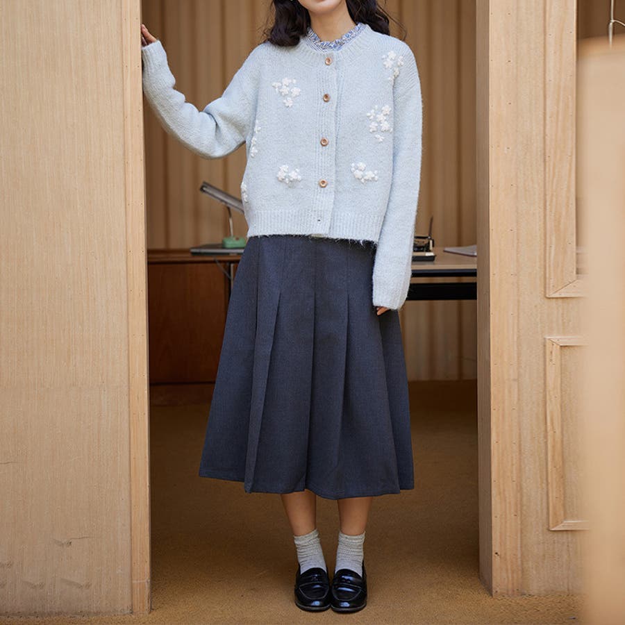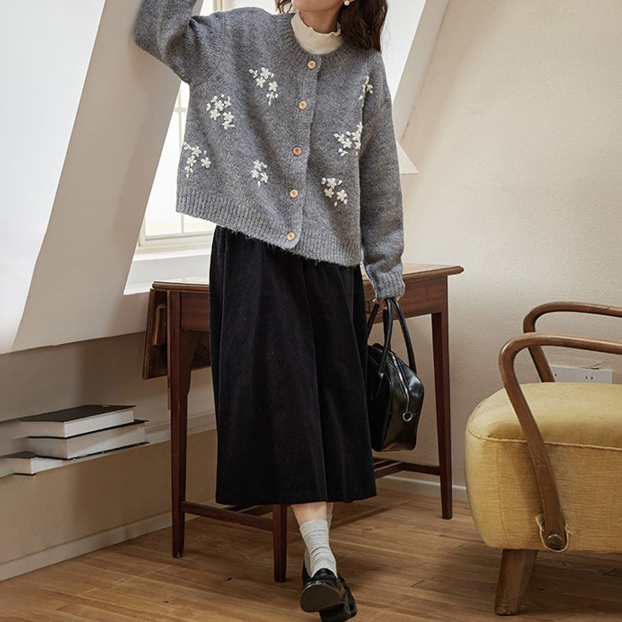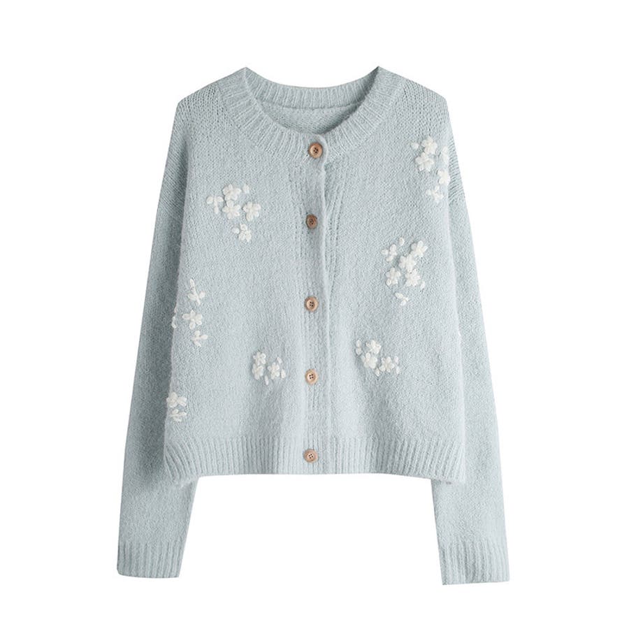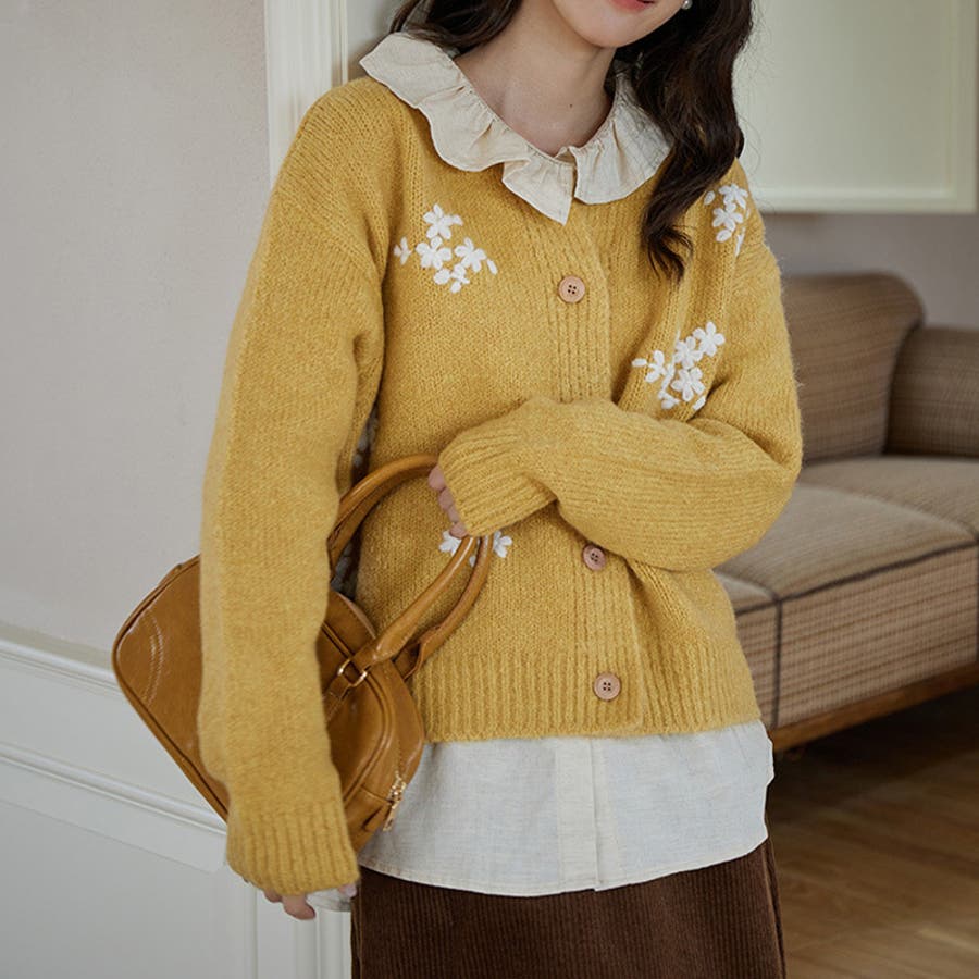 甘辛系ガールズ☆細見え重刺繍クルーネックウールニットカーディガン