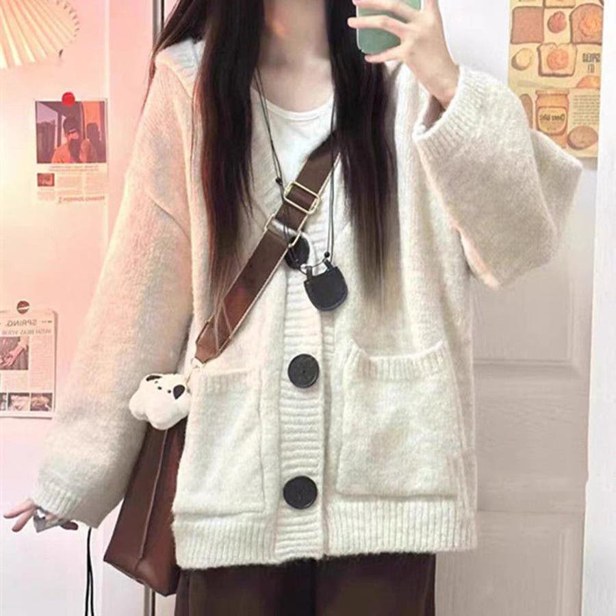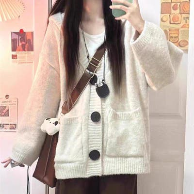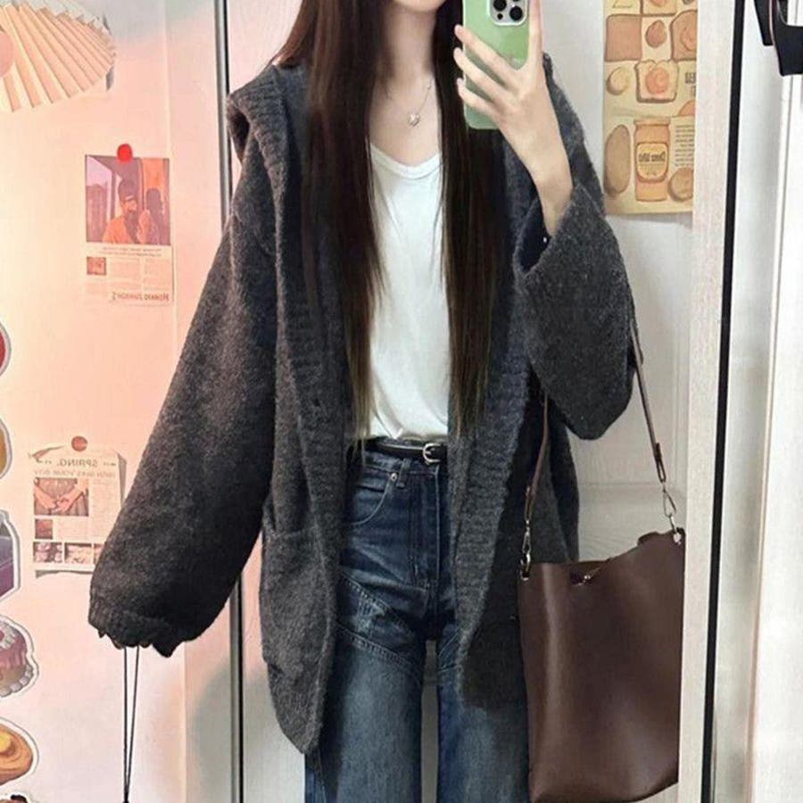 ゆるカワコーデ☆グレーショート丈 ニットカーディガン