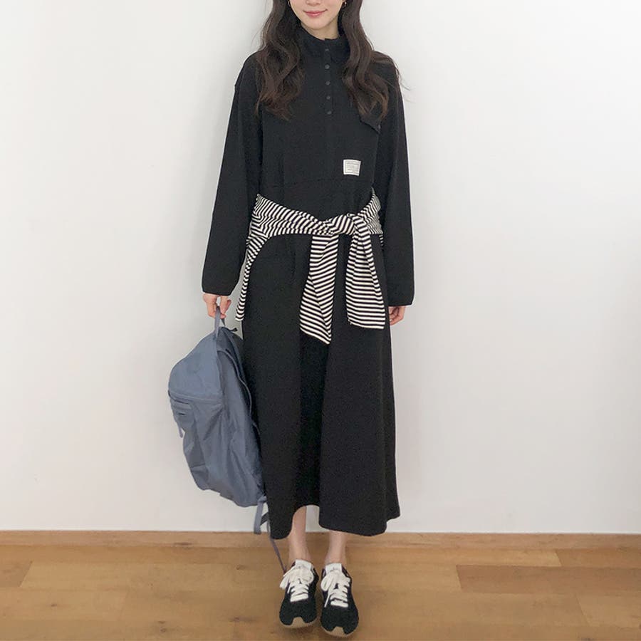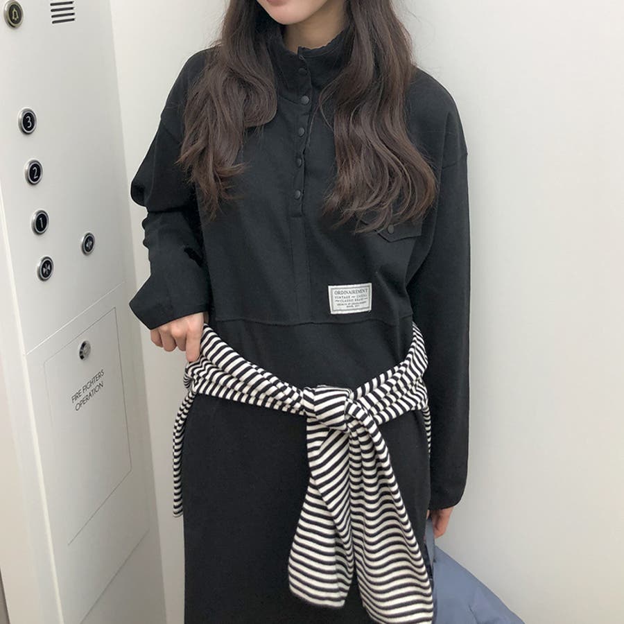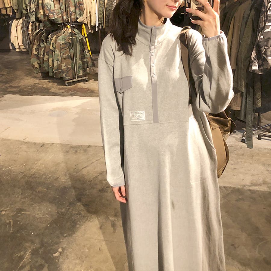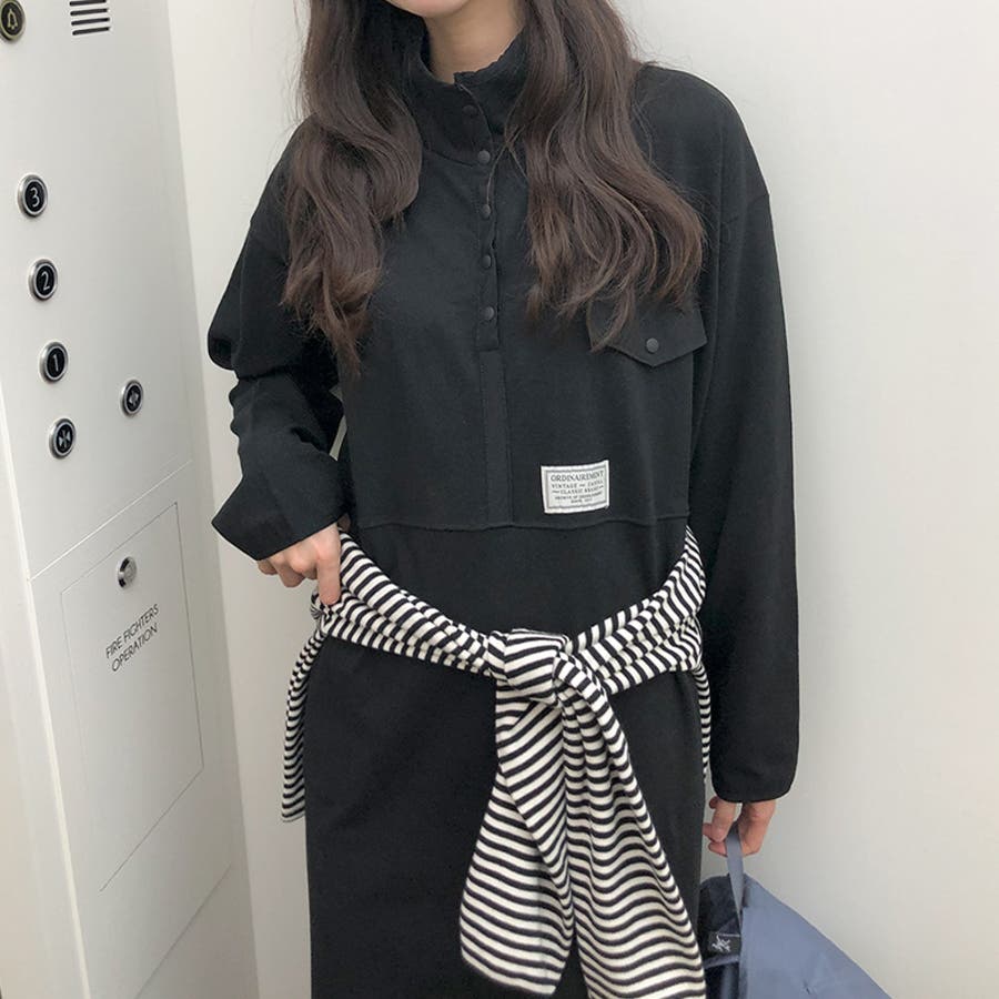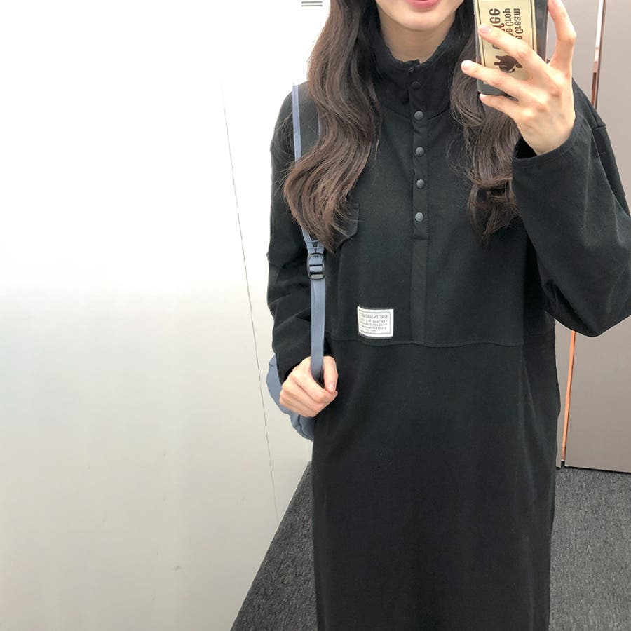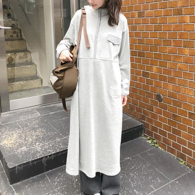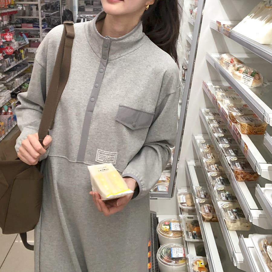 ゆるカワコーデ☆配色スタンドネックスウェットワンピース