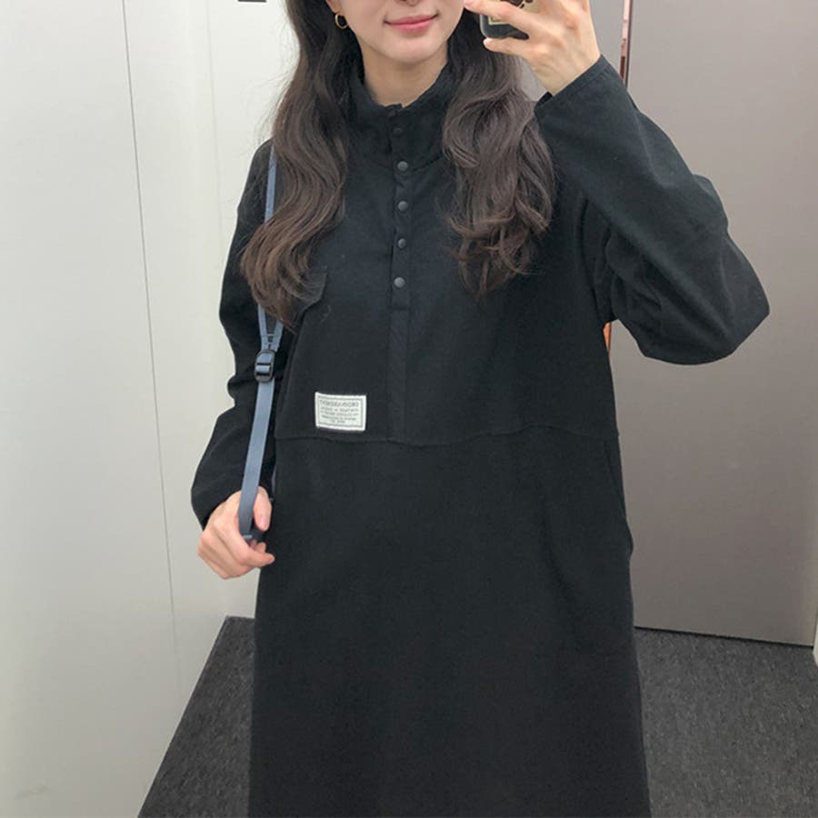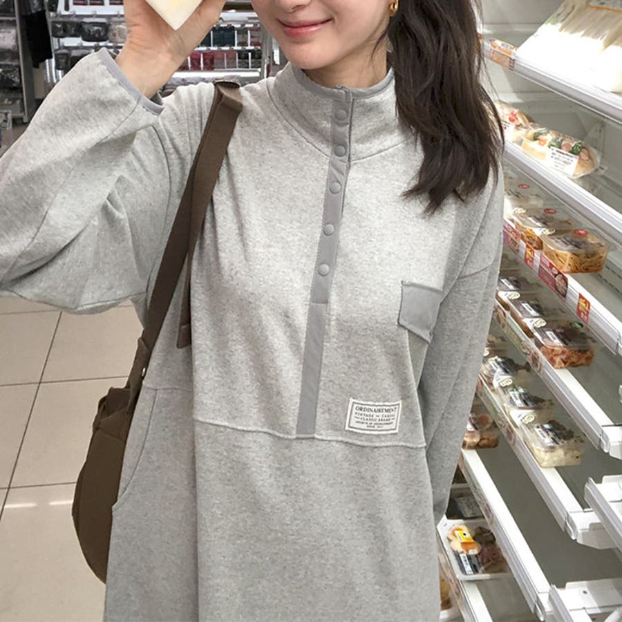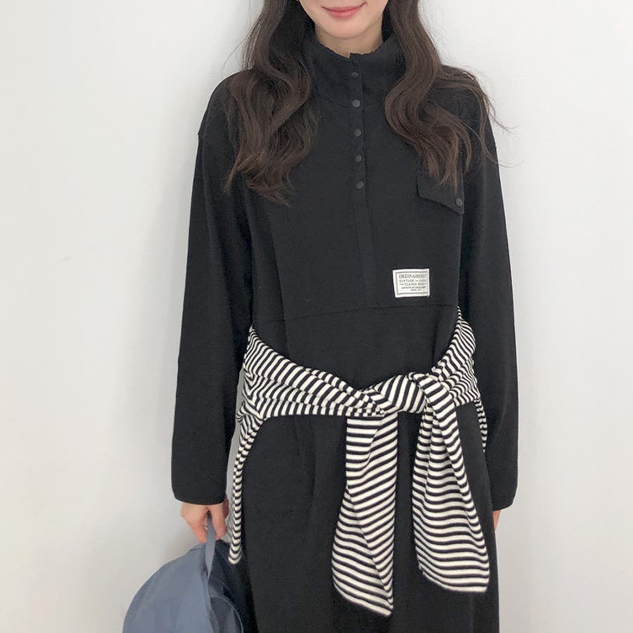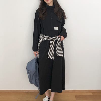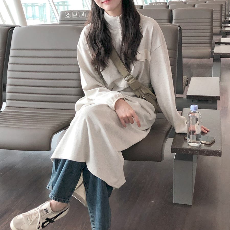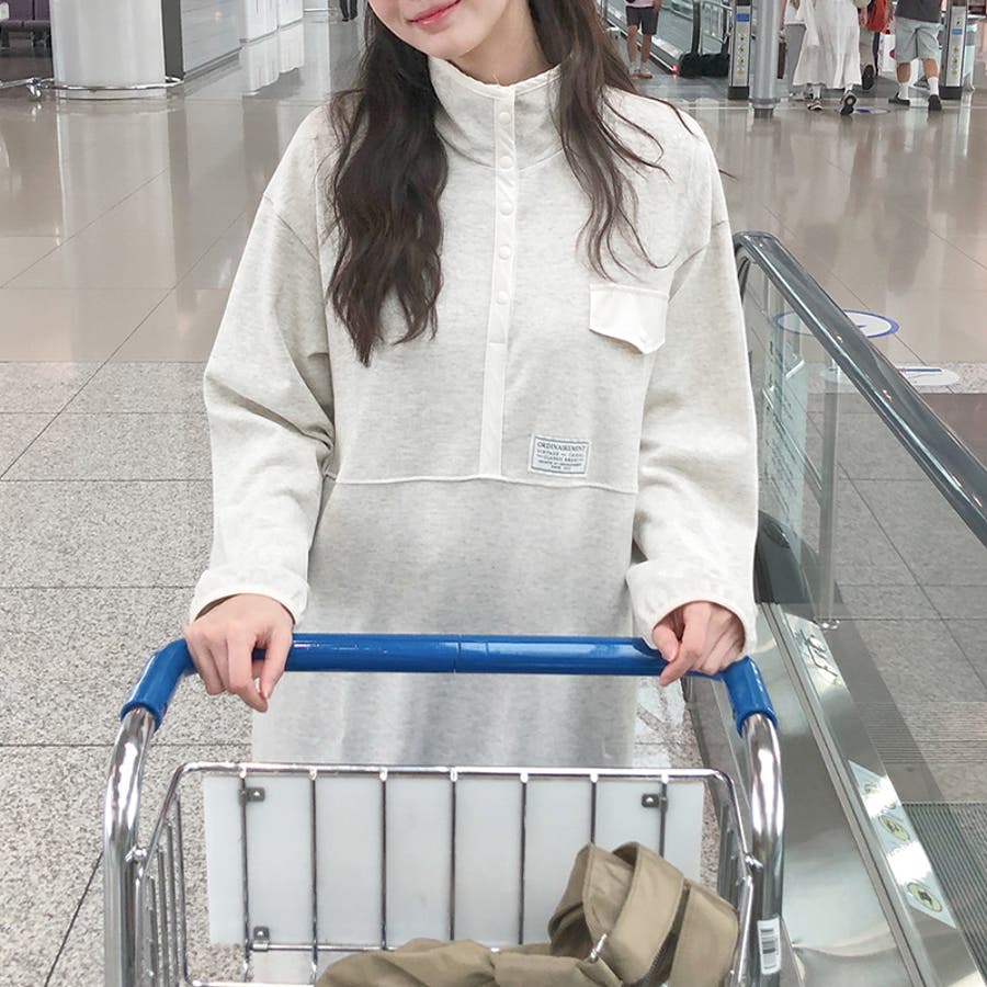 ゆるカワコーデ☆配色スタンドネックスウェットワンピース